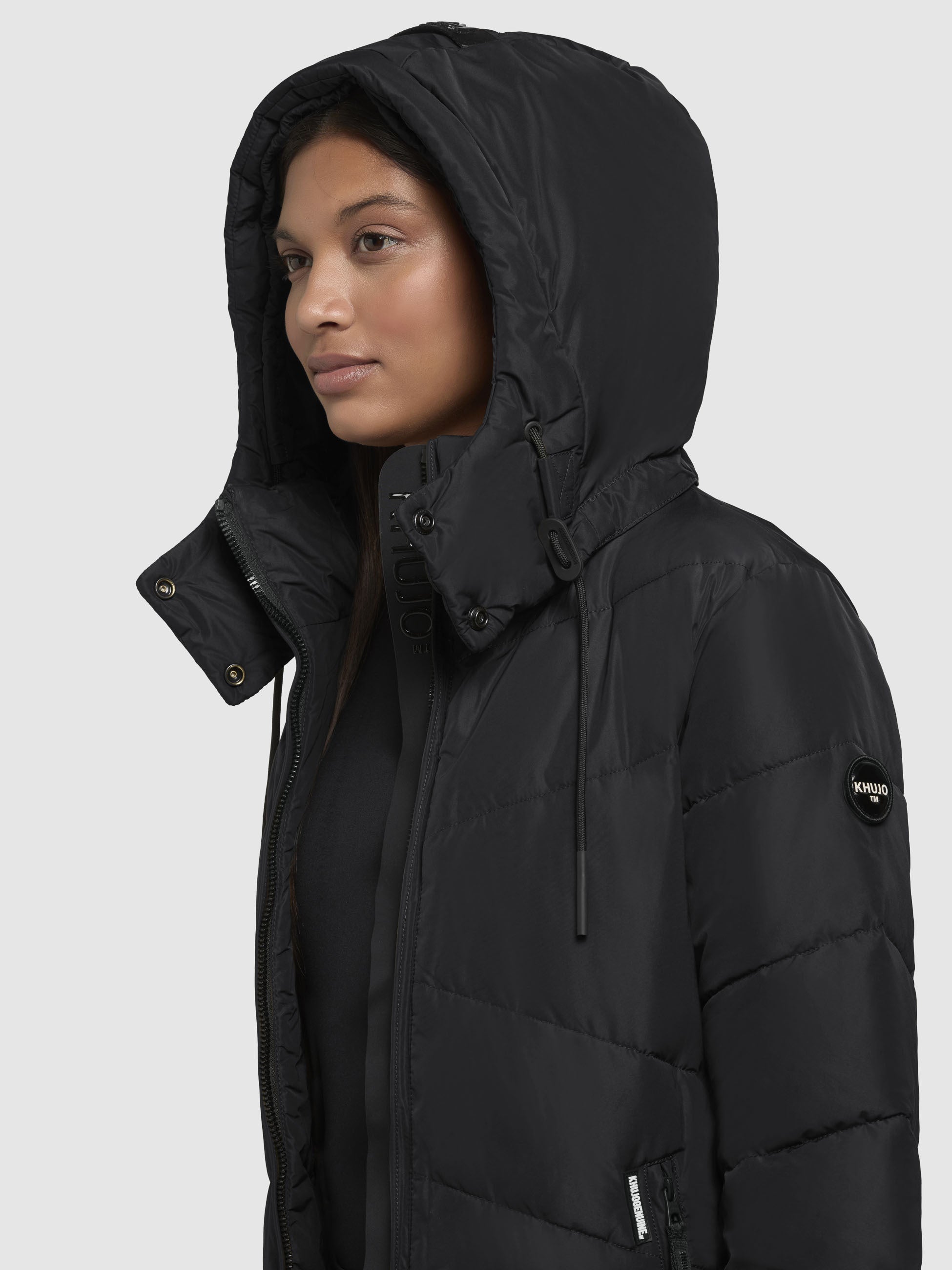 Die normale Passform mit einem wadenlangen Schnitt sorgt bei dem khujo Mantel HURCE für wohlige Wärme an kalten Wintertagen. Dieser warm wattierte Steppmantel ist der perfekte Begleiter bei frostigen Temperaturen und bietet dank der abknöpfbaren und hoch schließenden Kapuze mit Kordelzug, Taschenbeuteln mit Fleece und Rippstrickbündchen am Ärmelfutter sowie einer Windschutzblende am Zwei-Wege-Reißverschluss höchsten Tragekomfort.