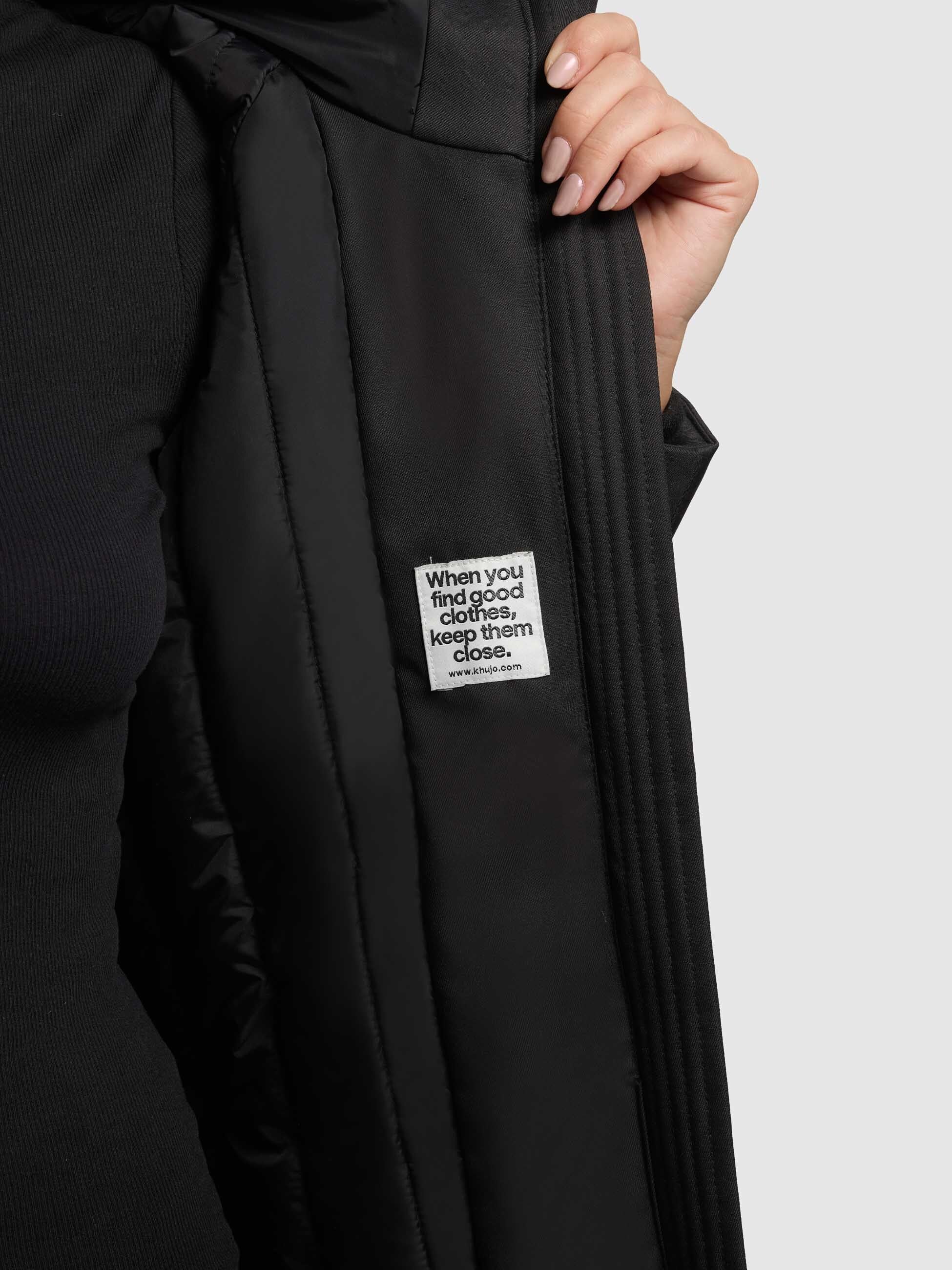 Monochromes Design prägt den urbanen Look vom khujo Mantel SEMIE2. Dieser leicht wattierte Kurzmantel begeistert mit einer großen, verstellbaren und hoch schließenden Kapuze mit abnehmbarem Teddyfell, einer Kombination aus Zwei-Wege-Reißverschluss und Magnetknopfleiste sowie elastischen Kordelzügen an der Kapuze, Taille und dem Saum. Pattentaschen mit Fleecefutter und eine Innentasche bieten zudem Stauraum für unterwegs.