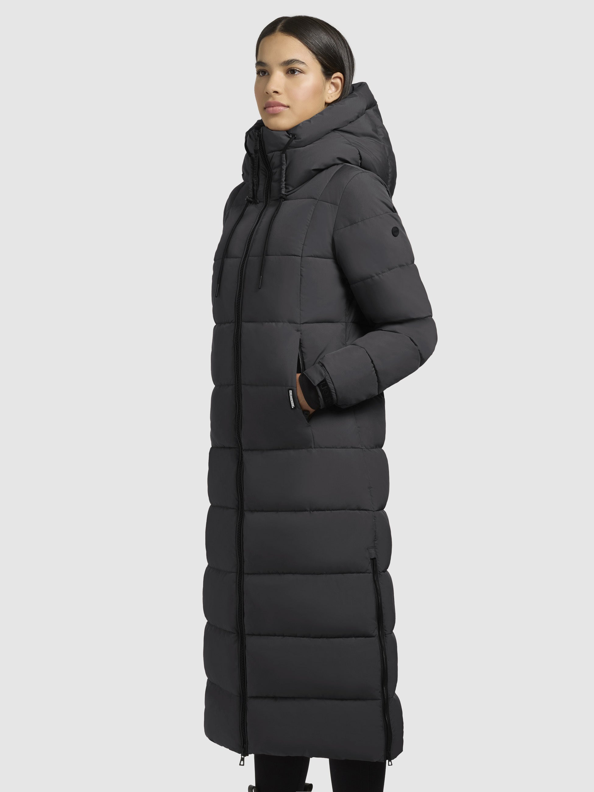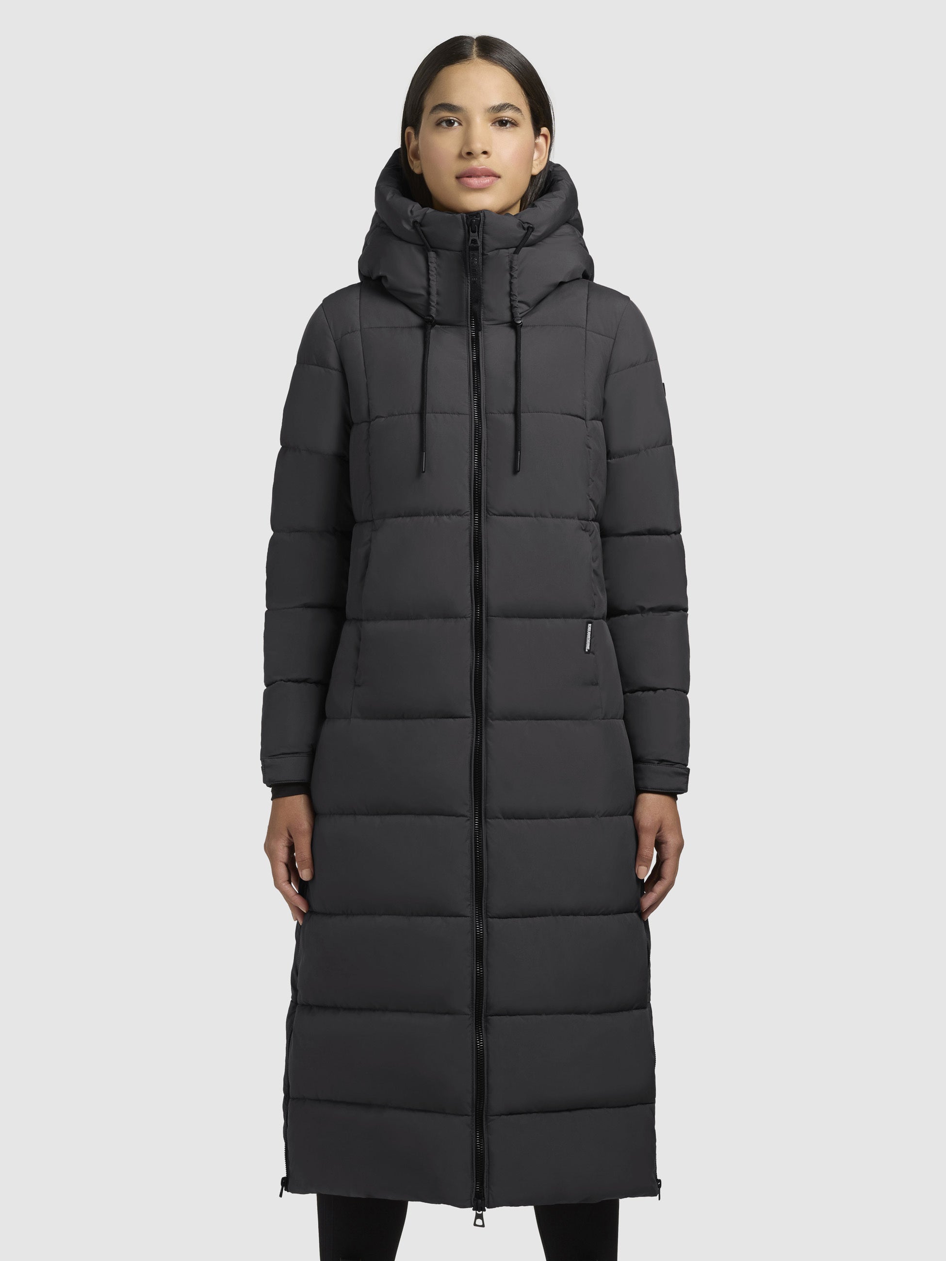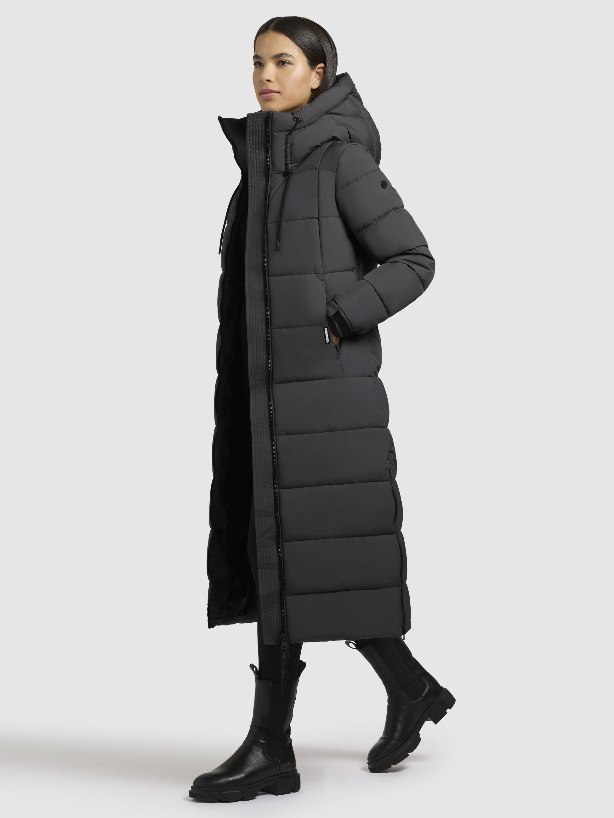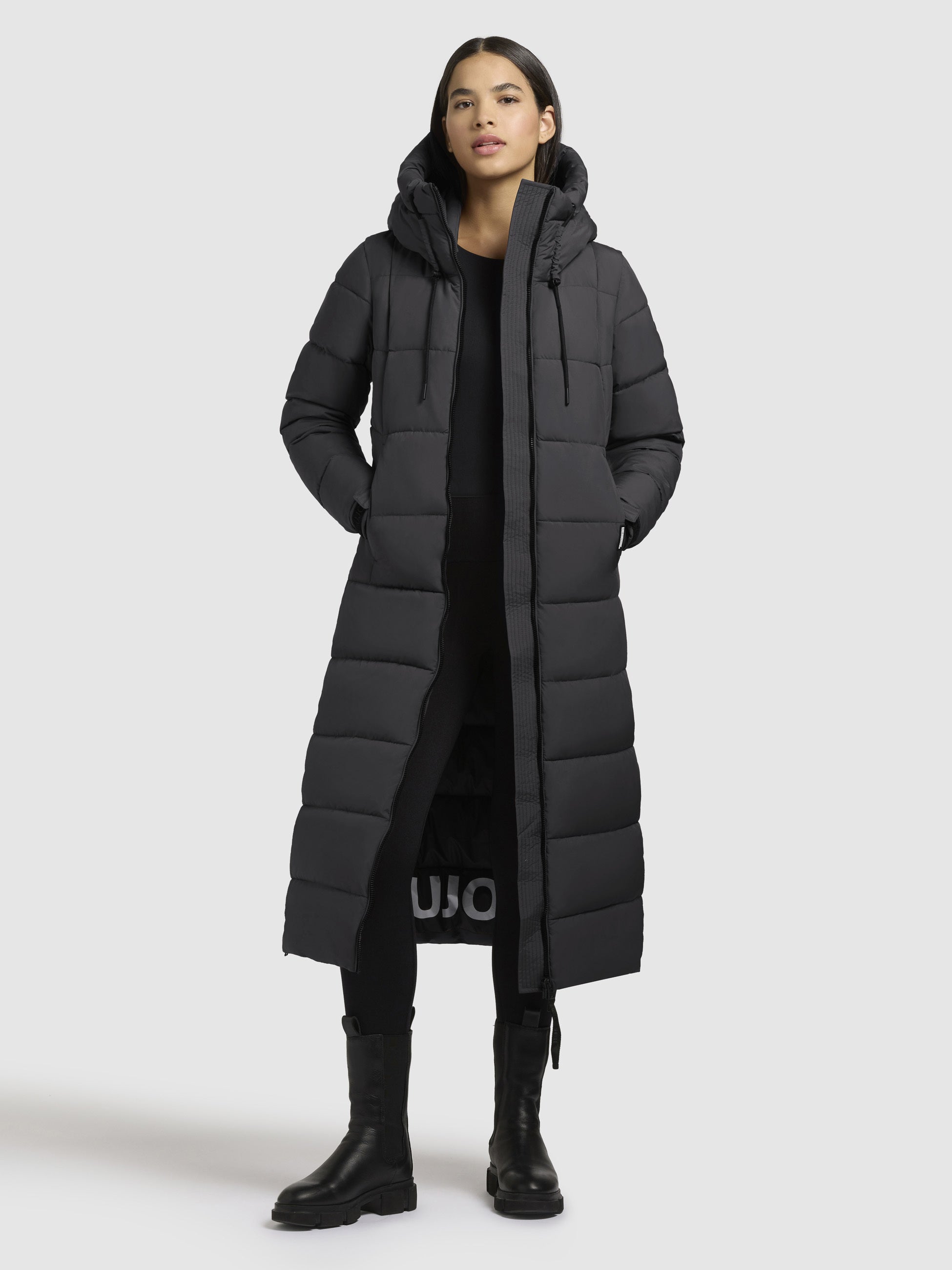 Mit einem cleanen Design begeistert der warm wattierte khujo Mantel DERIA3. Der knielange Steppmantel ist im Slim Fit geschnitten und mit einer großen, hoch schließenden Kapuze mit Kordelzug ausgestattet. Der wattierte Stehkragen, ein Zwei-Wege-Reißverschluss, seitliche Schlitz-Einsätze mit Reißverschluss, elastische Bündchen am Ärmelfutter und Taschenbeutel aus Fleece bieten optimalen Schutz vor frostigem Winterwetter.