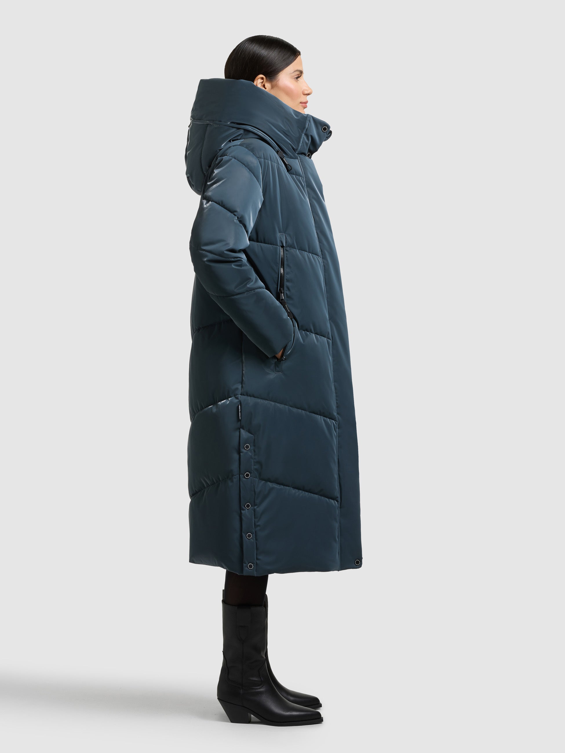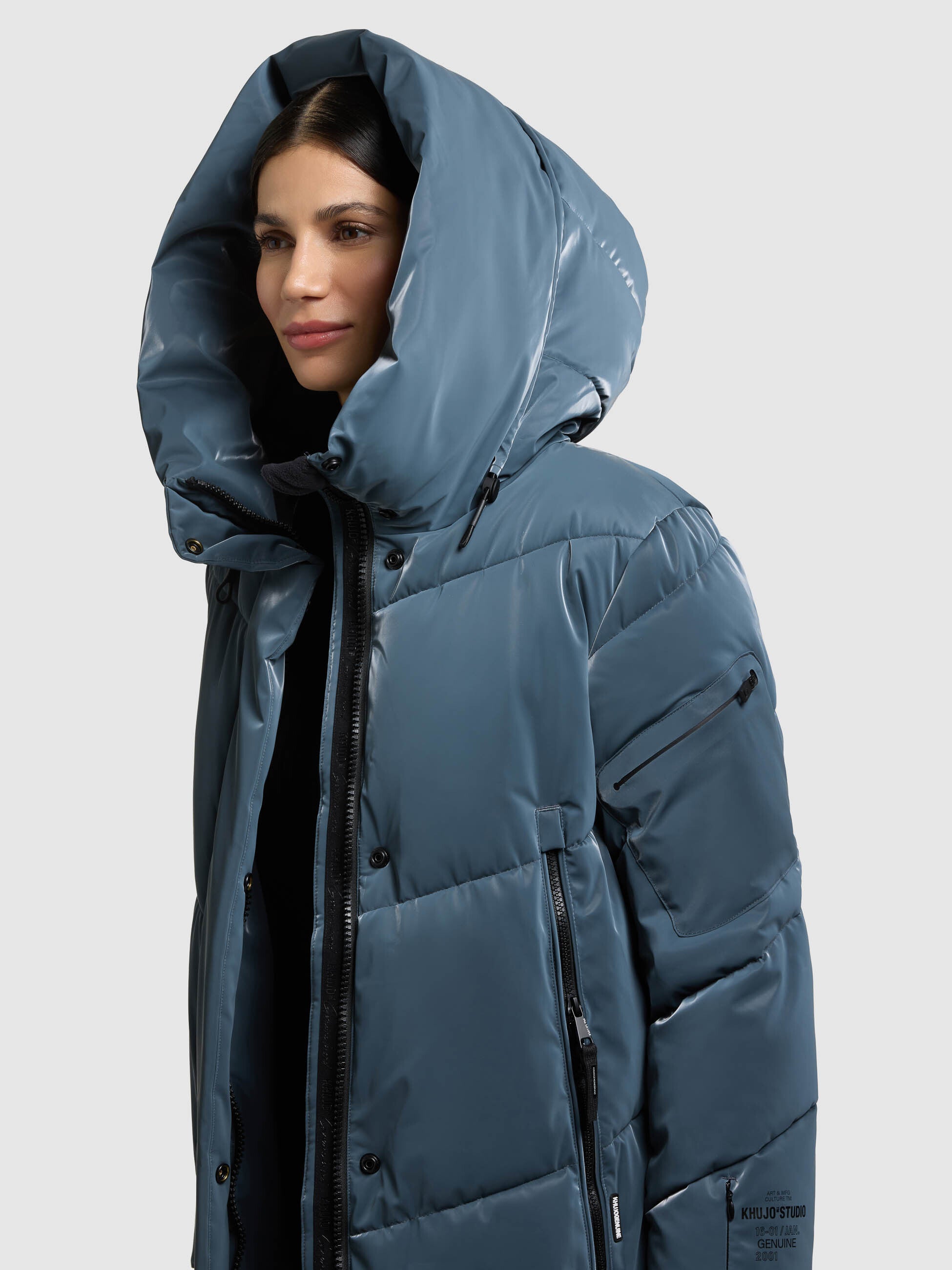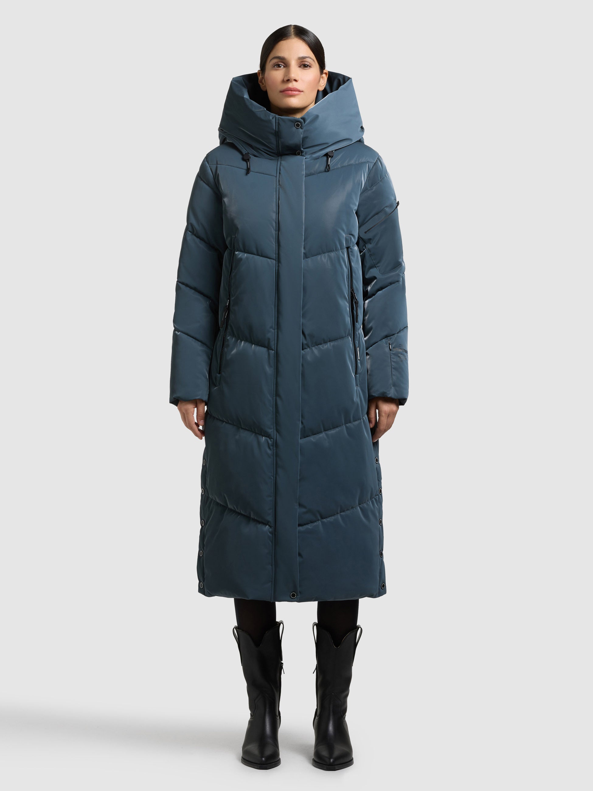 LIKE A WARM HUG: Das Motto vom khujo Mantel PULSET SHINY. Dank einer verstellbaren, hoch schließenden Kapuze, elastischen Bündchen am Ärmelfutter und Seitenschlitzen am Saum, bietet der seidig glänzende Steppmantel zuverlässigen Schutz vor kaltem Winterwetter. Der Zwei-Wege-Reißverschlus mit Kinnschutz, die Windschutzblende mit Druckknöpfen und große, mit Fleece gefütterte Reißverschlusstaschen bezeugen bei dem schimmernden Wintermantel mit softer Haptik einmal mehr die Leidenschaft für Details.
