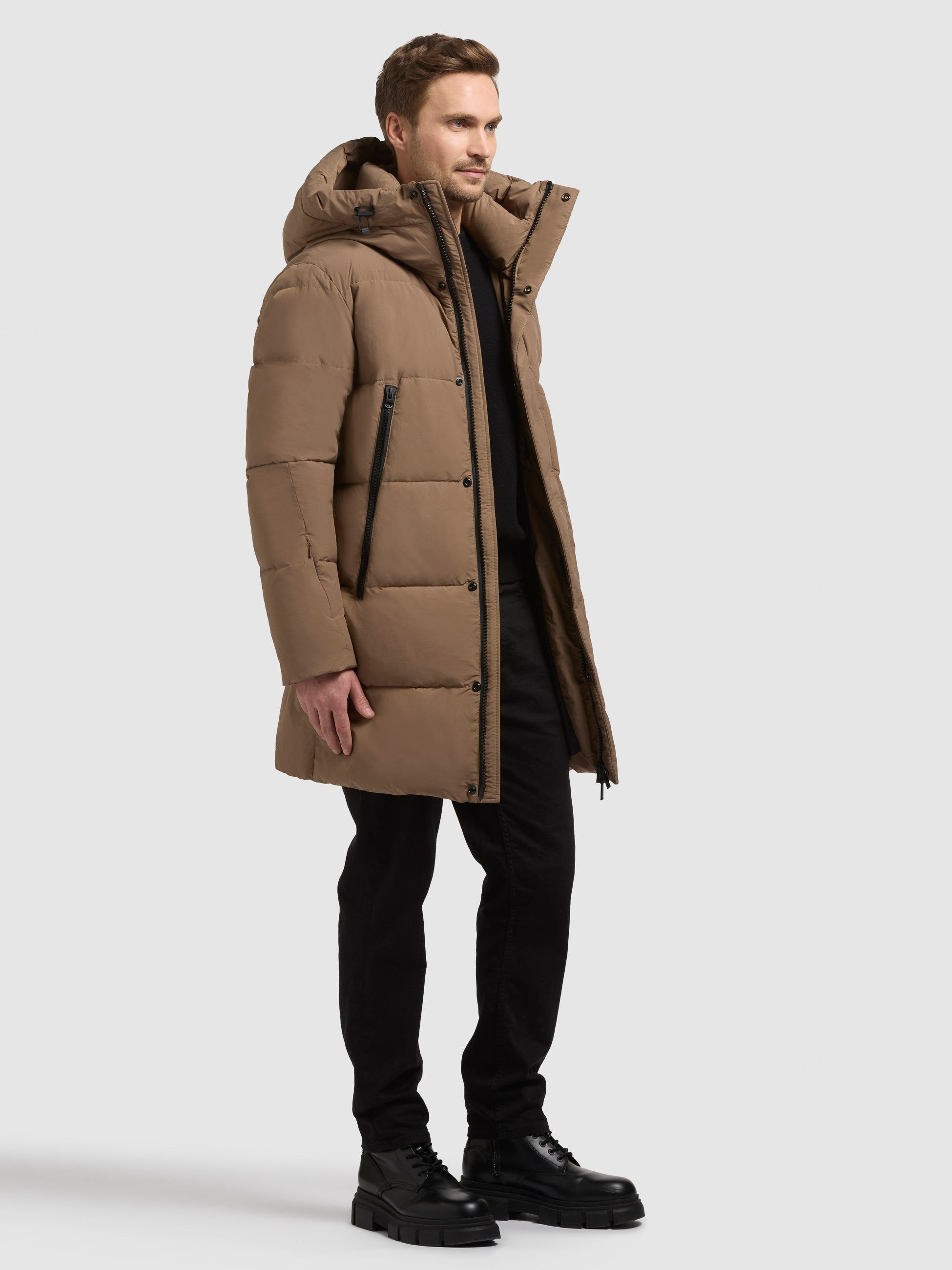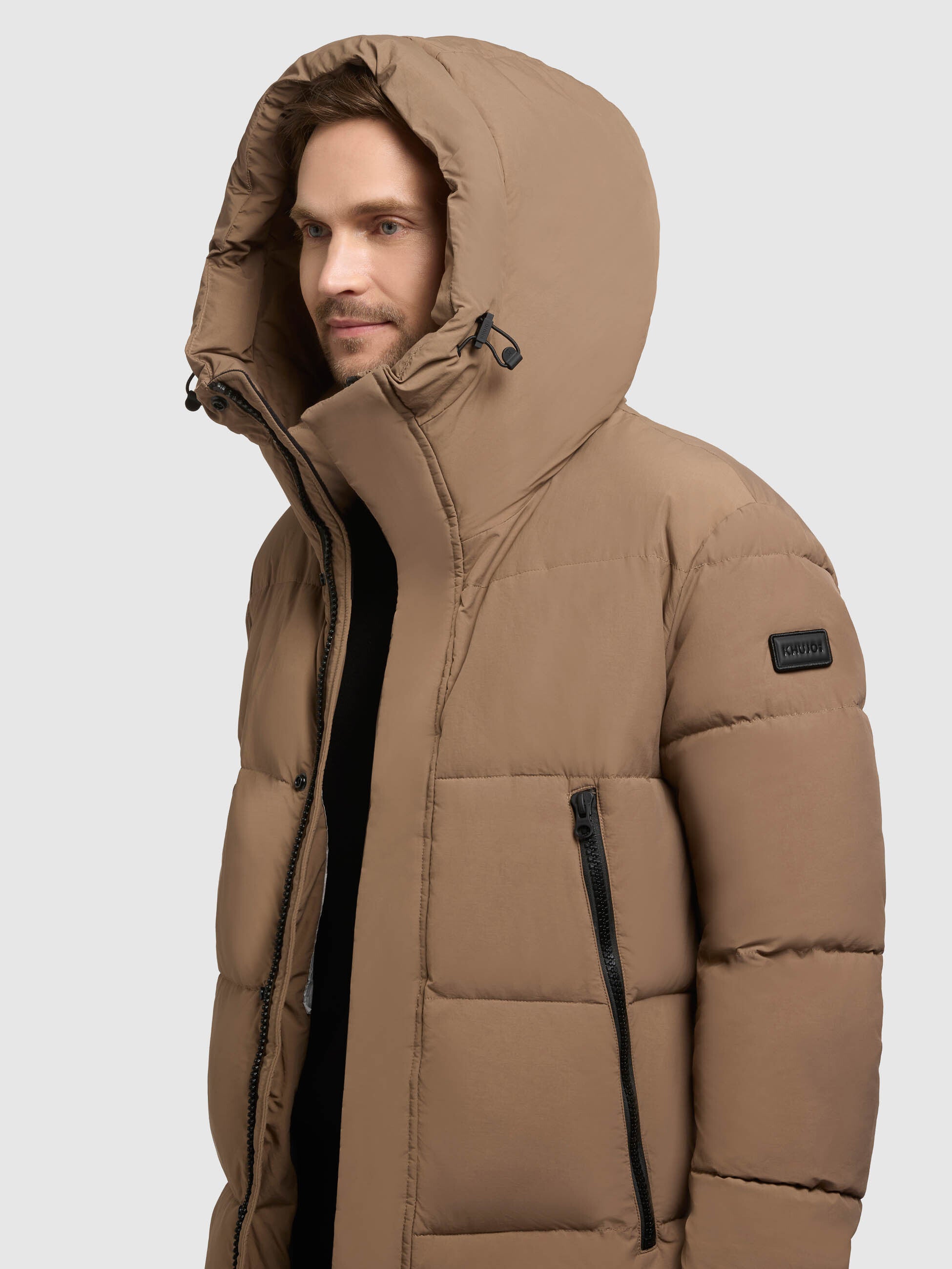 Die wattierte, hoch schließende Kapuze mit elastischem Kordelzug und innenliegendem Stehkragen sorgt bei dem khujo Mantel HUDSON für echte Wohlfühlmomente. Ein Zwei-Wege-Reißverschluss, elastische Bündchen am Ärmelfutter und ein abnehmbarer Tragegurt komplettieren das urbane Design dieses Steppmantels. Deine Essentials lassen sich in den großen, mit Fleece gefütterten Reißverschlusstaschen, einer Innentasche sowie einer geheimen Ärmeltasche sicher verstauen.