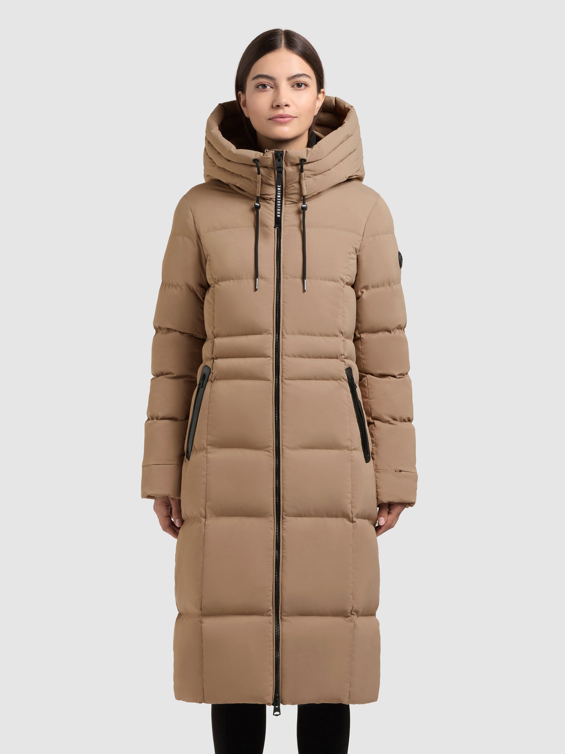 Eine warme Wattierung, silberglänzendes Innenfutter und ein integrierter Stehkragen aus Rippstrick sorgen bei dem khujo Mantel ENAKH für wohlige Wärme an kalten Wintertagen. Der Steppmantel im Slim Fit bietet dank der hoch schließenden Kapuze mit Kordelzug und elastischen Bündchen am Ärmelfutter höchsten Tragekomfort. Ein Zwei-Wege-Reißverschluss, Fleece gefütterte und mit Lederimitat verzierte Reißverschlusstaschen sowie eine versteckte Ärmeltasche runden den knielangen Wintermantel gelungen ab.