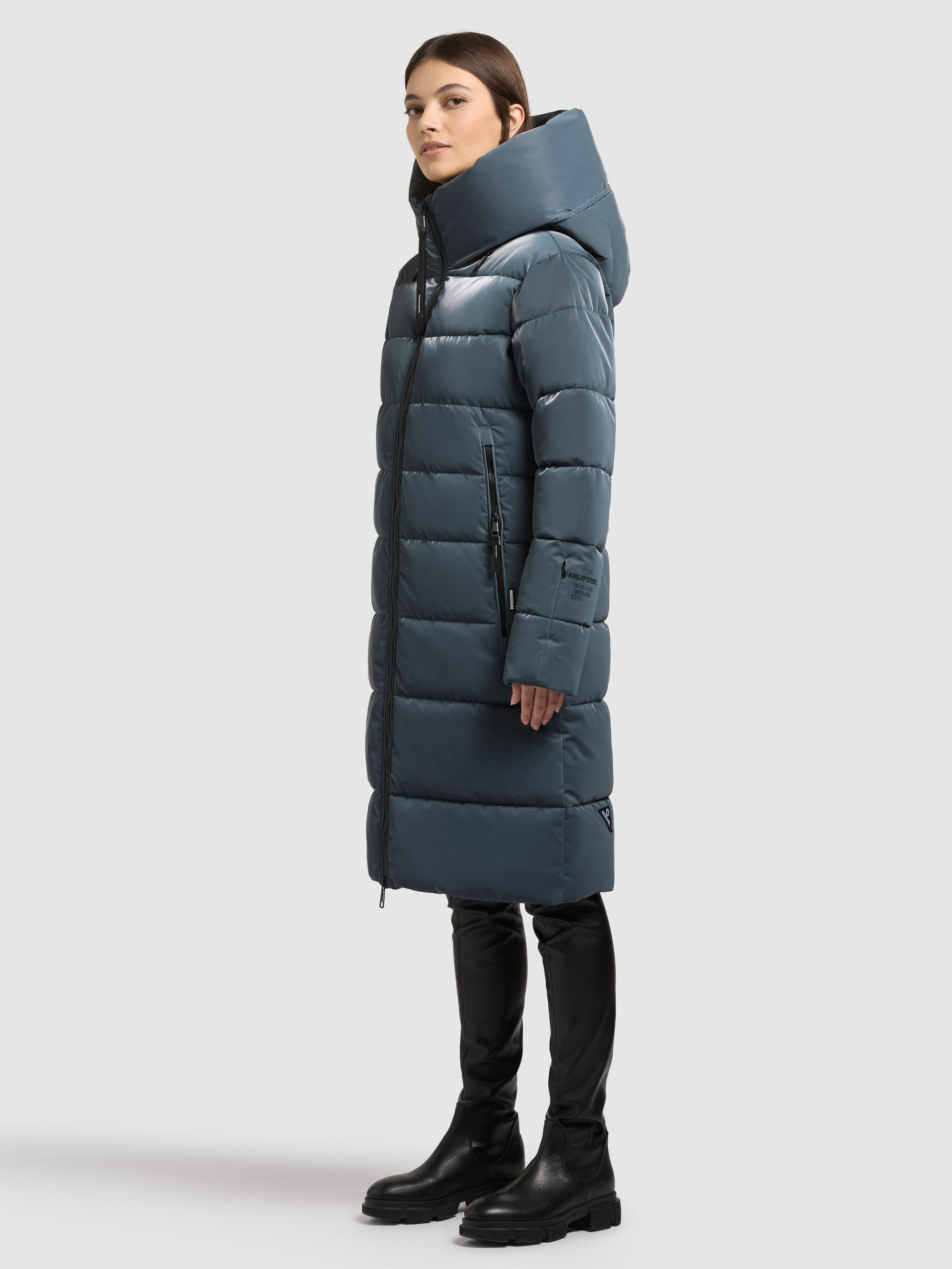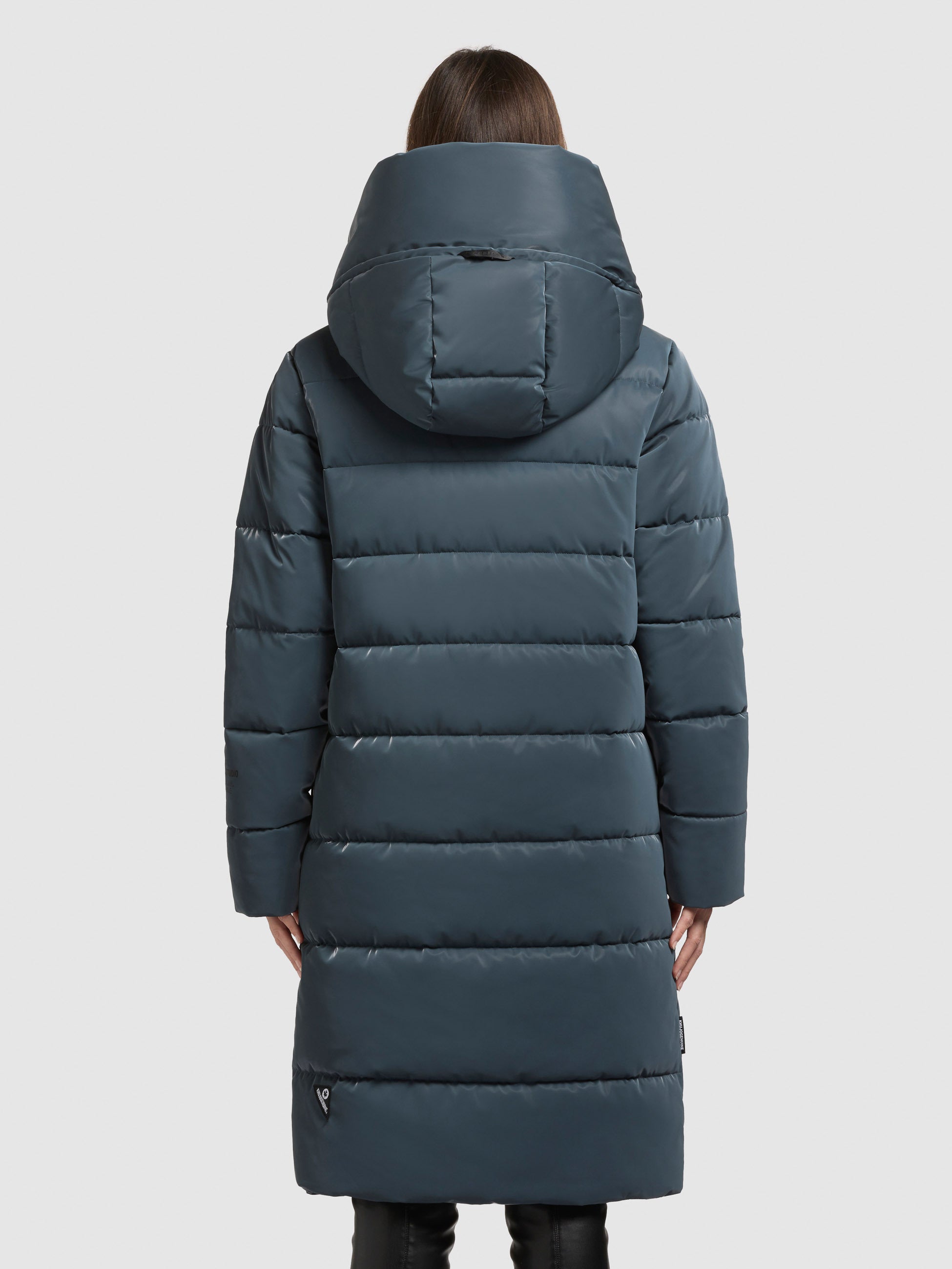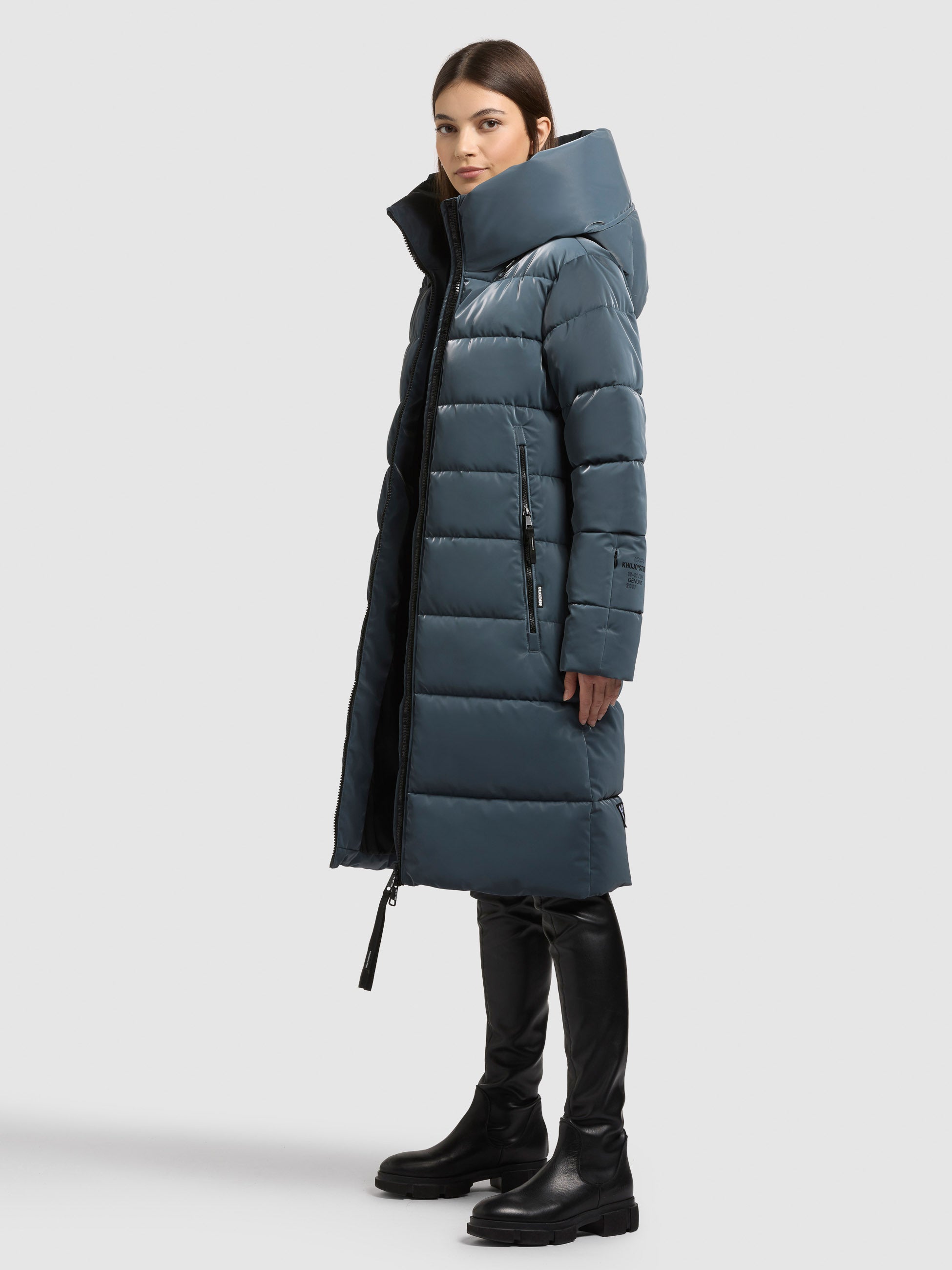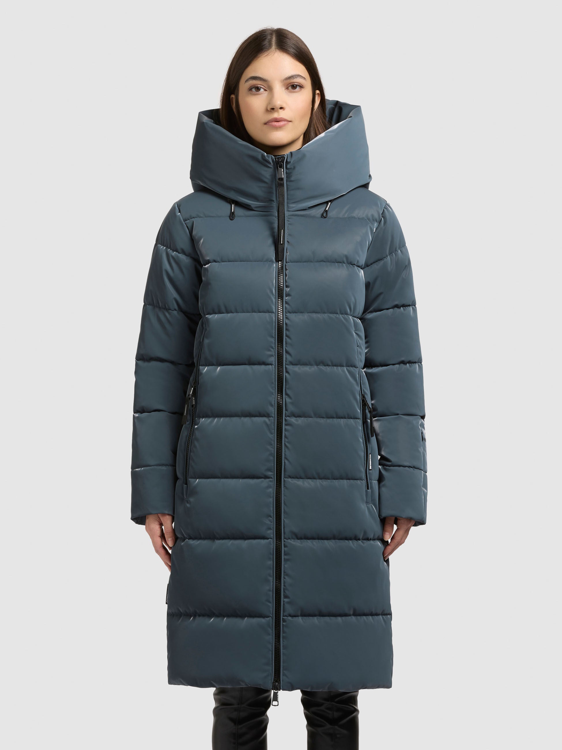 LIKE A WARM HUG: Das Motto vom khujo Mantel JILIAS6 SHINY. Dank einer verstellbaren, hoch schließenden Kapuze mit extrabreiter Krempe und elastischen Bündchen am Ärmelfutter bietet der seidig glänzende Steppmantel zuverlässigen Schutz vor kaltem Winterwetter. Der Zwei-Wege-Reißverschluss, eine verschließbare Innen- und Ärmeltasche sowie die großen, mit Fleece gefütterten Reißverschlusstaschen bezeugen bei dem schimmernden Wintermantel mit softer Haptik einmal mehr die Leidenschaft für Details.