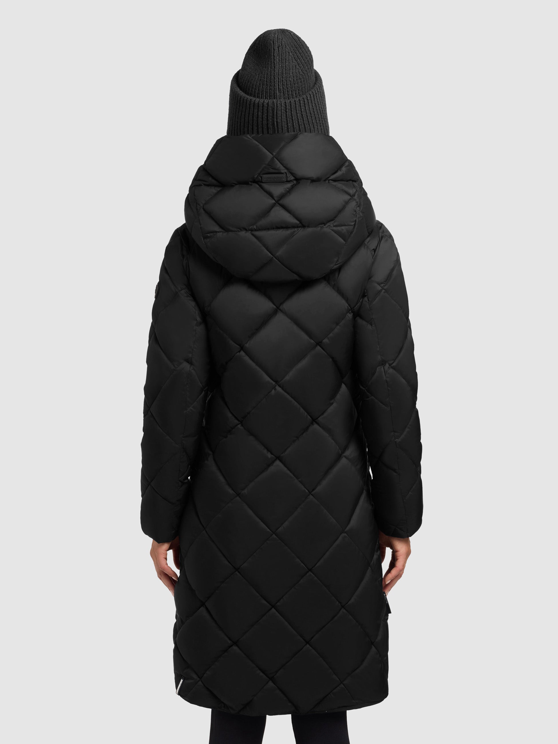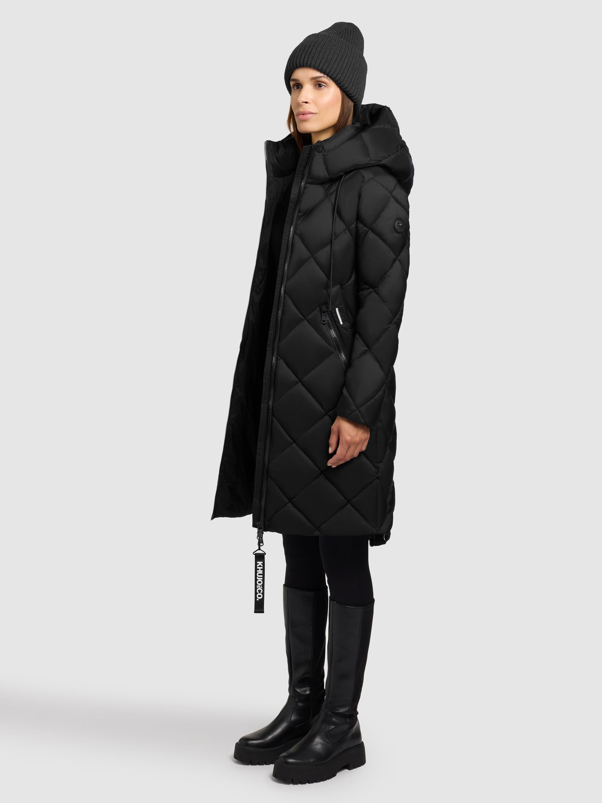Thanks to the quilted diamond pattern and a high-closing hood with drawstring, the warmly padded khujo The LINDA coat is a real eye-catcher this season. Elasticated cuffs on the sleeve lining, a two-way zipper, and an adjustable drawstring at the hem of this knee-length quilted coat once again demonstrate the passion for detail. khujo. Your essentials can be safely stored in fleece-lined hand pockets and zippered pockets, as well as closable inner pockets.