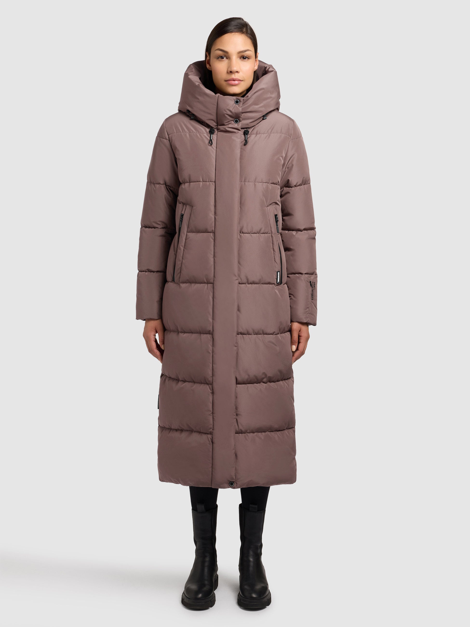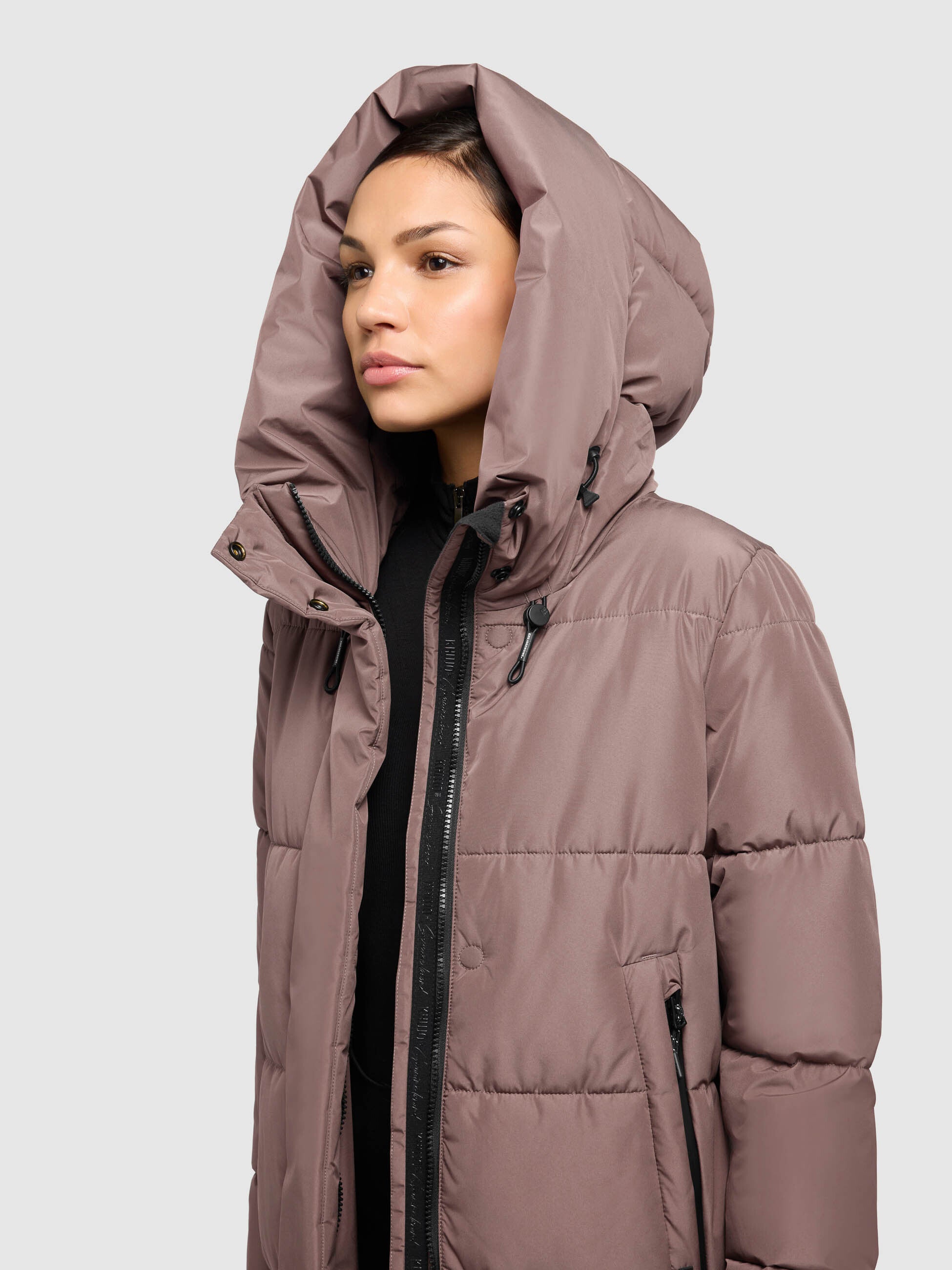 LIKE A WARM HUG: That's the motto of khujo Coat SOULANI4. The warmly padded, calf-length quilted coat Provides reliable protection against cold winter weather. Features include an adjustable, high-closing hood, ribbed cuffs on the sleeve lining, and elasticated cuffs. drawstrings The hood and hem, a combination of a two-way zipper and magnetic button placket, fleece pocket lining and a water-repellent coating on the zippered pockets once again demonstrate the passion for detail of khujo.