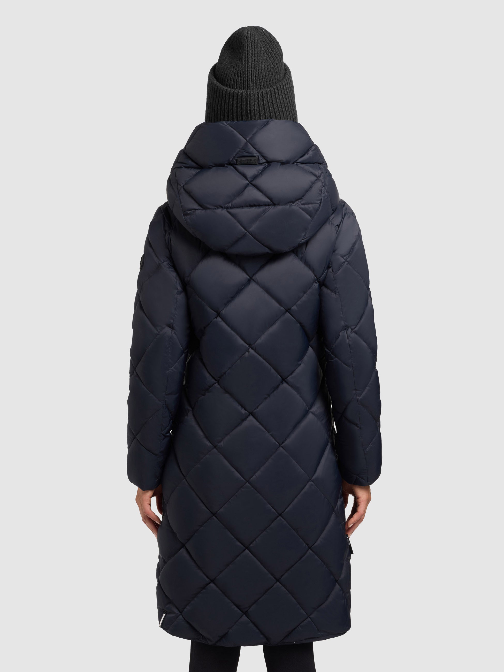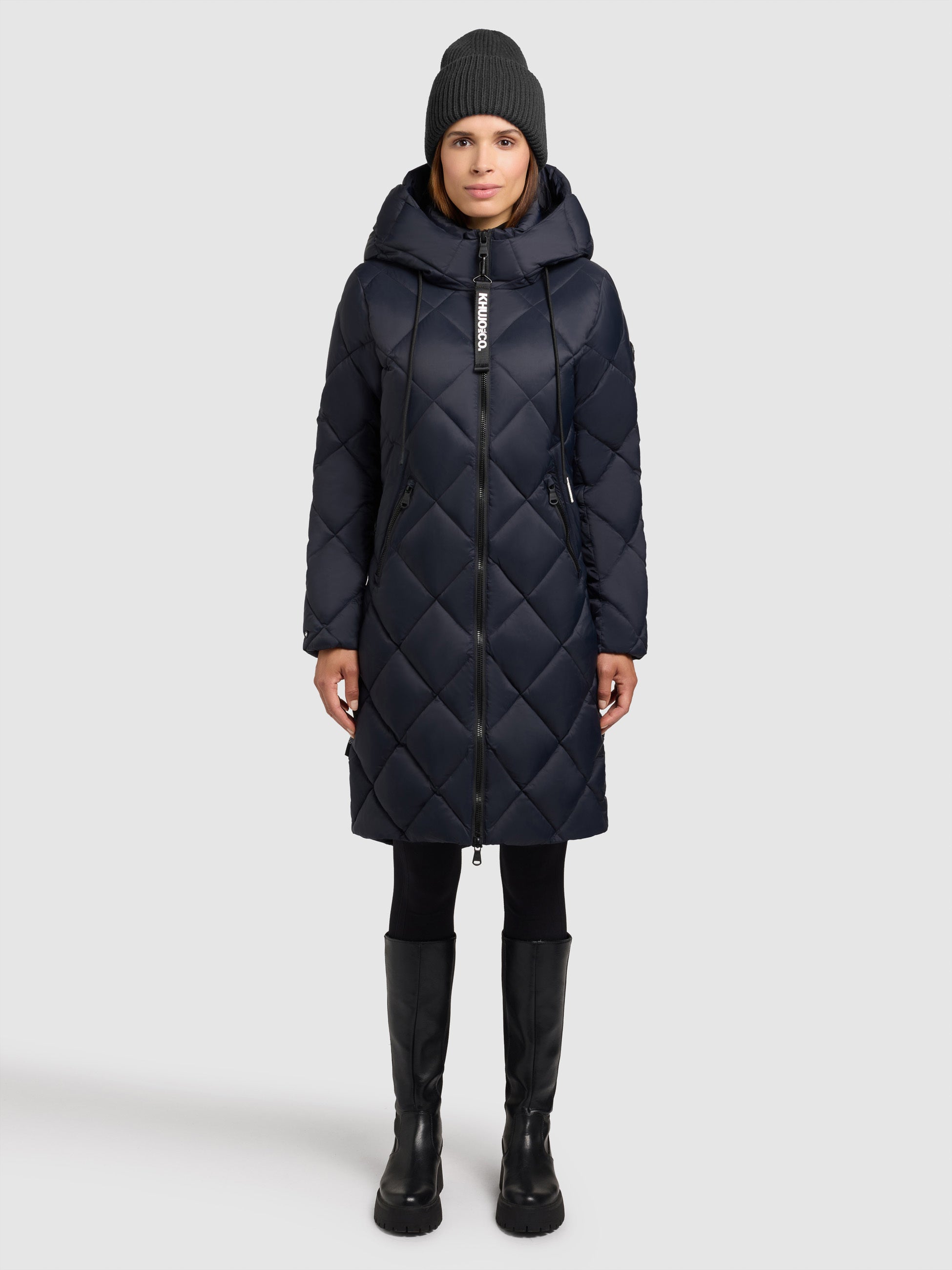 Thanks to the quilted diamond pattern and a high-closing hood with drawstring, the warmly padded khujo The LINDA coat is a real eye-catcher this season. Elasticated cuffs on the sleeve lining, a two-way zipper, and an adjustable drawstring at the hem of this knee-length quilted coat once again demonstrate the passion for detail. khujo. Your essentials can be safely stored in fleece-lined hand pockets and zippered pockets, as well as closable inner pockets.