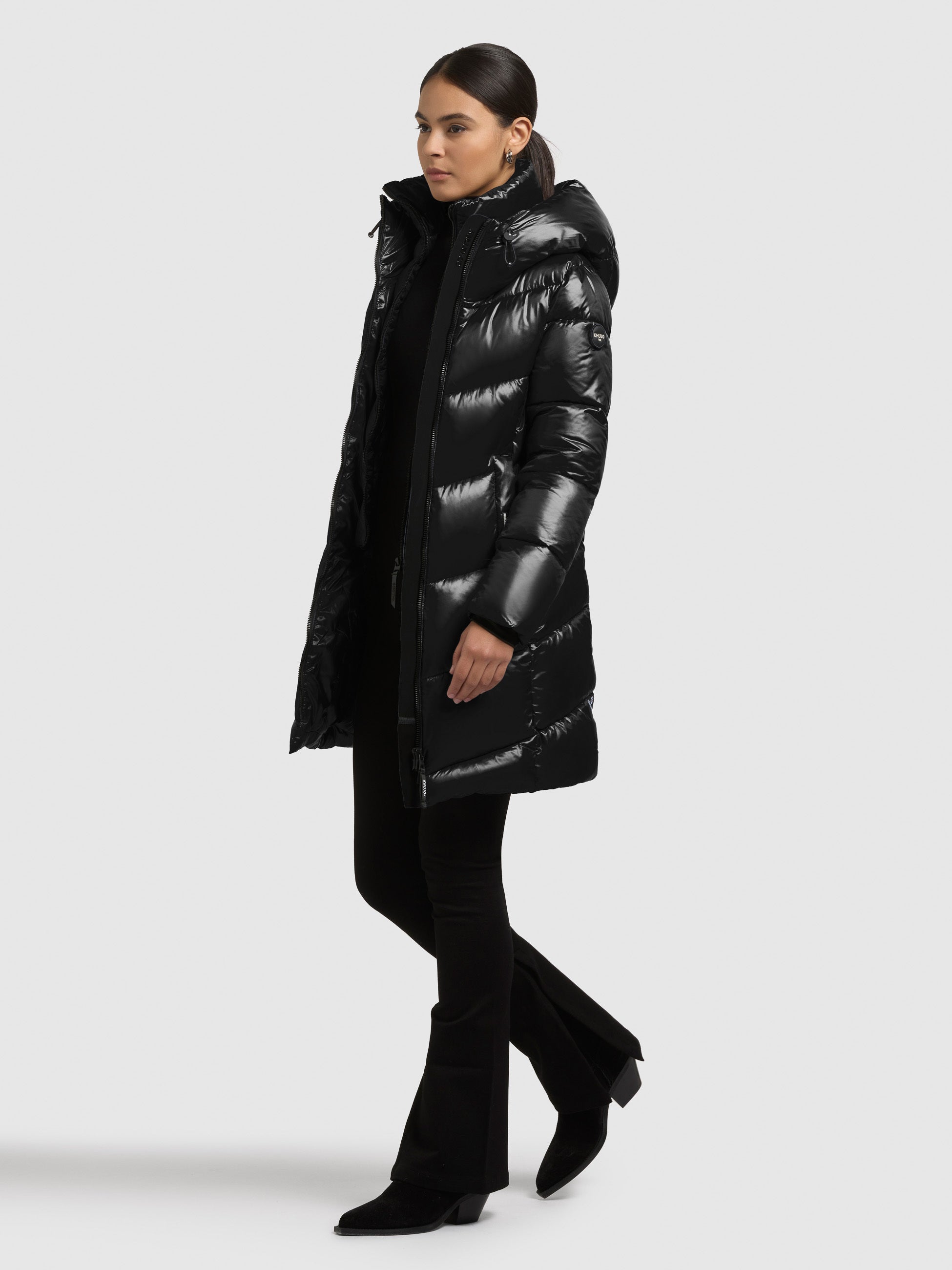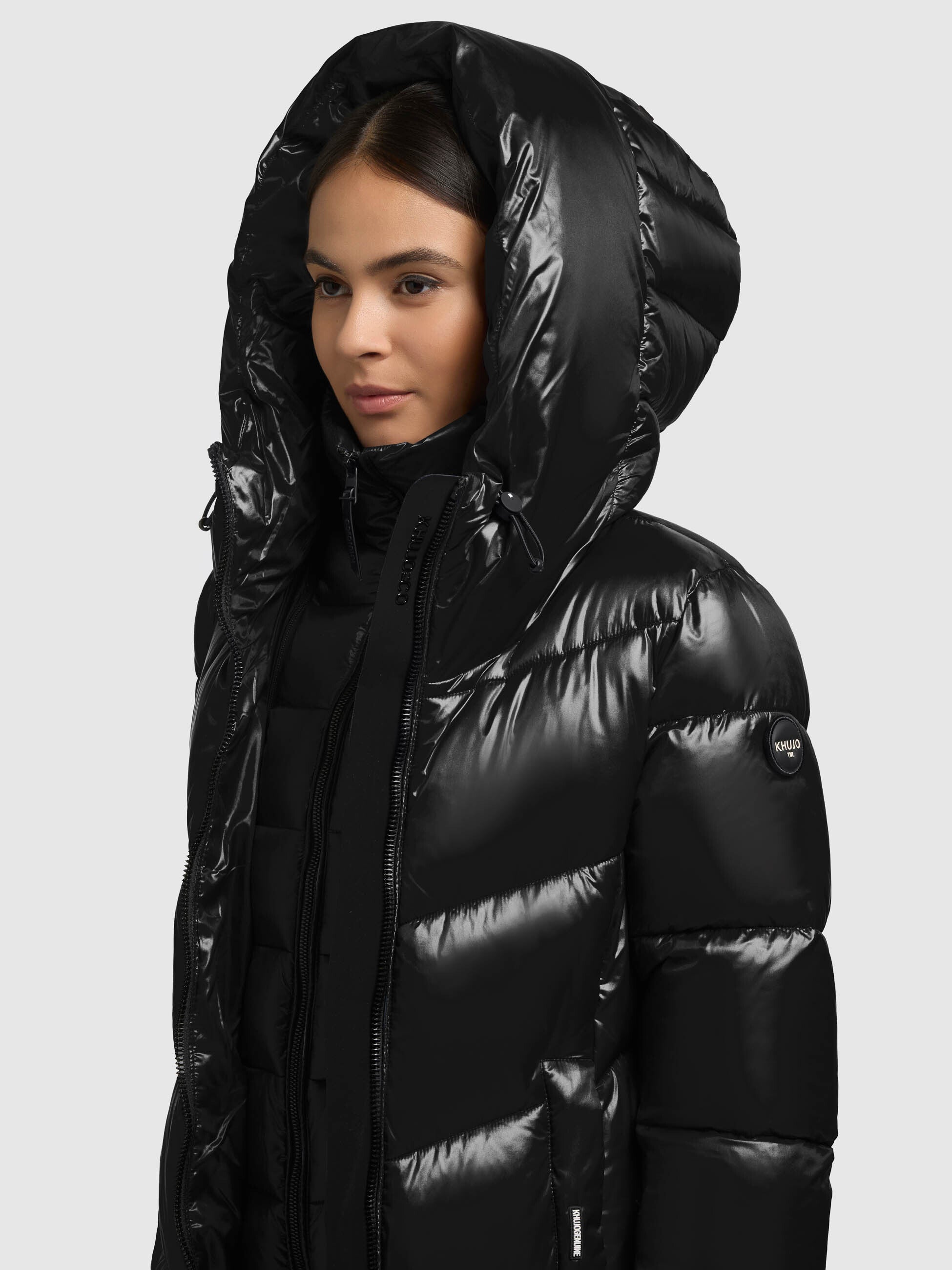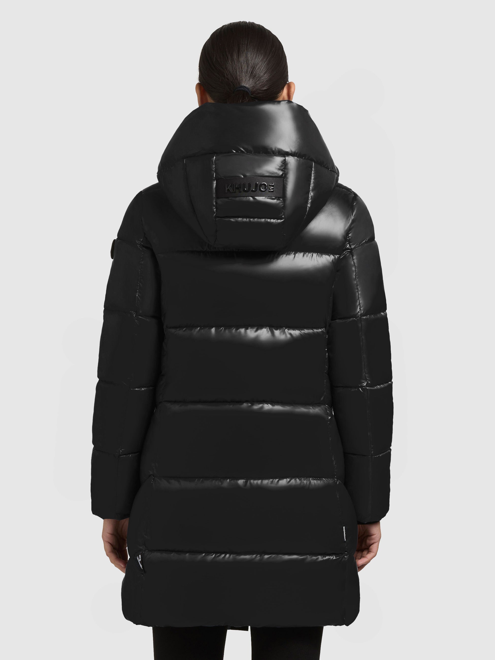 The warm padding and a removable quilted insert with a stand-up collar ensure maximum comfort in the khujo ADRIANA coat. This glossy, slim-fit quilted coat offers cozy warmth on cold winter days thanks to its high-closing hood with drawstring and elasticated cuffs on the sleeve lining. A two-way zipper, fleece-lined zippered pockets, and a closable inner pocket complete this lightweight winter coat.