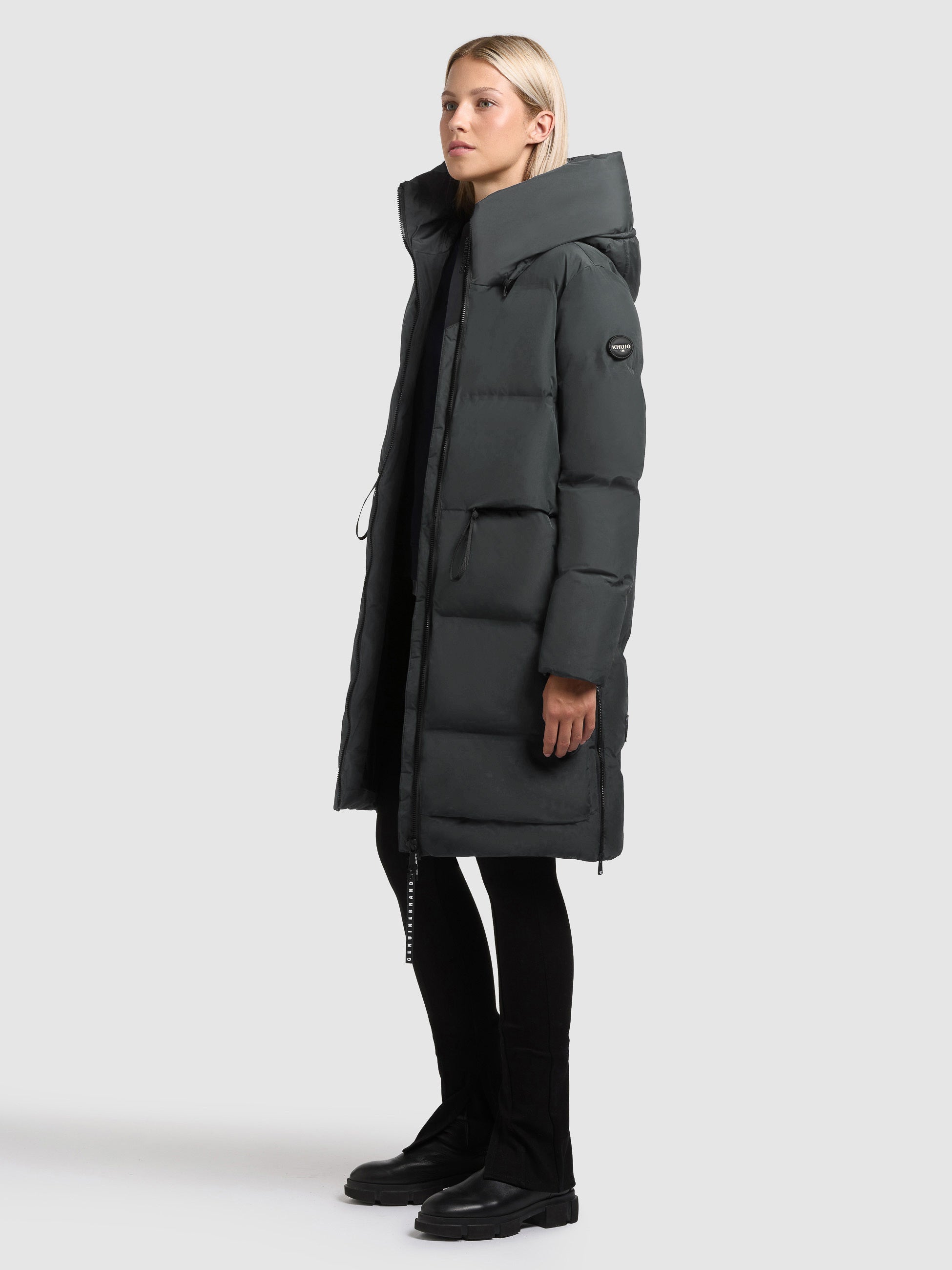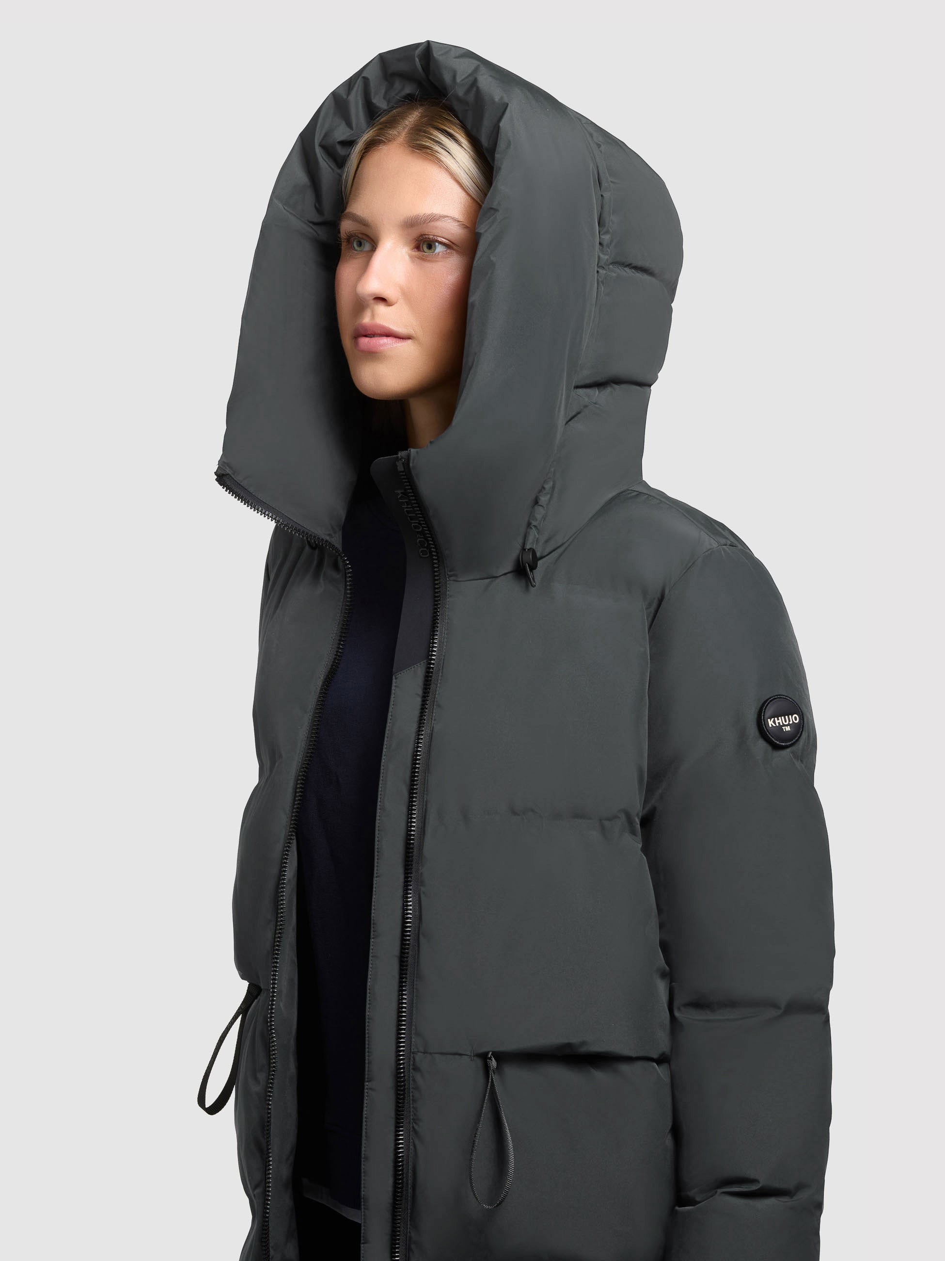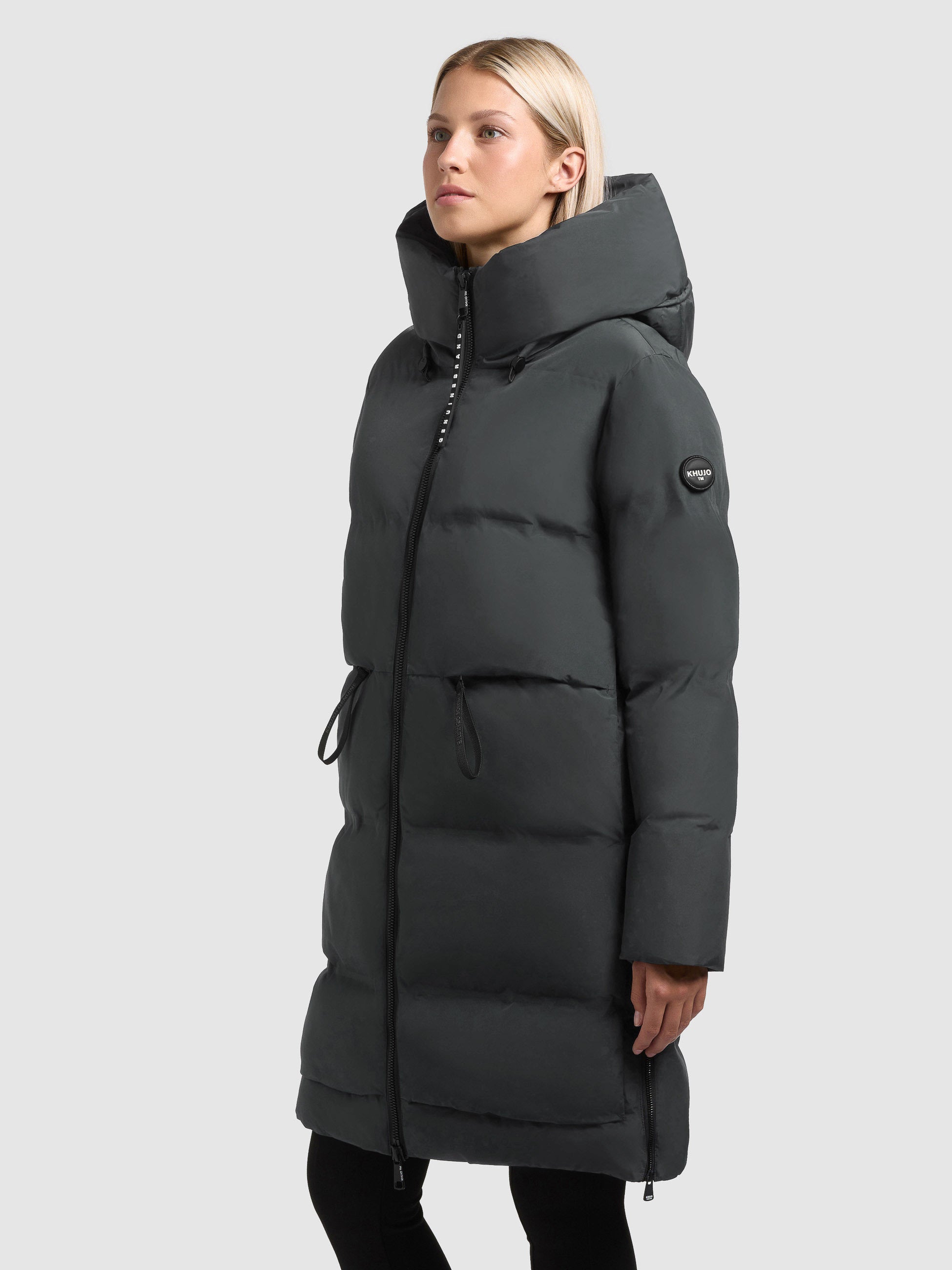 With dem khujo With the AROMA2 coat, you make a fashion statement that's sure to turn heads. quilted coat The loose fit is made from a water-repellent outer material, and the zippered side slits provide ample flexibility. The large, lined hood with elastic drawstring, a two-way zipper with wind flap, and zippered and handwarmer pockets with fleece lining complete the design.