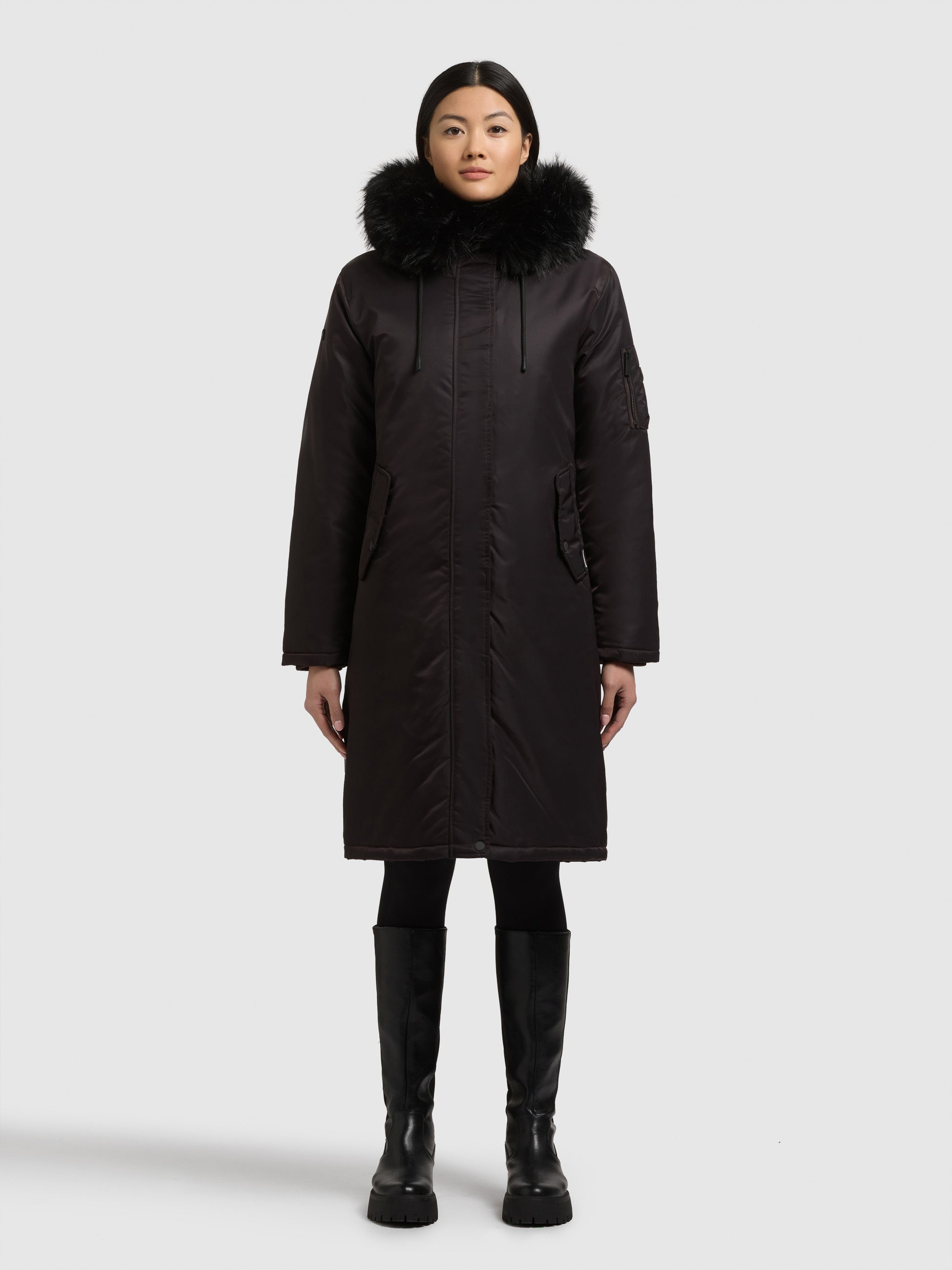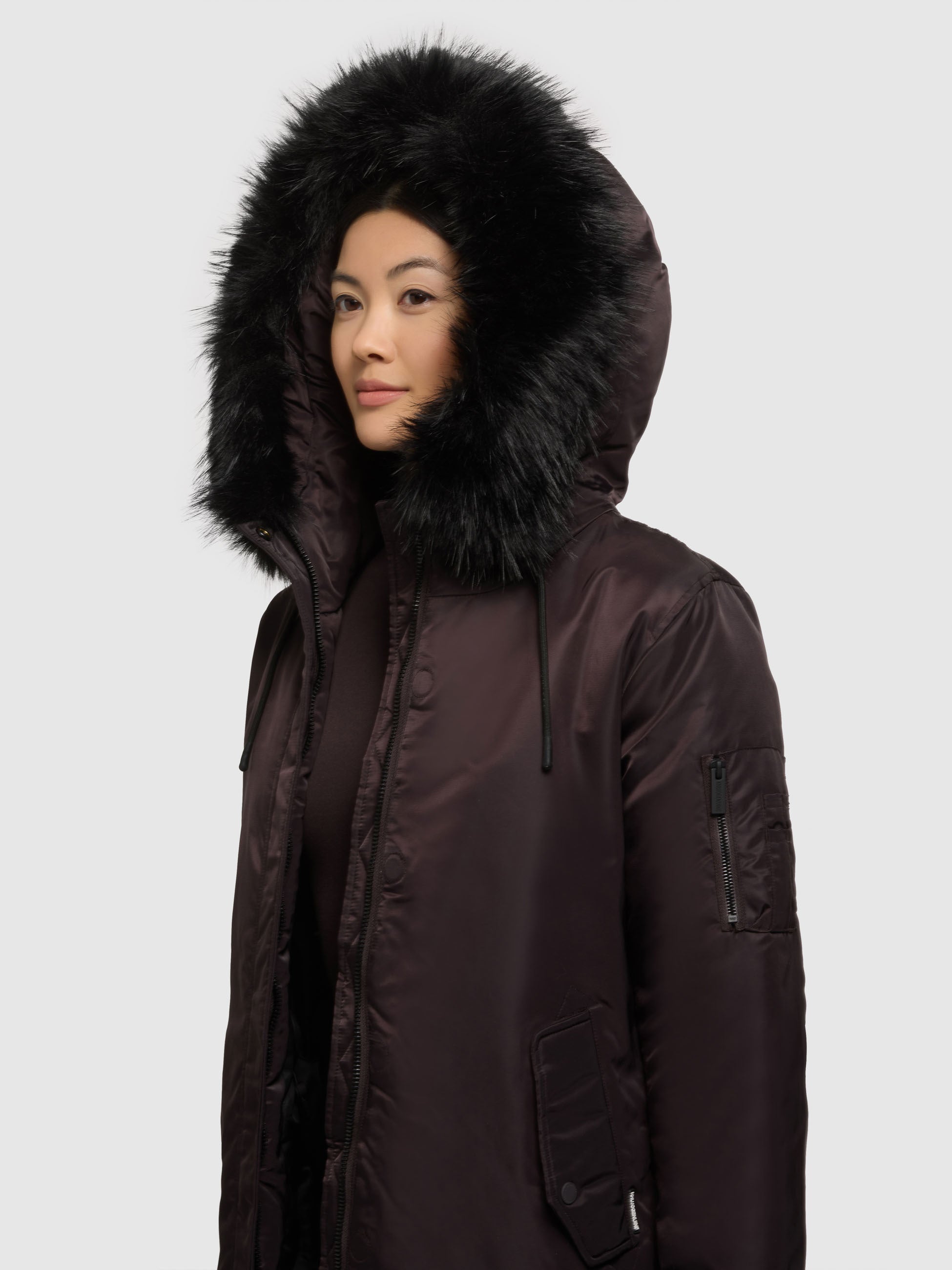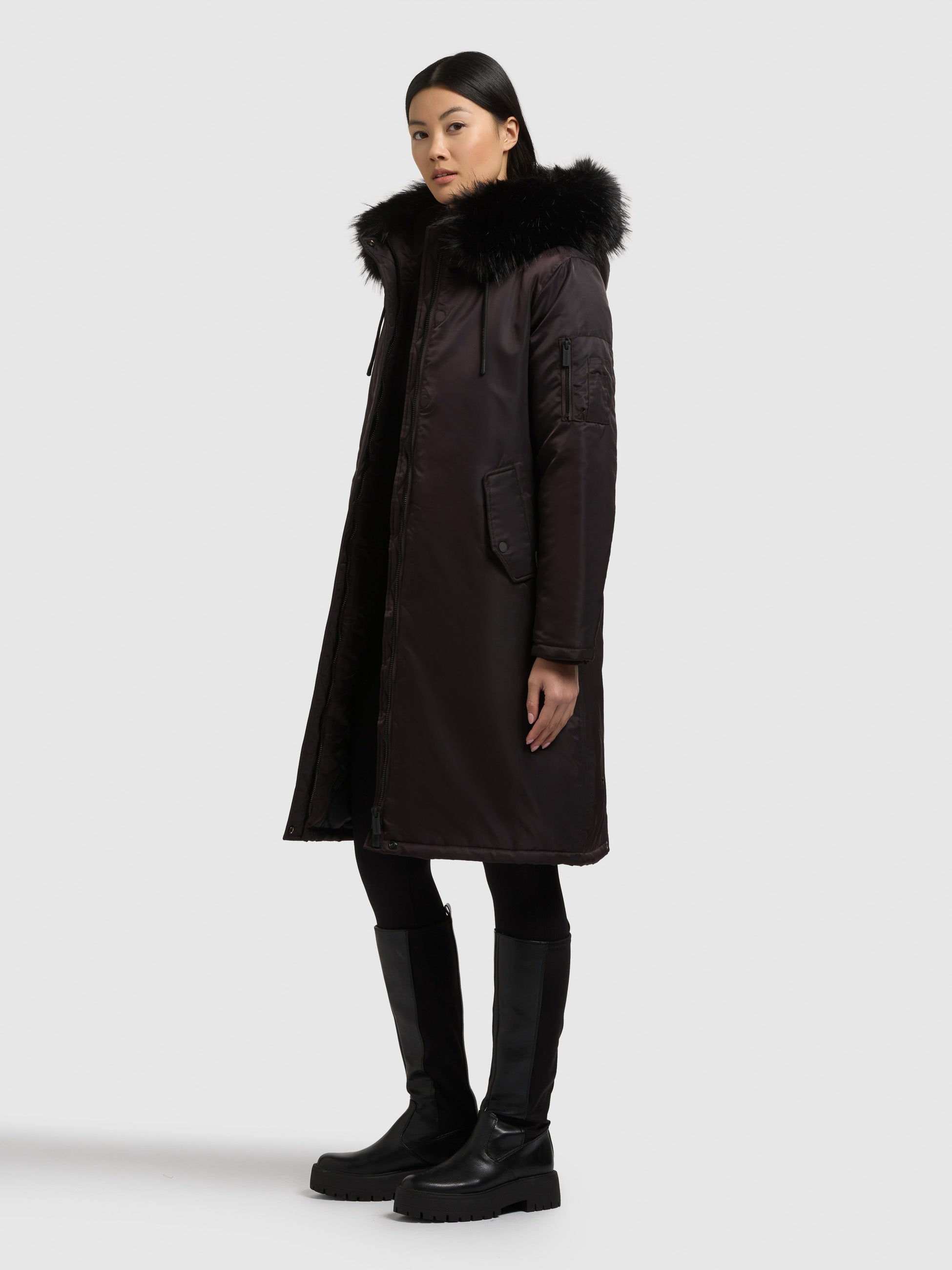 - Hood with detachable faux fur