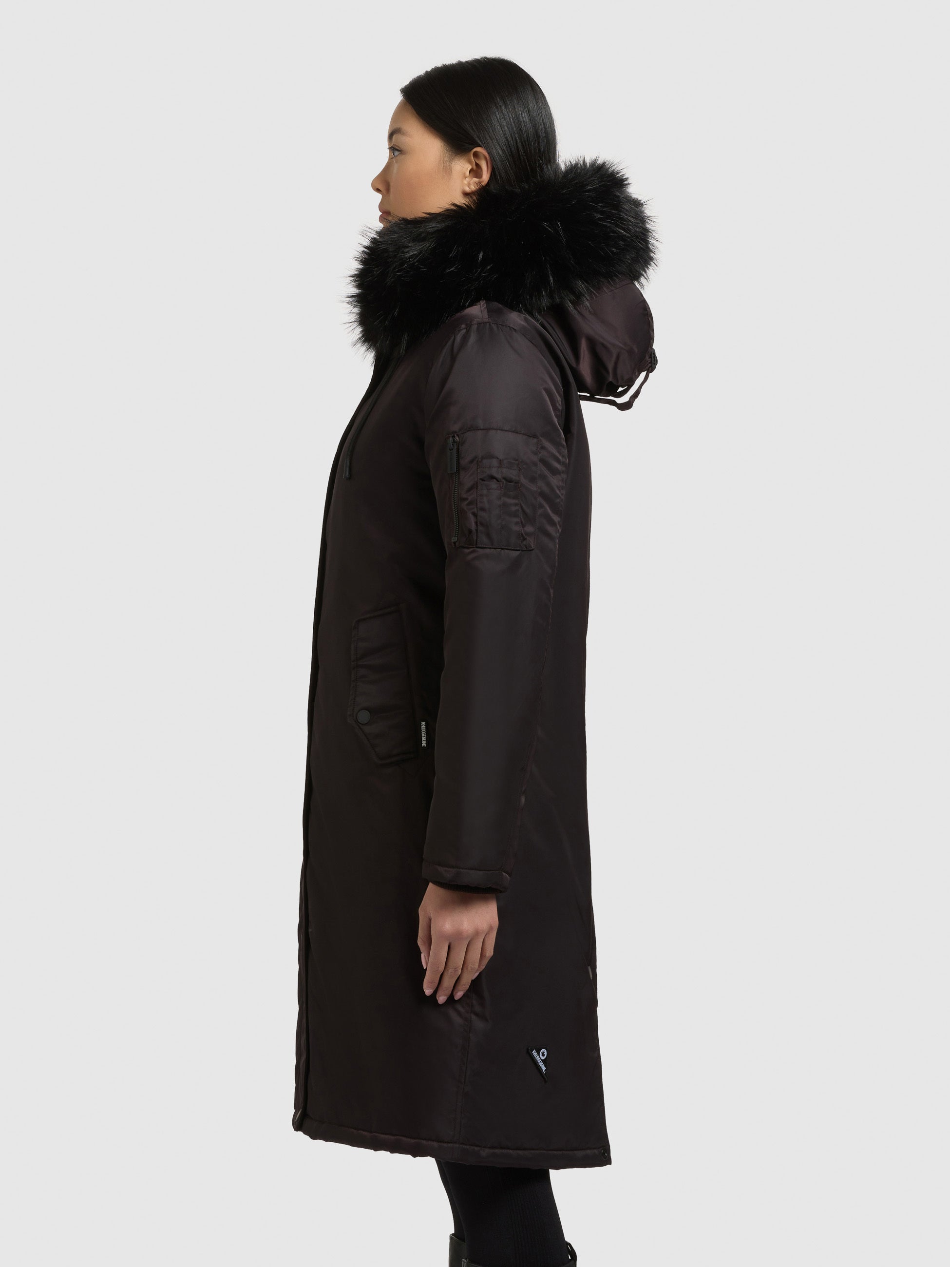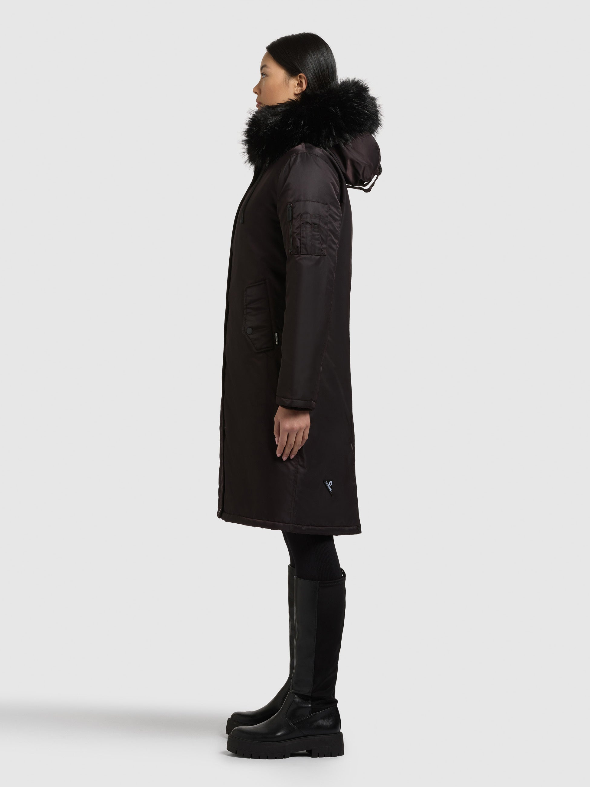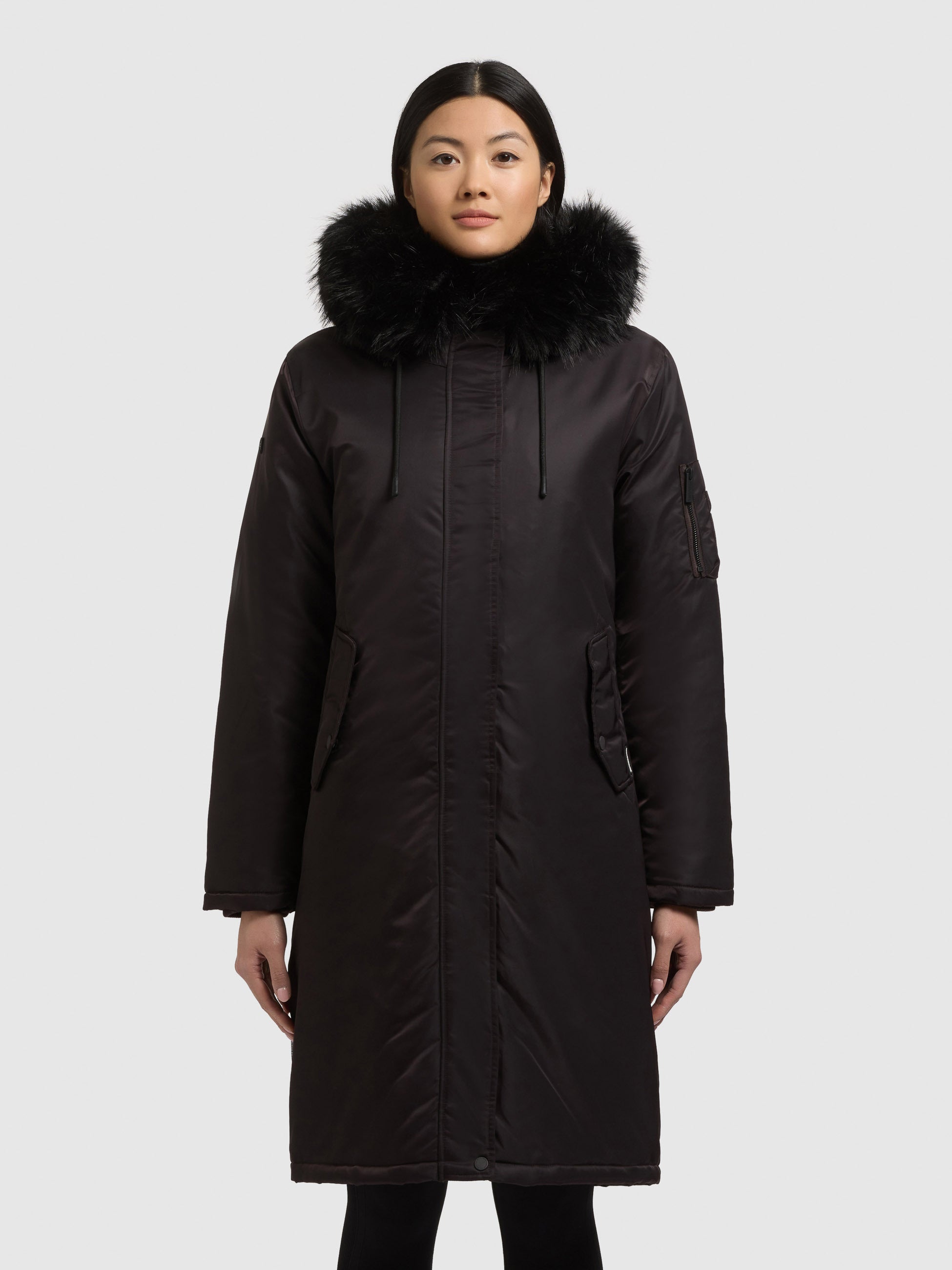 - Hood with detachable faux fur