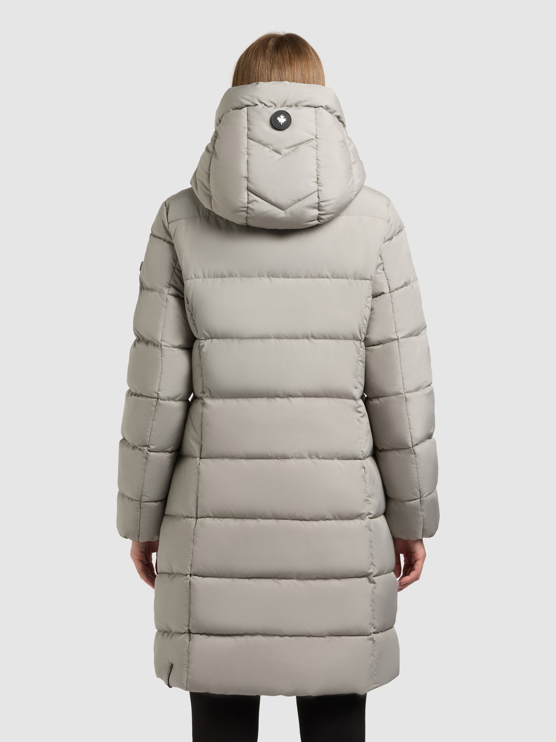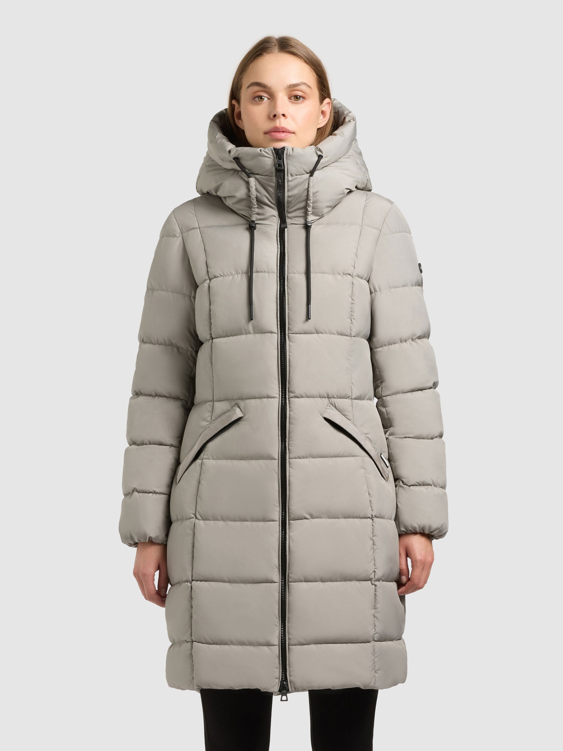 The knee-length, slim-fit khujo coat ARLENE impresses with its large, high-closing hood with drawstring and an internal stand-up collar. Thanks to a lightweight taffeta lining and warm padding, this quilted coat offers excellent protection against cold winter days. Fleece-lined zippered pockets keep your hands nice and warm and also provide ample space for your essentials in this winter parka.