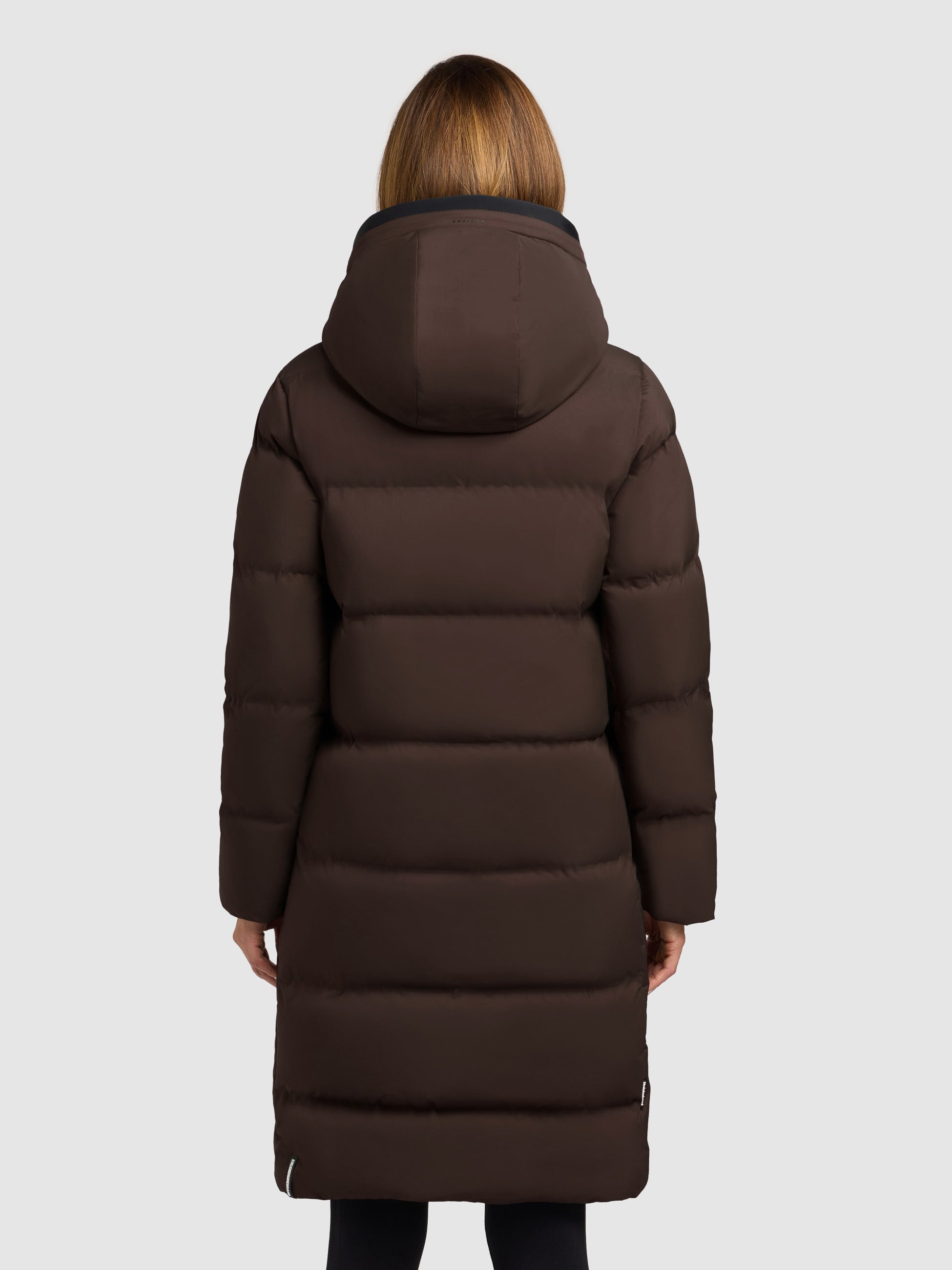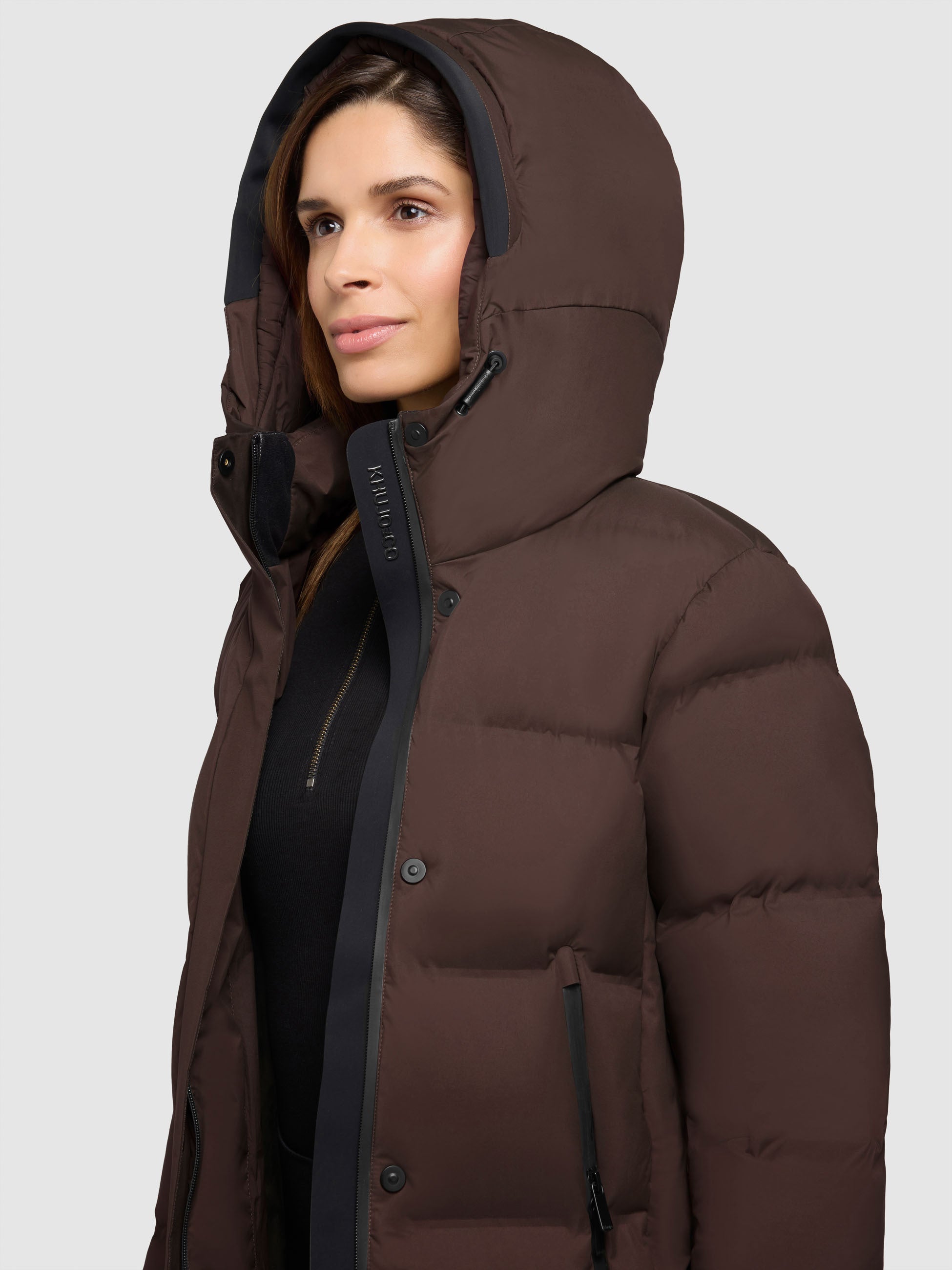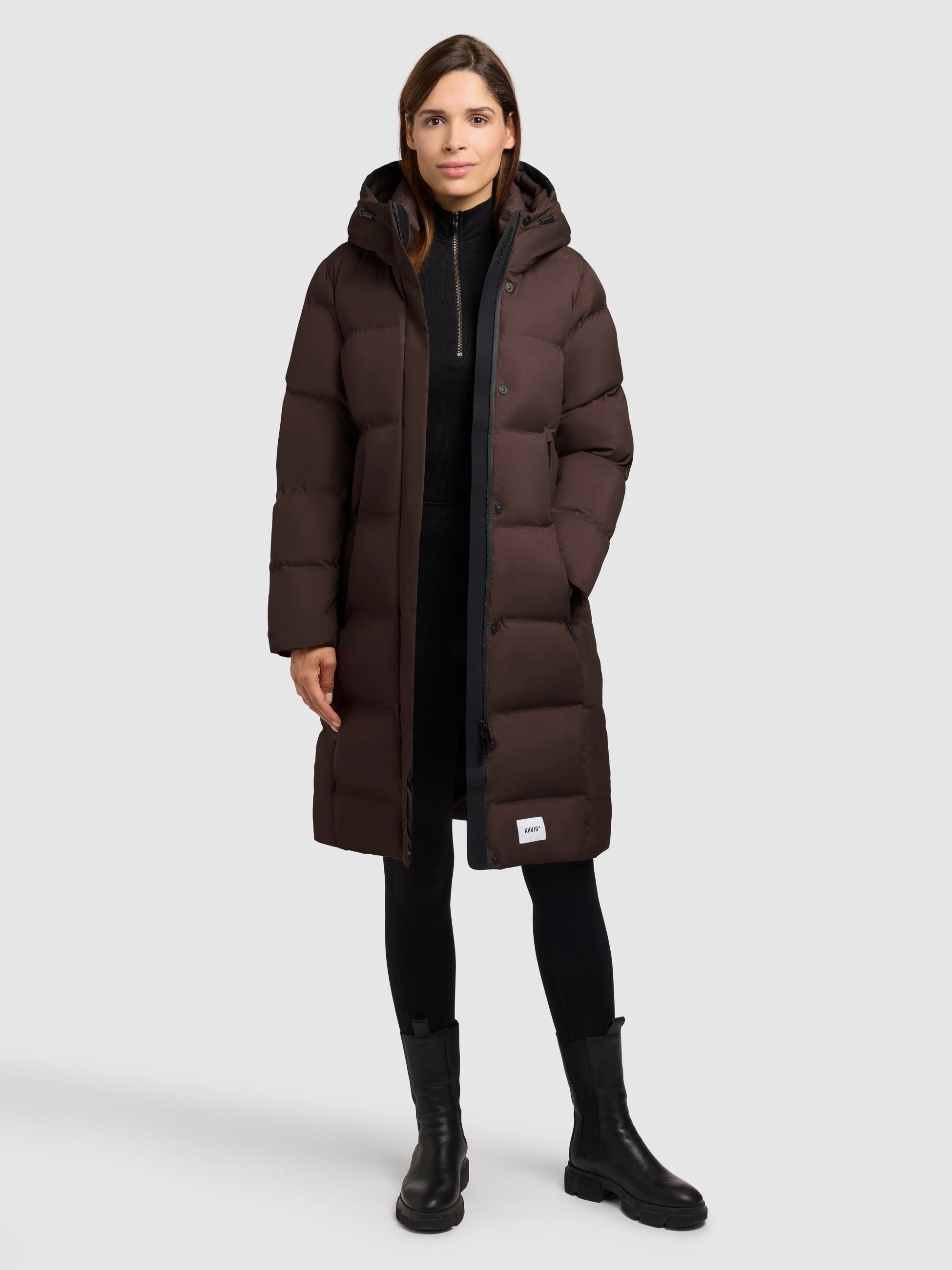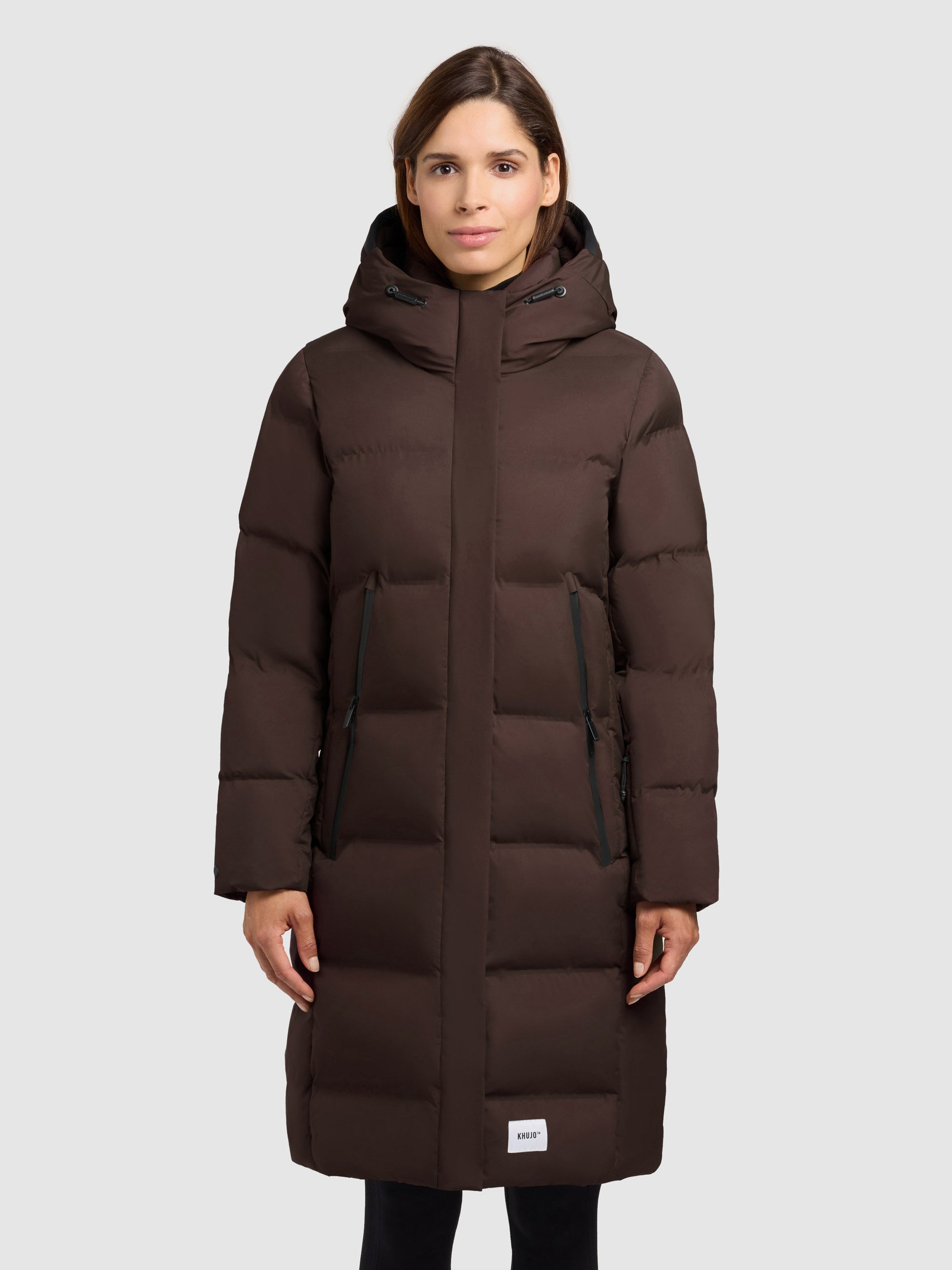 The high-closing hood with elastic drawstring and the two-way zipper with wind flap and magnetic closure make the khujo The HAYANA coat is a practical companion. This knee-length quilted coat with water-repellent zippers offers ample storage space for your essentials thanks to fleece-lined zippered pockets, as well as an inner pocket and a sleeve pocket. Elasticated cuffs on the sleeve lining complete the design of this winter jacket.
