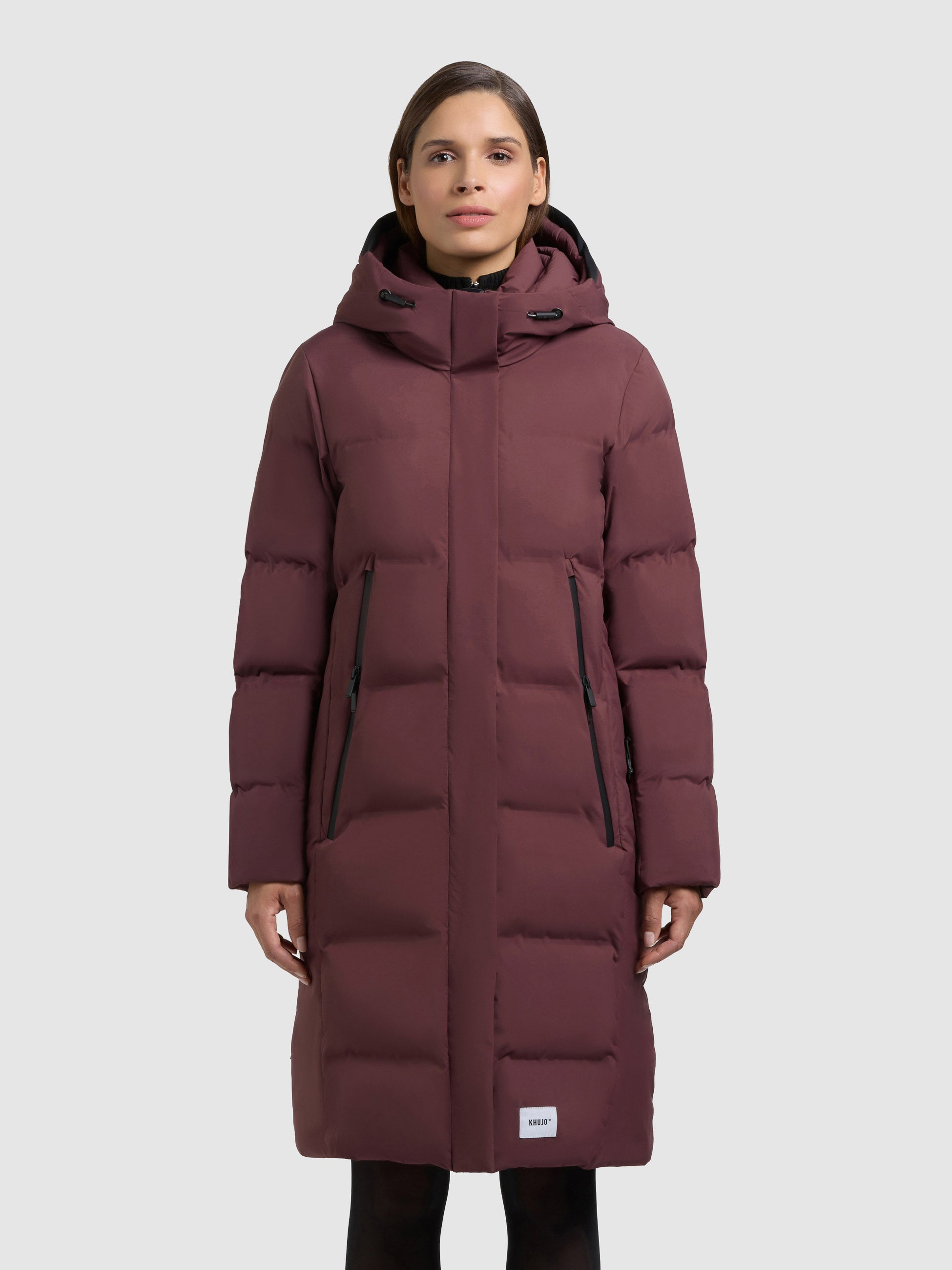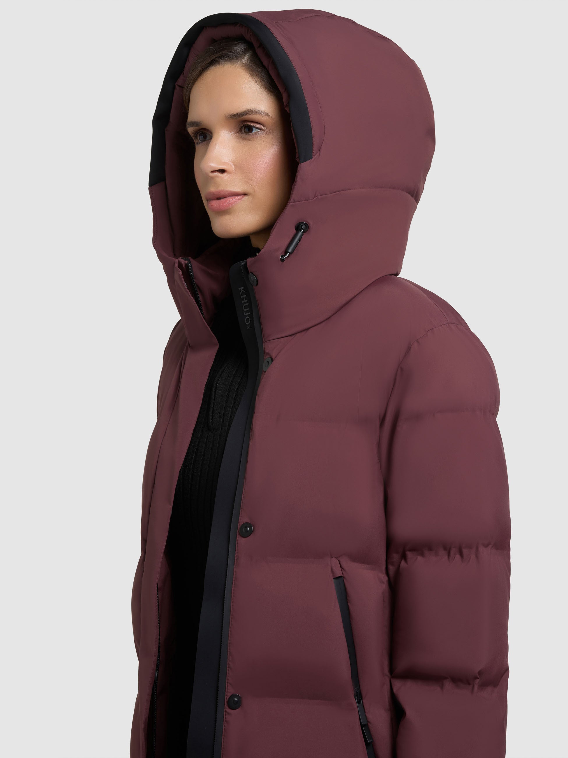 The high-closing hood with elastic drawstring and the two-way zipper with wind flap and magnetic closure make the khujo The HAYANA coat is a practical companion. This knee-length quilted coat with water-repellent zippers offers ample storage space for your essentials thanks to fleece-lined zippered pockets, as well as an inner pocket and a sleeve pocket. Elasticated cuffs on the sleeve lining complete the design of this winter jacket.