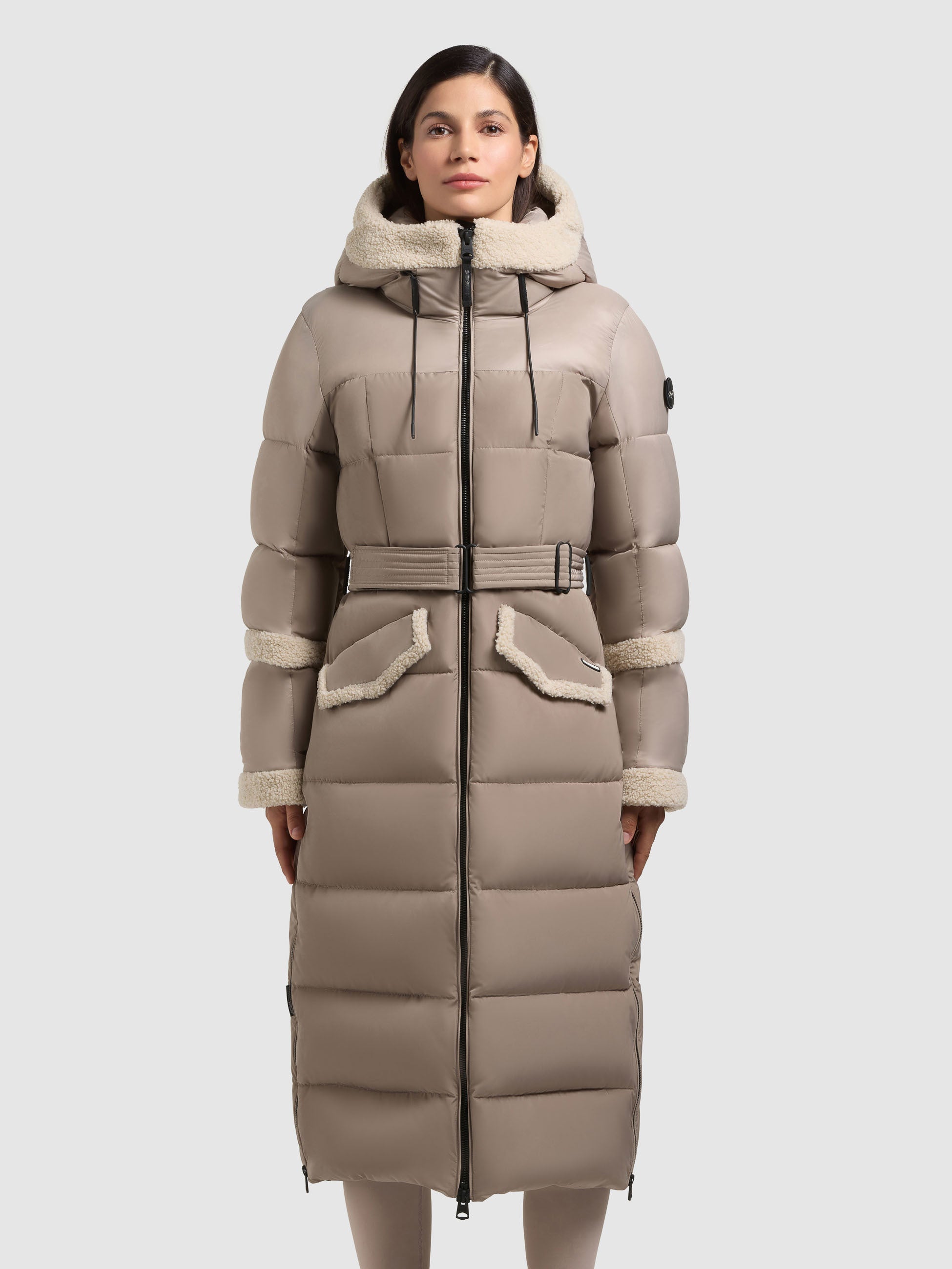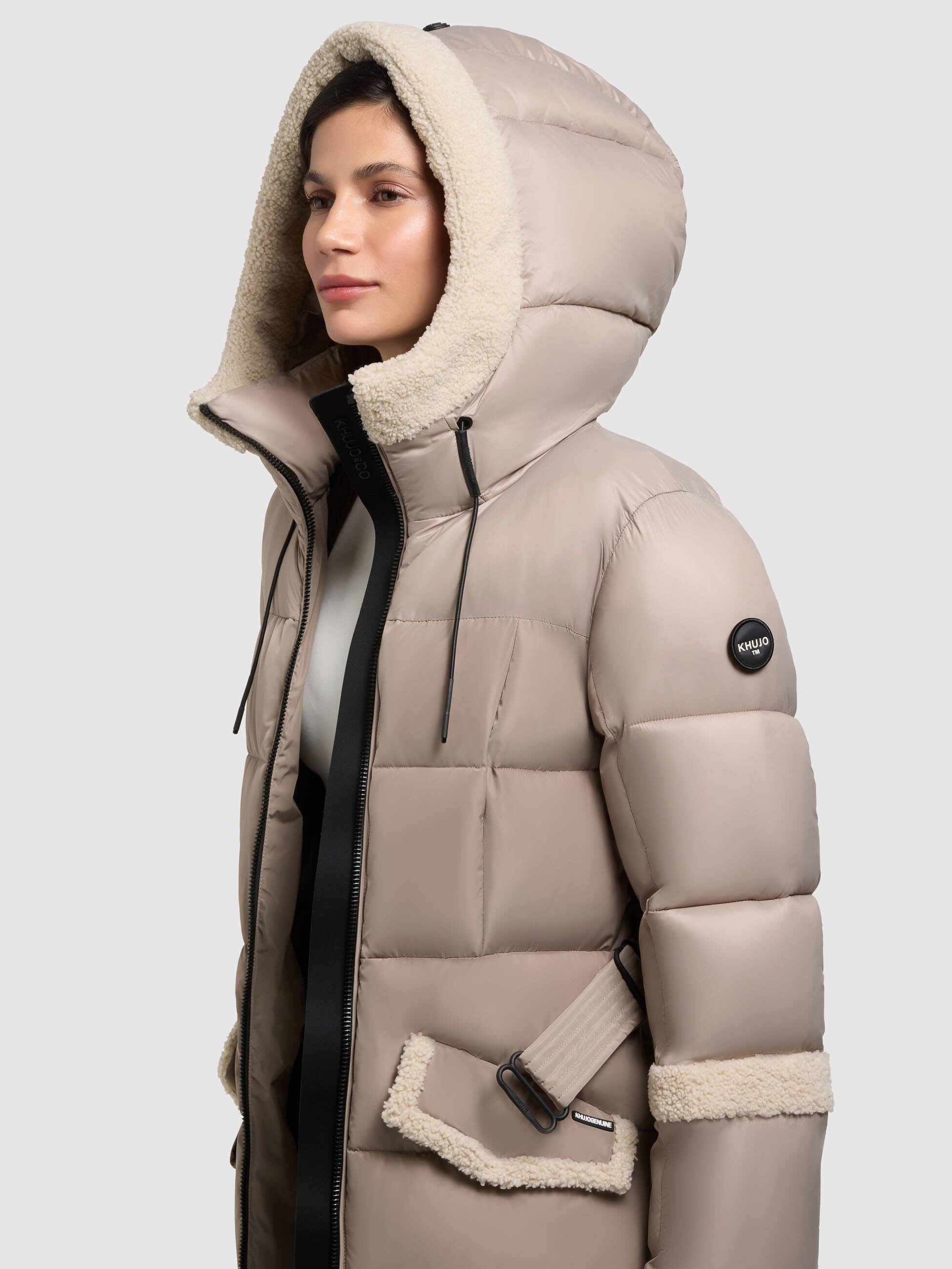 With the khujo JULITA2 coat in a mixed-material design, you'll make a fashionable statement that's sure to turn heads. This calf-length quilted coat in a regular fit features soft teddy fleece trim on the high-closing hood, sleeves, and shoulder yoke. A detachable fabric belt, a two-way zipper, side slits, and removable backpack straps ensure plenty of freedom of movement. Fleece-lined flap pockets and an inner pocket provide ample storage space.