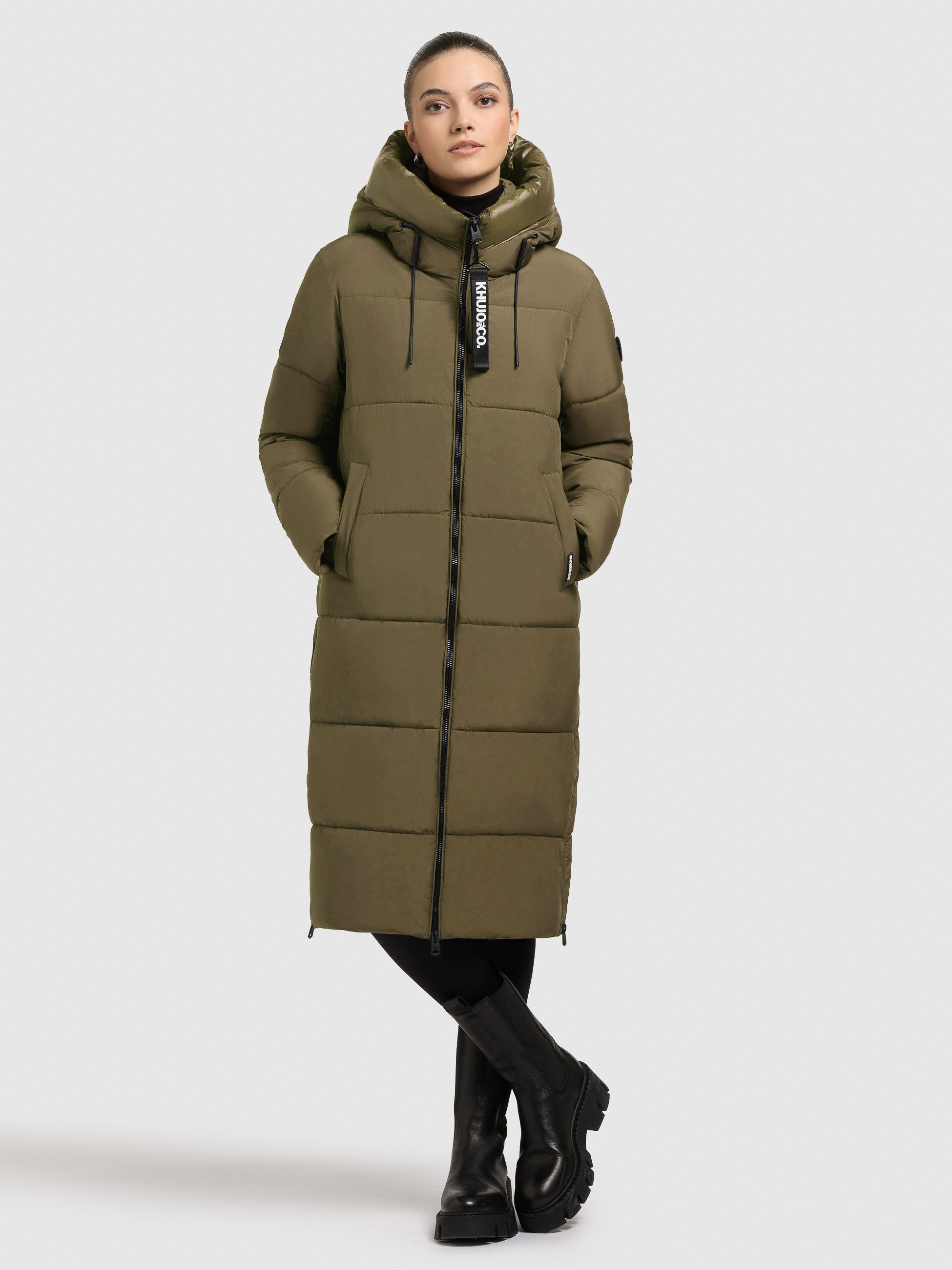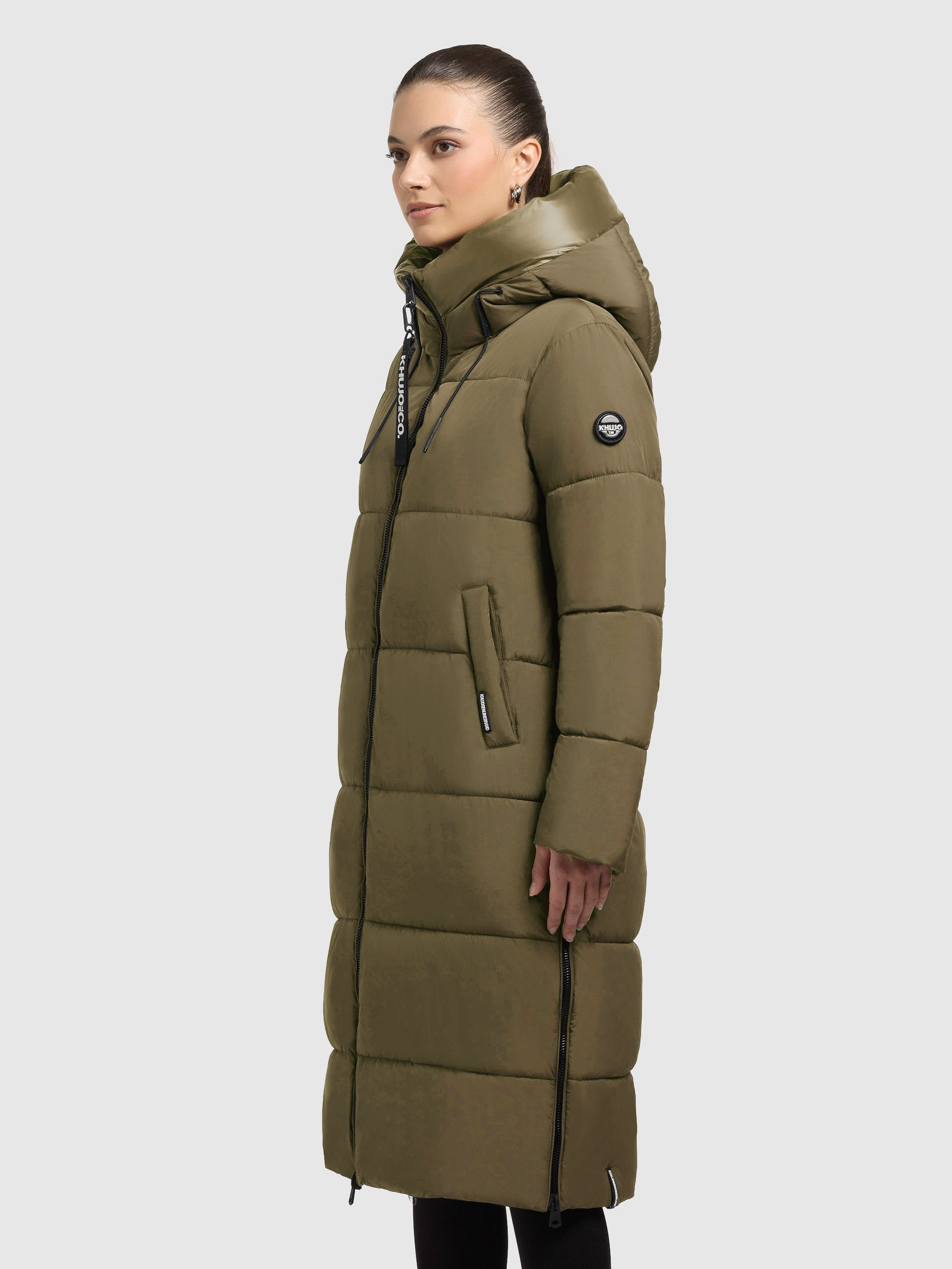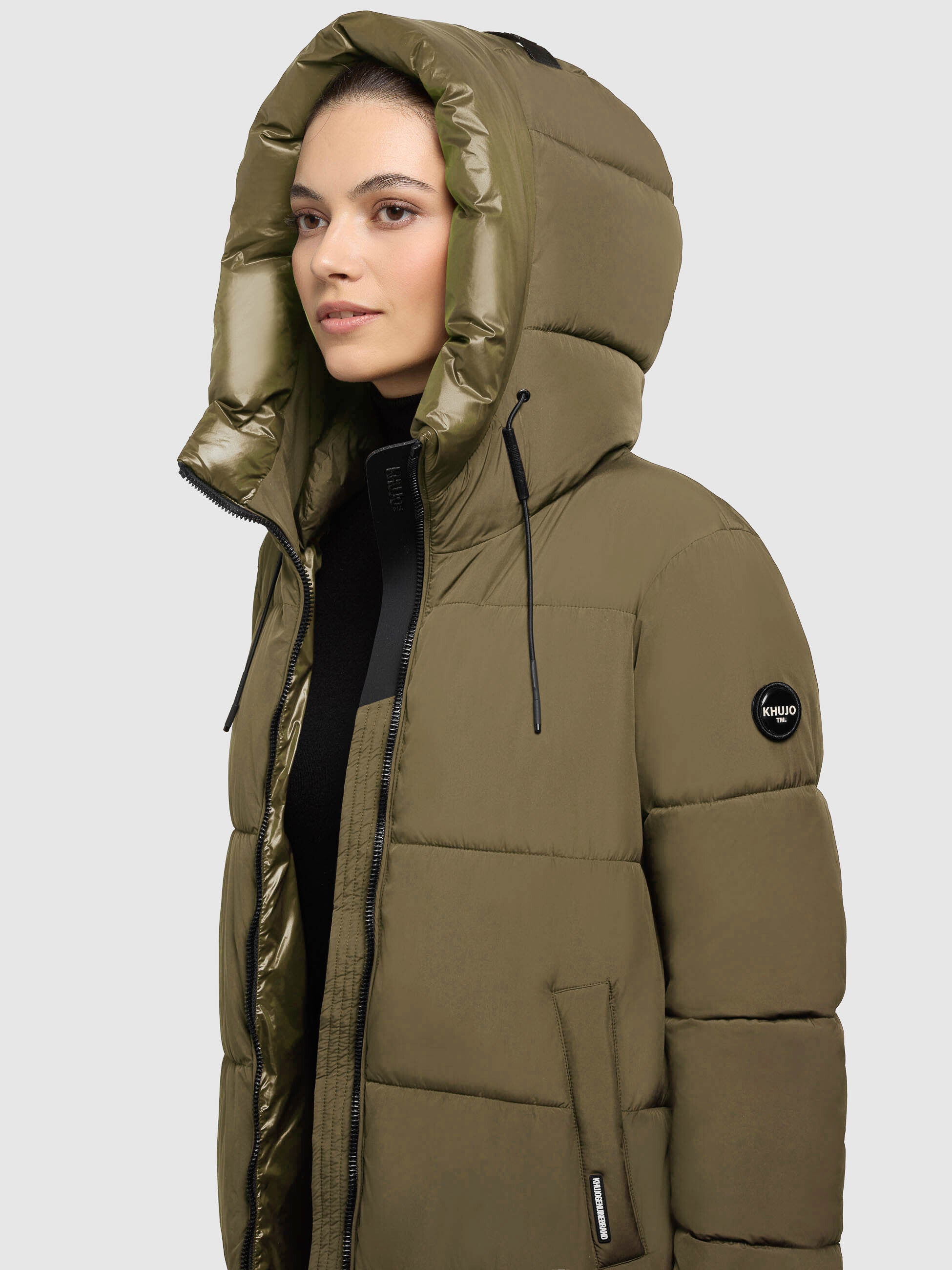 The warmly padded khujo NALU coat impresses with its clean design. This knee-length quilted coat features side zip slits for added comfort. Elasticated cuffs on the sleeve lining and a high-closing hood with a stand-up collar and drawstring provide optimal protection against frosty winter weather. Side pockets with magnetic closures and an inner zip pocket offer ample storage for your essentials.