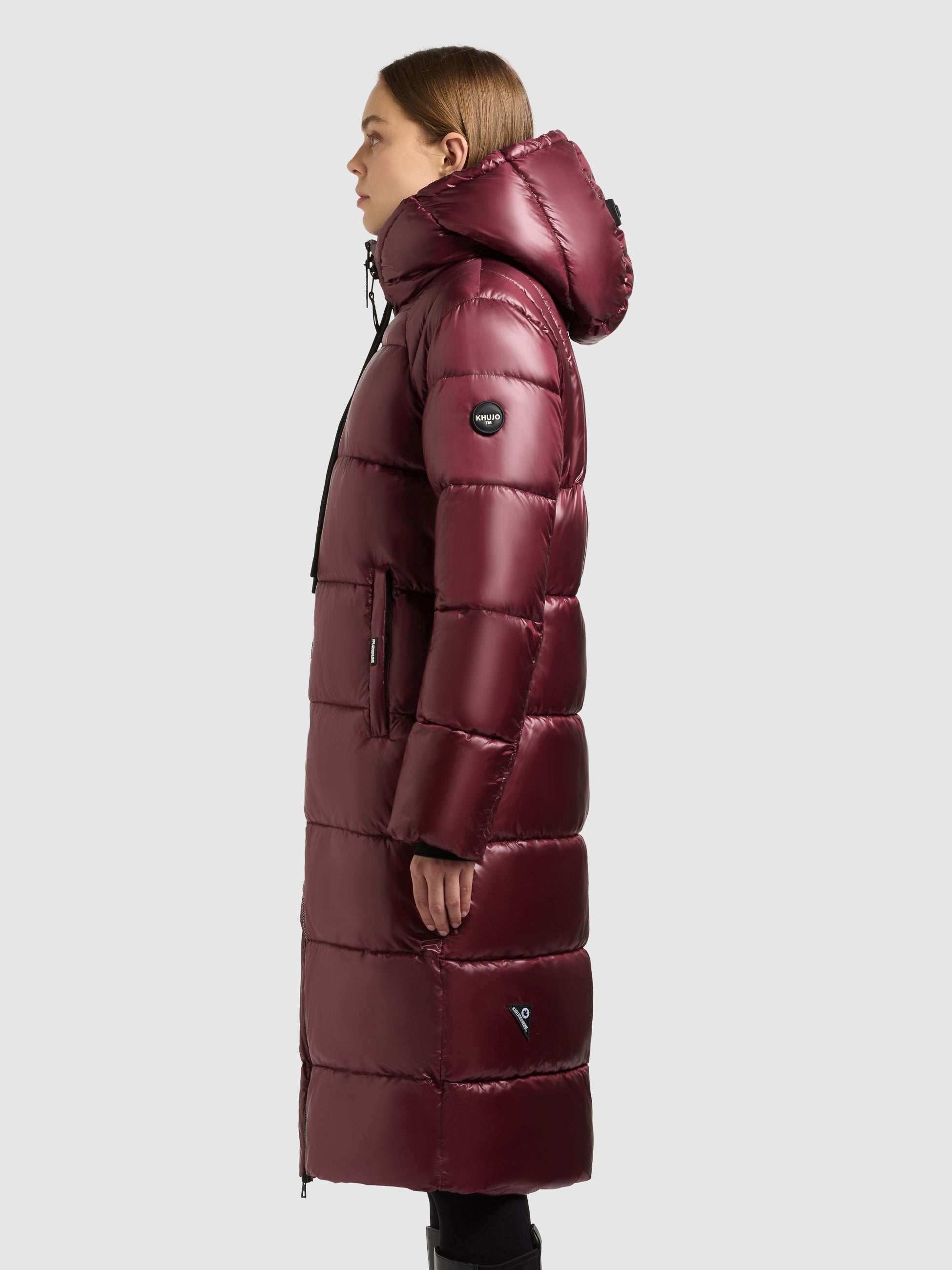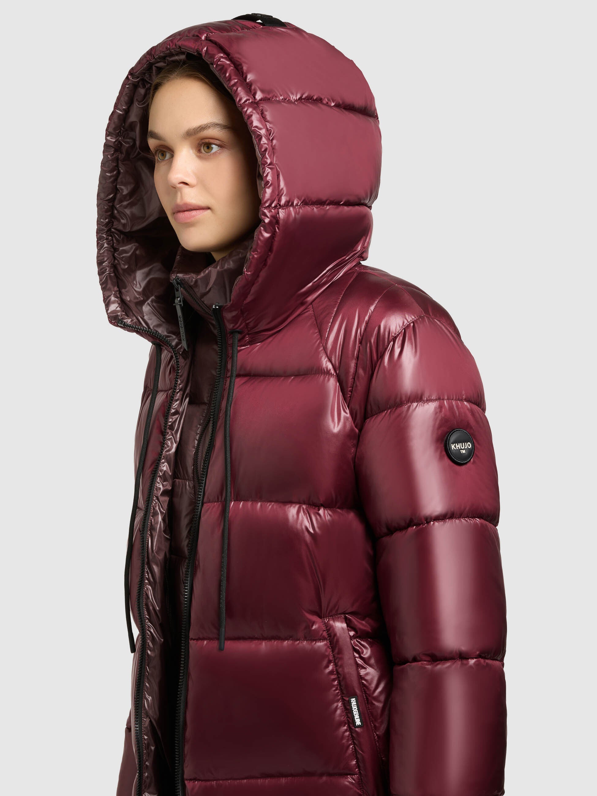 Warm padding and a removable quilted insert with a stand-up collar ensure maximum comfort in the knee-length khujo coat NASHI. The slightly shimmering, slim-fit quilted coat offers cozy warmth on cold winter days thanks to its high-closing hood with drawstring and elasticated cuffs on the sleeve lining. A two-way zipper, fleece-lined zippered pockets, and a closable inner pocket complete this stylish winter coat.