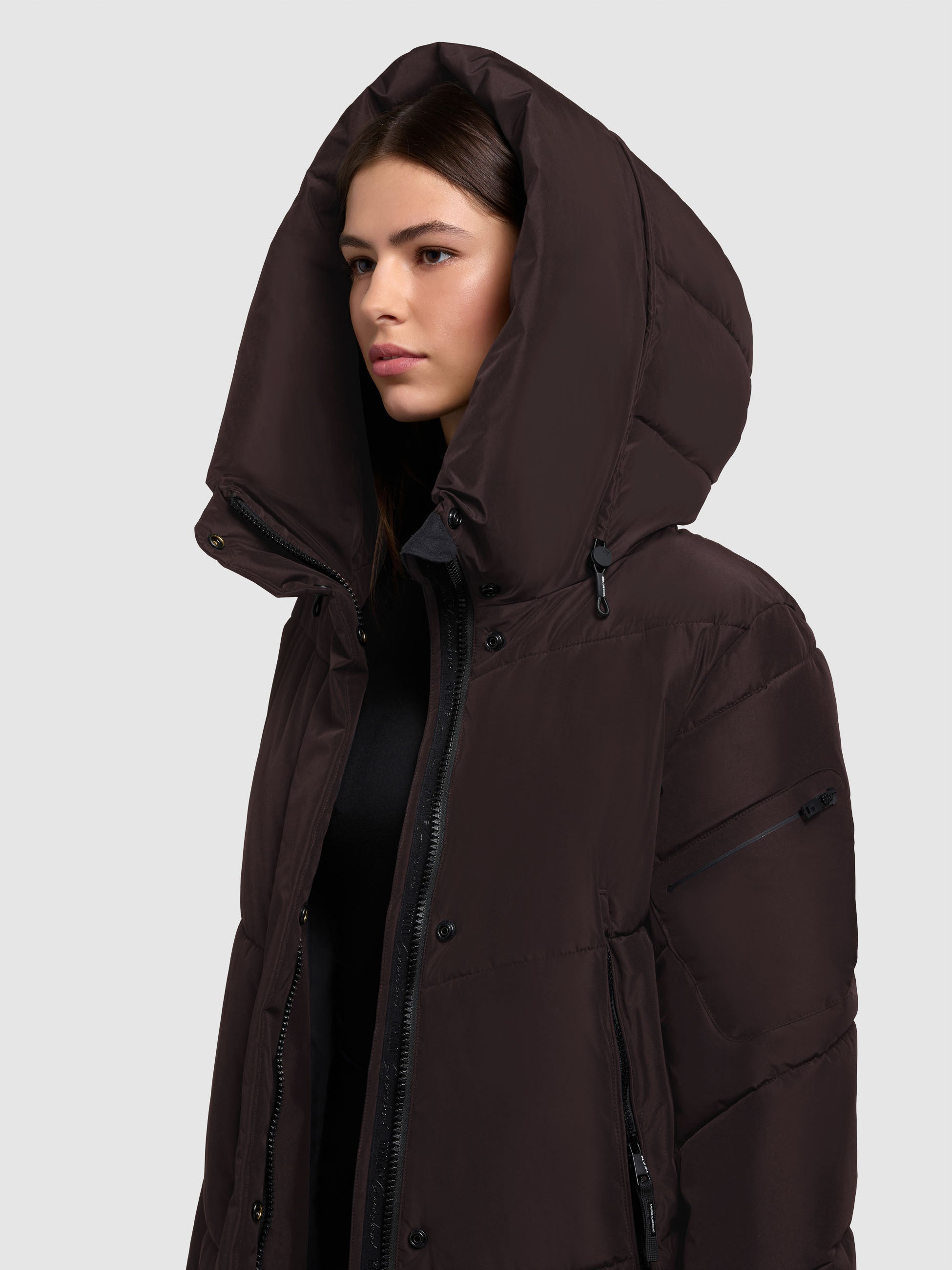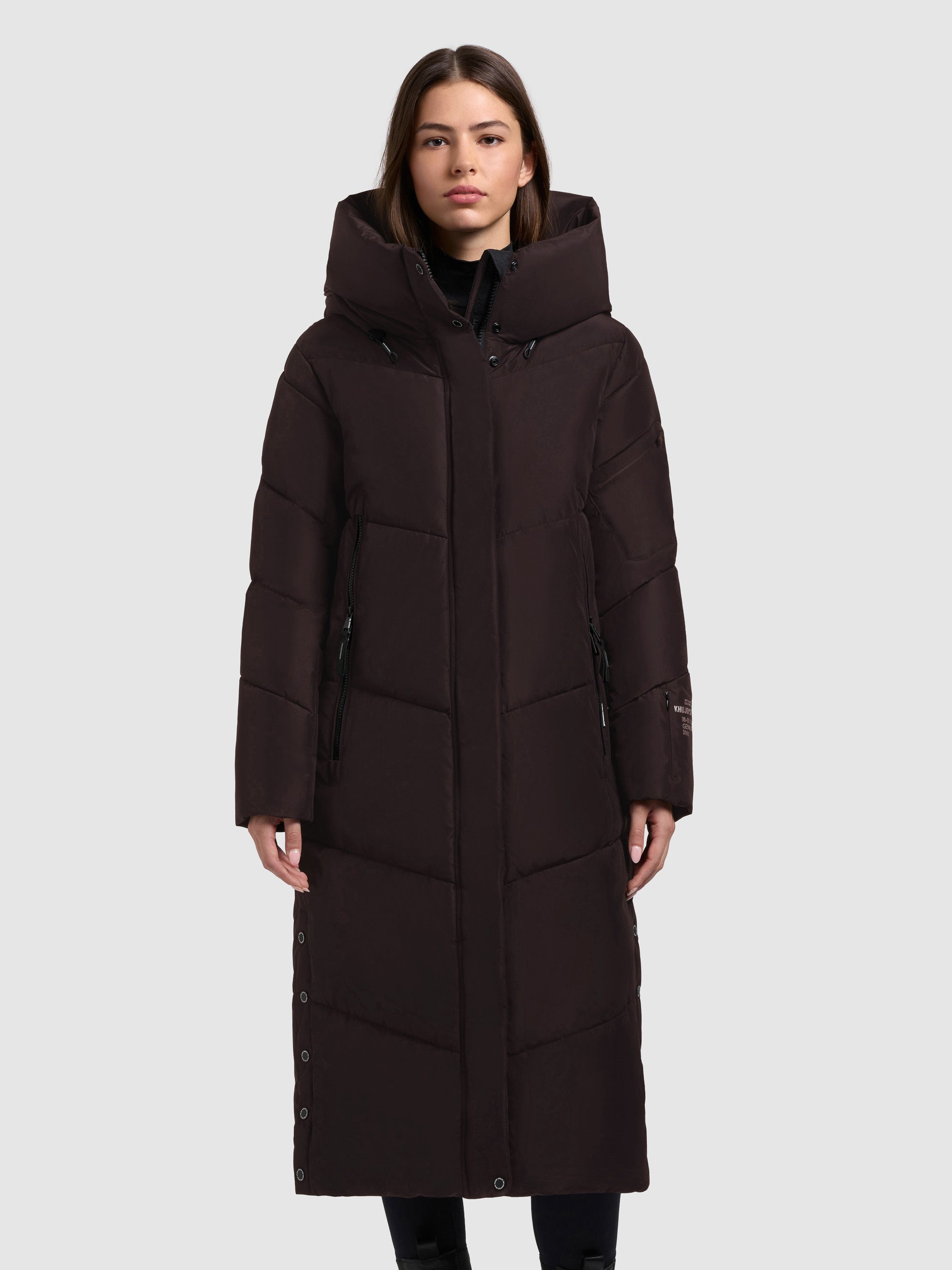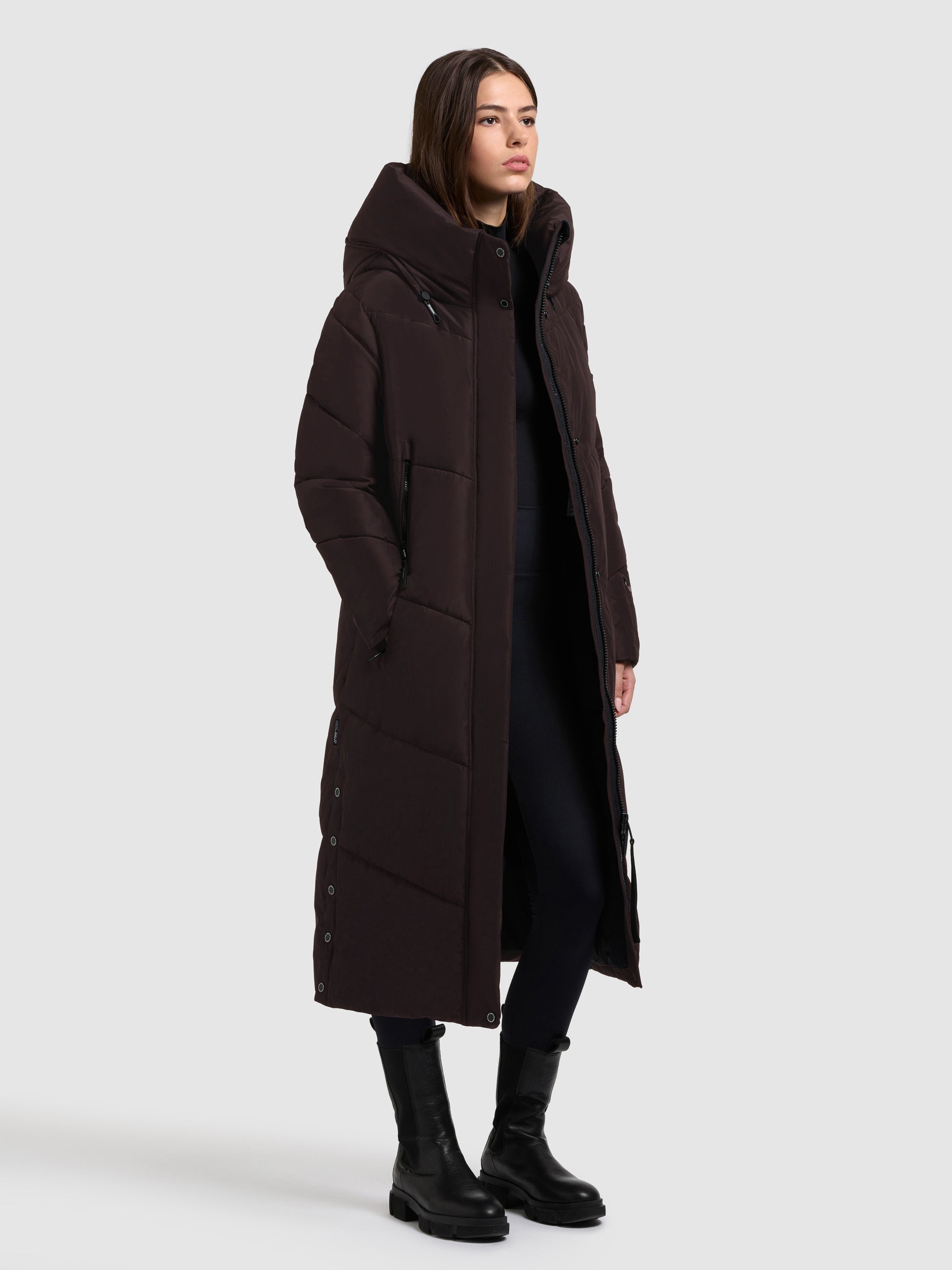 LIKE A WARM HUG: That's the motto of khujo Coat PULSET MATT. Thanks to an adjustable, high-closing hood, elasticated cuffs on the sleeve lining, and side slits at the hem, this warmly padded quilted coat offers reliable protection against cold winter weather. The windproof placket with snap fasteners, the chin guard on the two-way zipper, and the large, fleece-lined zippered pockets further demonstrate the attention to detail in this knee-length winter coat.