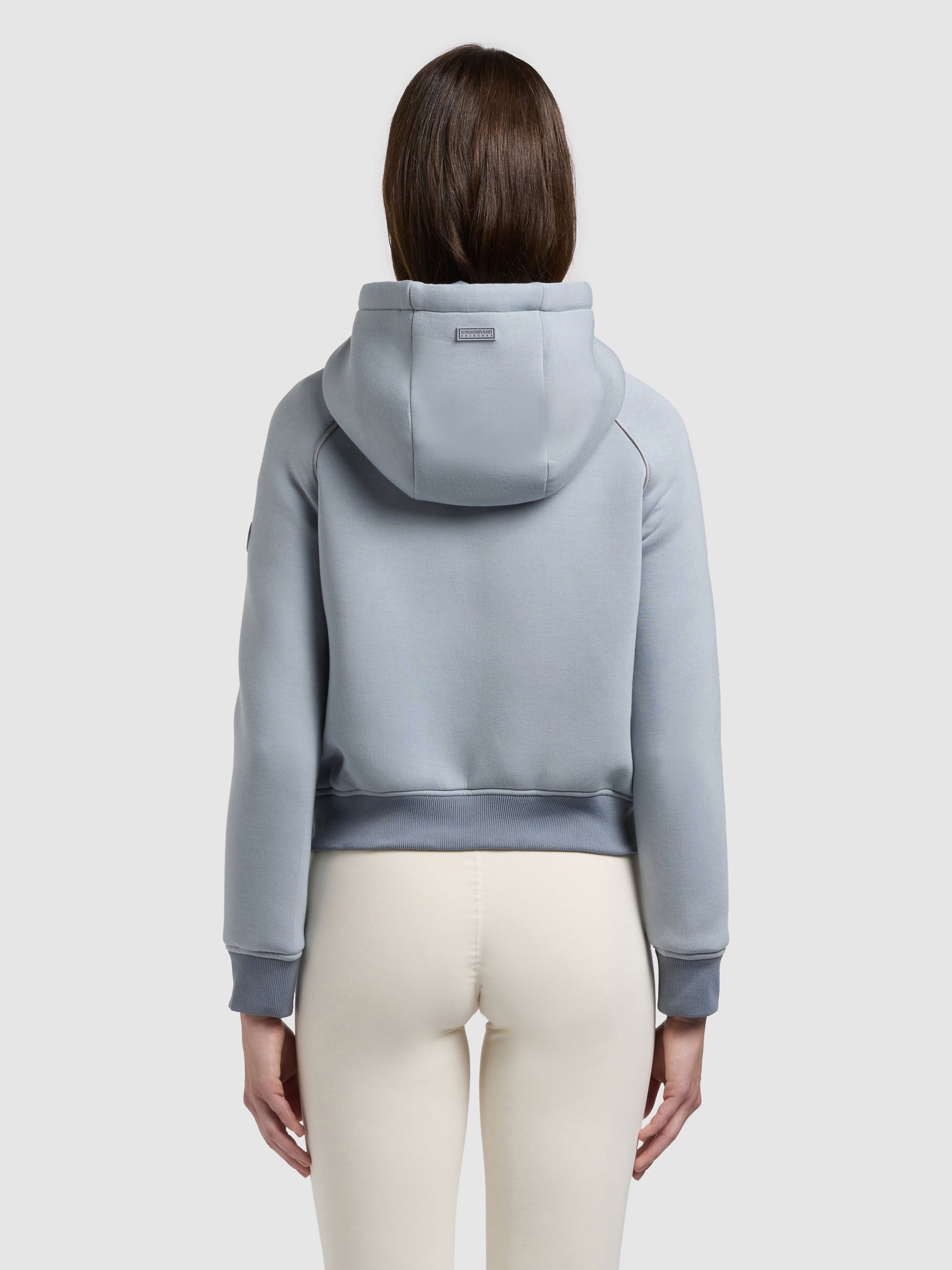 • hoch schließende Kapuze mit Kordelzug