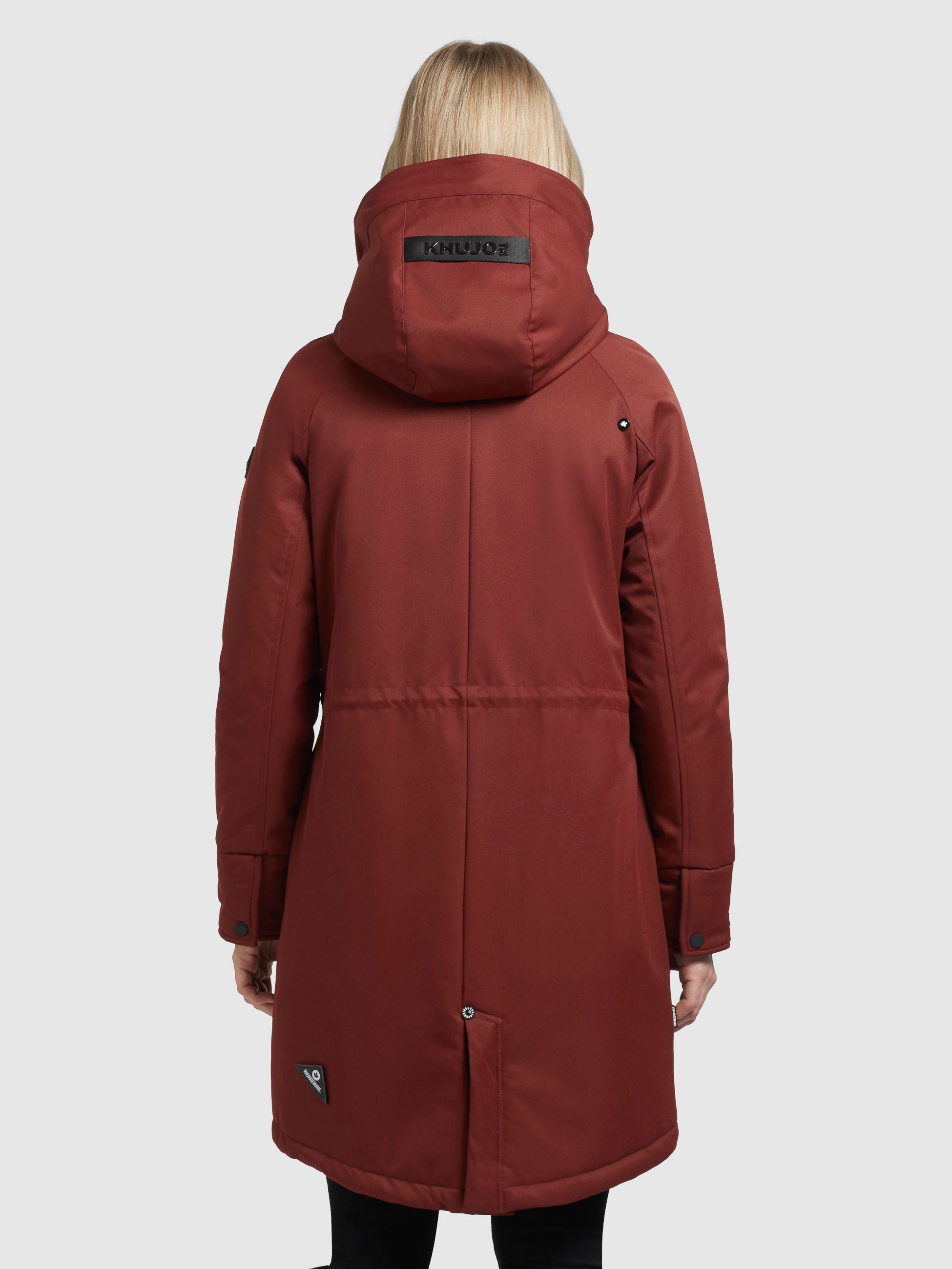 With its clean design and high-closing hood, the khujo The LARIA coat comes in a regular fit. Besides an internal drawstring at the waist, this warmly padded parka offers much more than just good looks, boasting numerous features such as an extended back with a walking vent and snap buttons, a combination of a two-way zipper and magnetic button placket, ventilation eyelets under the arms, elasticated cuffs on the sleeve lining, and an additional two-button cuff.