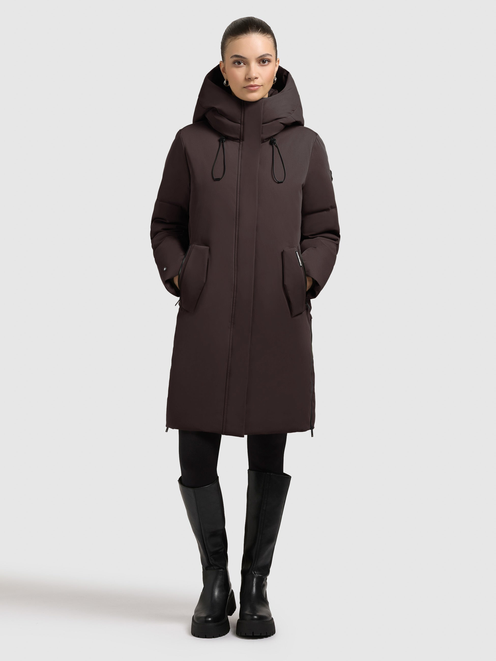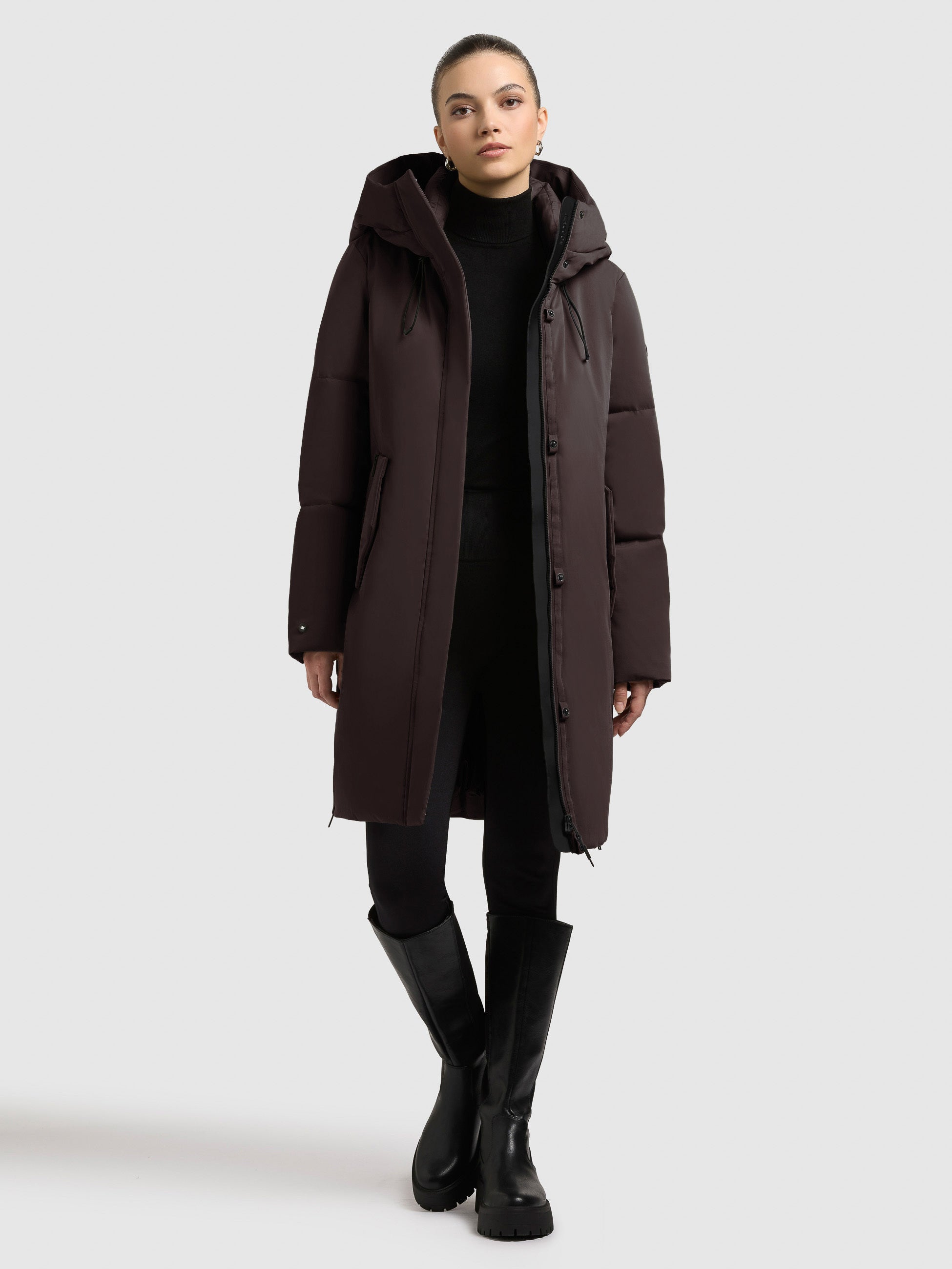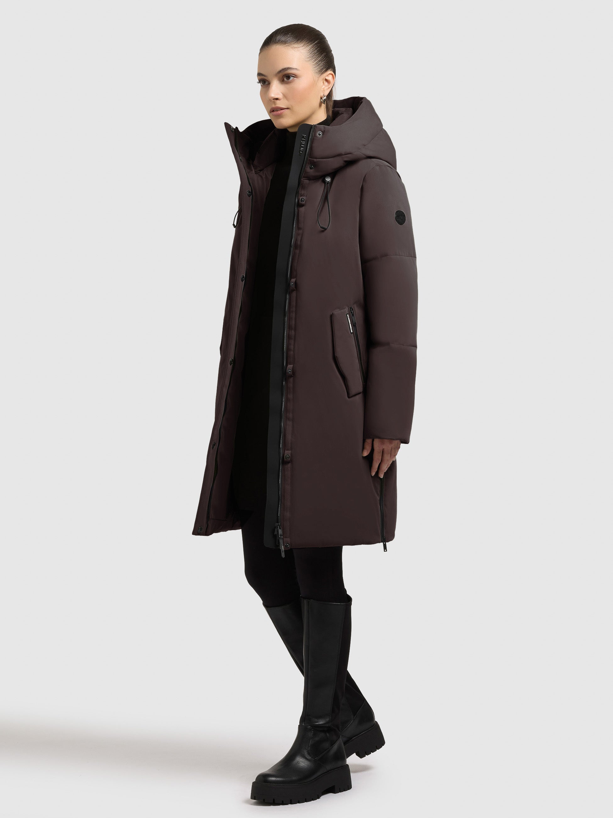 • hoch schließende Kapuze mit Kordelzug