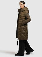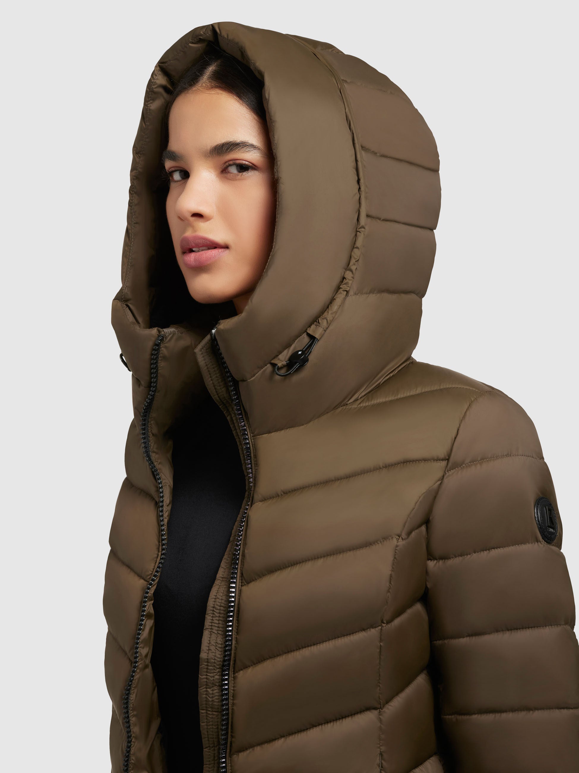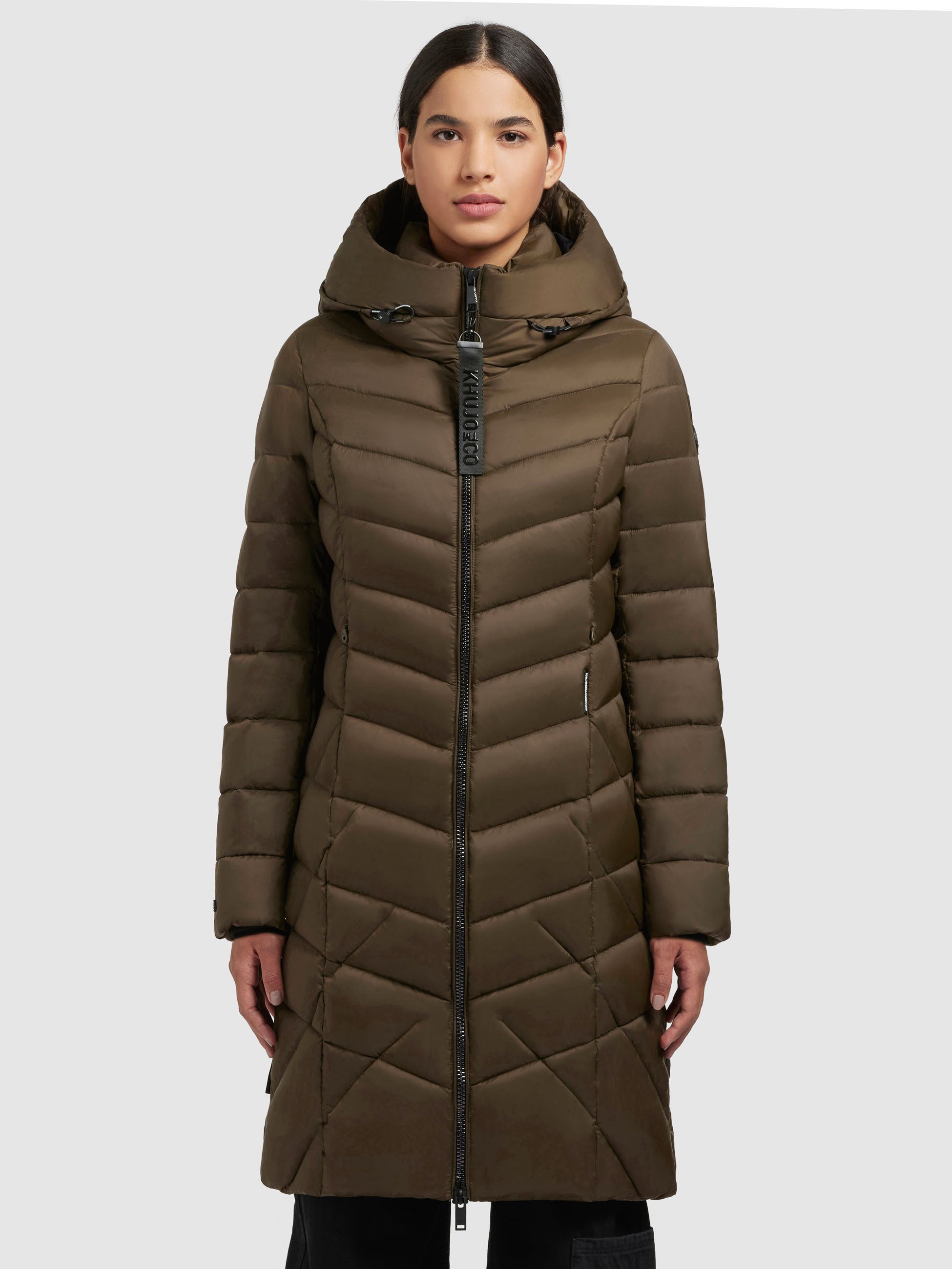 The knee-length cut and the Quilted pattern make the warmly padded khujo Coat ODANA3 for absolute Eye-catching. A lined and high-closing hood, a padded stand-up collar, elasticated cuffs on the sleeve lining, and fleece-lined pocket bags demonstrate once again the passion for detail in this quilted coat. khujo. Small items can be safely stored in the zippered seam pockets and two closable inner pockets of this winter jacket.