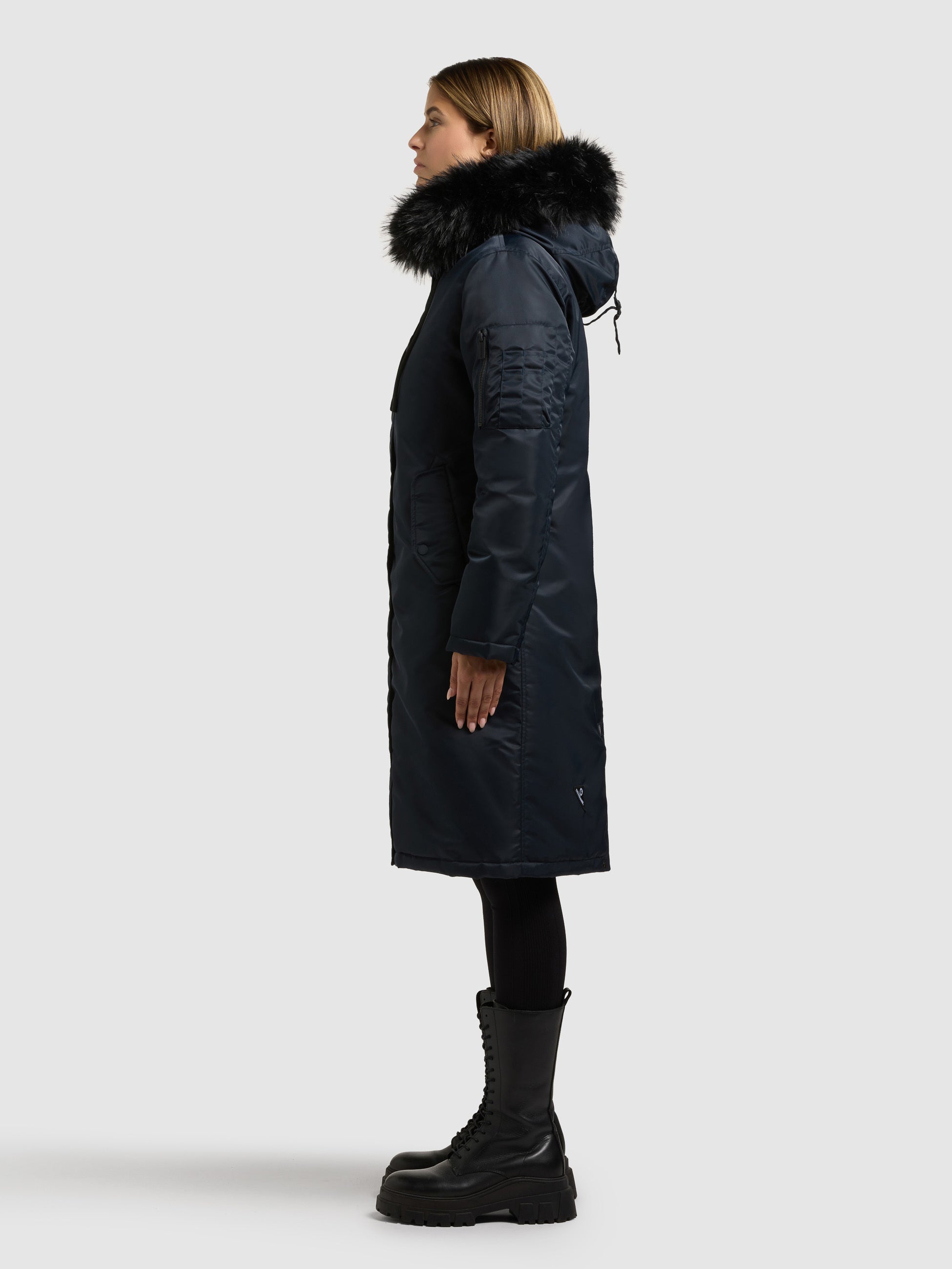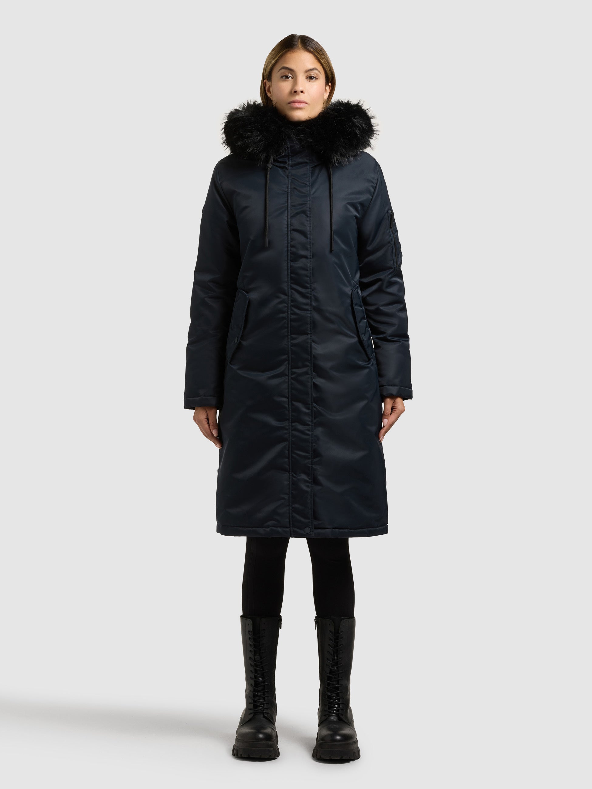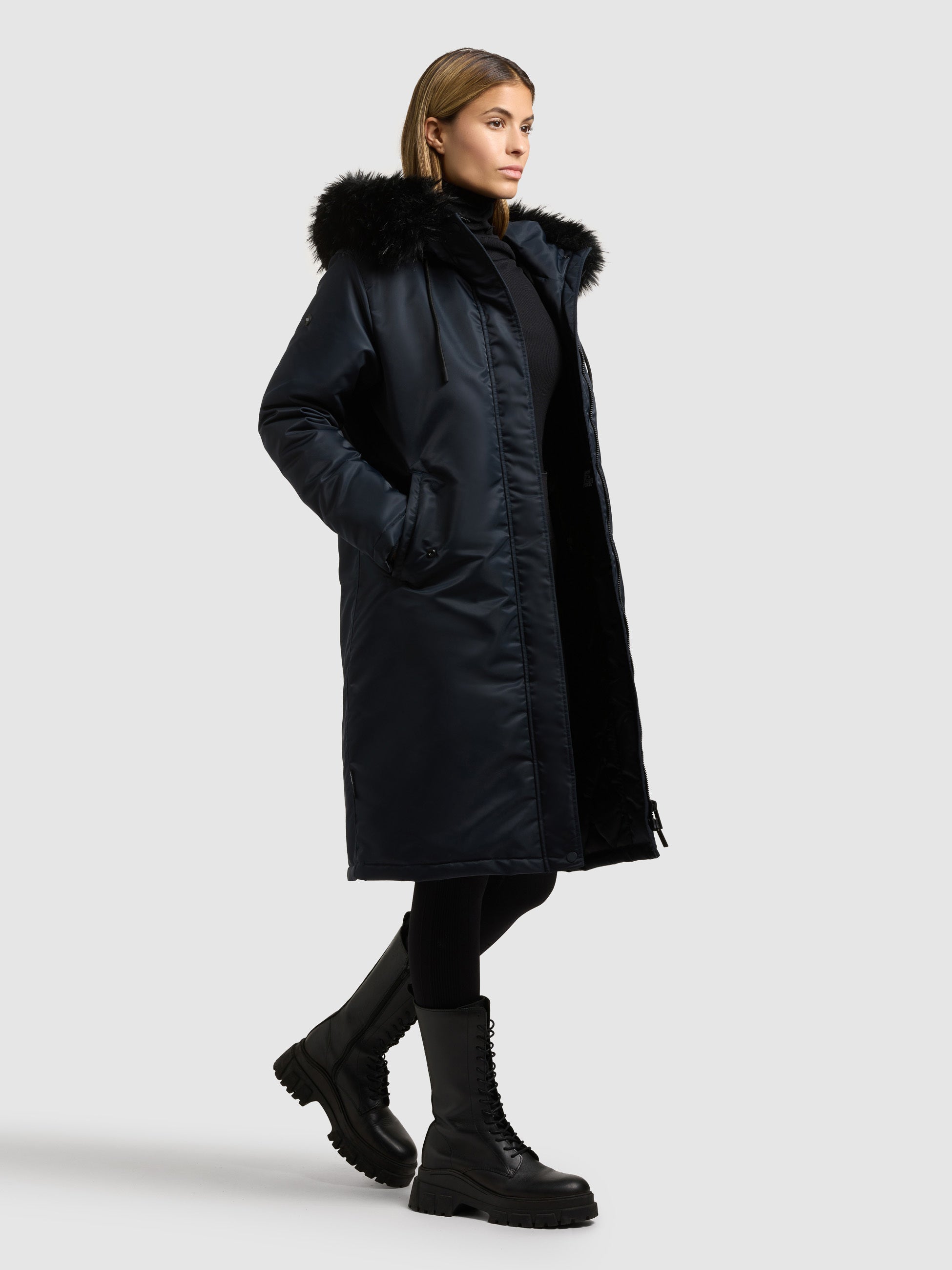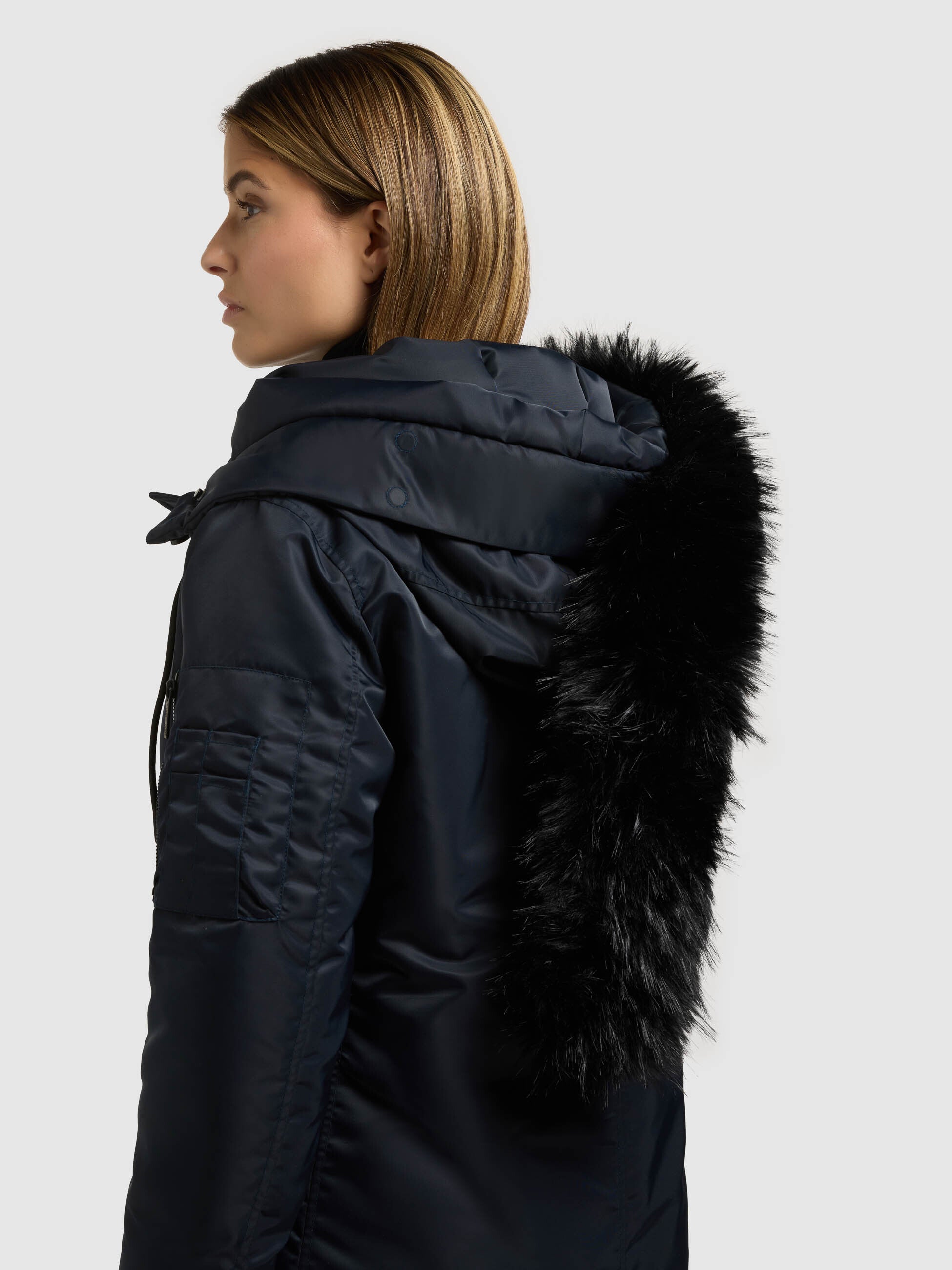 - Capucha con piel sintética desmontable