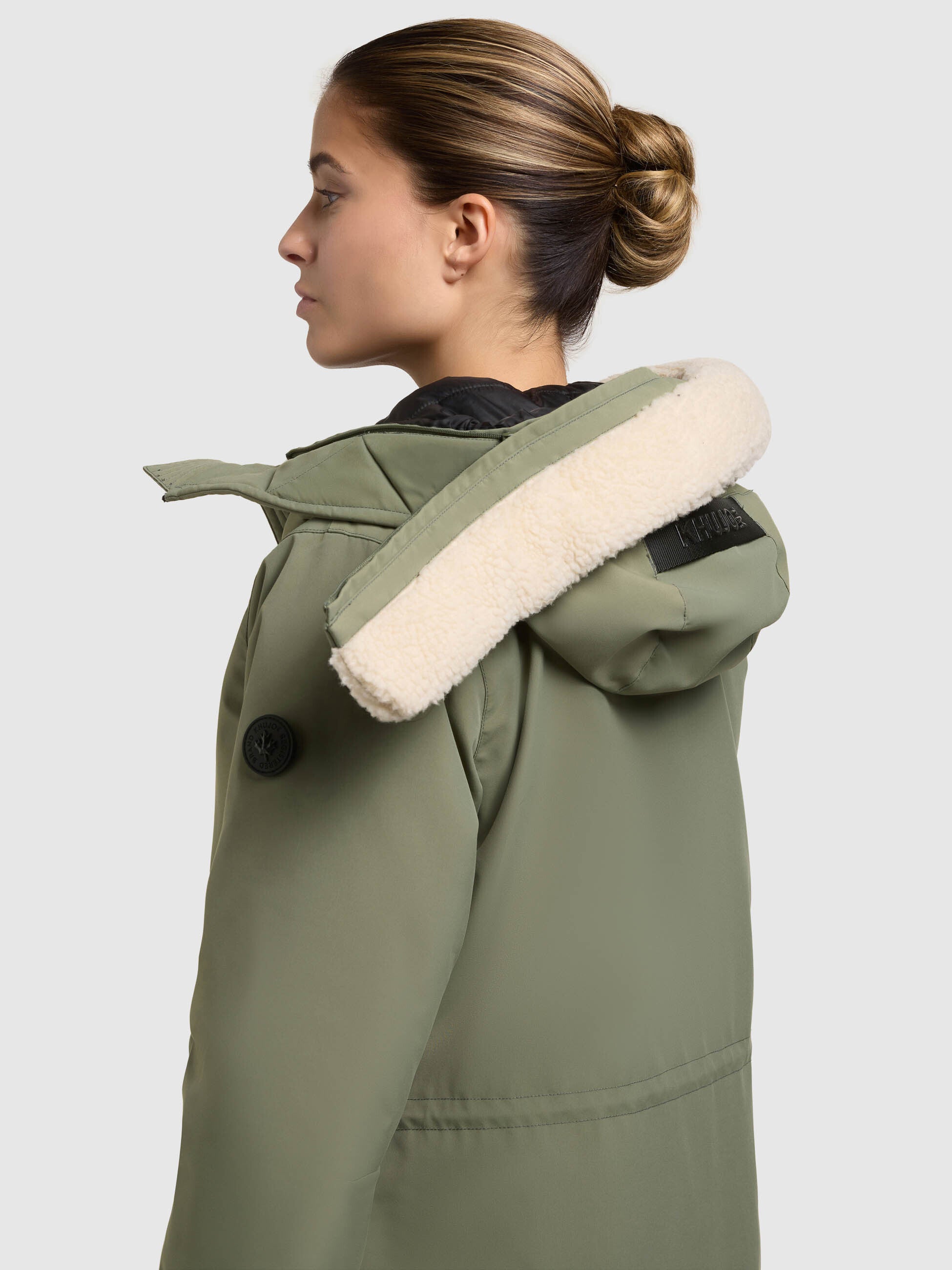 - Elastische trekkoorden aan capuchon, taille en zoom