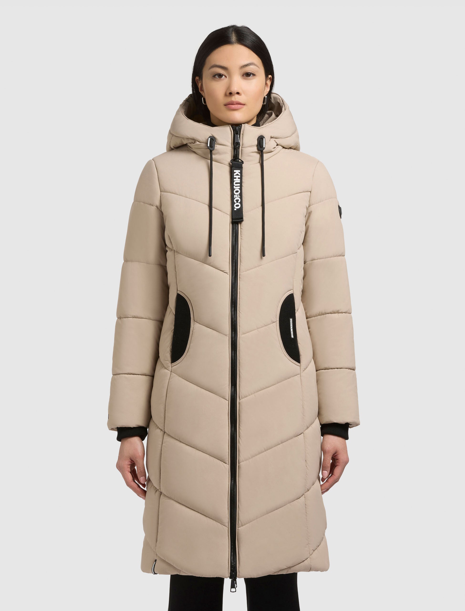 De zachte buitenstof en elastische ribgebreide inzetstukken geven de Khujo ARIBAY6 jas zijn onderscheidende karakter. De geribbelde binnenkraag, geribbelde inzetstukken op de handwarmerzakken en elastische geribbelde manchetten op de mouwvoering voegen kleurrijke accenten toe aan deze gewatteerde jas, terwijl de prinsessennaden je vrouwelijke silhouet flatteren. Dankzij de tweewegrits en een ritssplit aan de achterkant van de zoom is maximale bewegingsvrijheid gegarandeerd.
