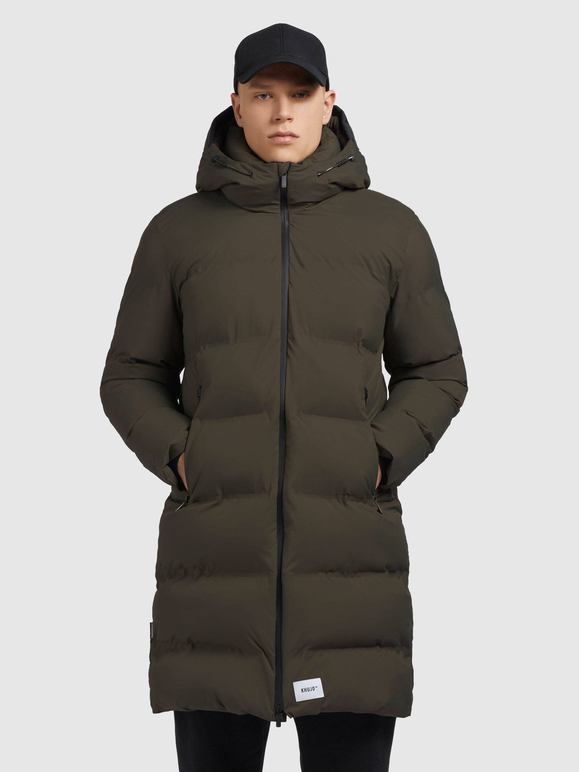 Der warm wattierte und knielang geschnittene khujo Mantel CAIUS schützt zuverlässig vor frostigem Winterwetter. Die hoch schließende Kapuze mit Kordelzug, elastische Bündchen am Ärmelfutter und Taschenbeutel aus Fleece bezeugen bei diesem Steppmantel einmal mehr die Liebe zum Detail von khujo. Die Reißverschlusstaschen sowie der Zwei-Wege-Reißverschluss mit Kinnschutz haben eine wasserabweisende Beschichtung und je eine verschließbare Innen- und Ärmeltasche sorgen für extra Stauraum.