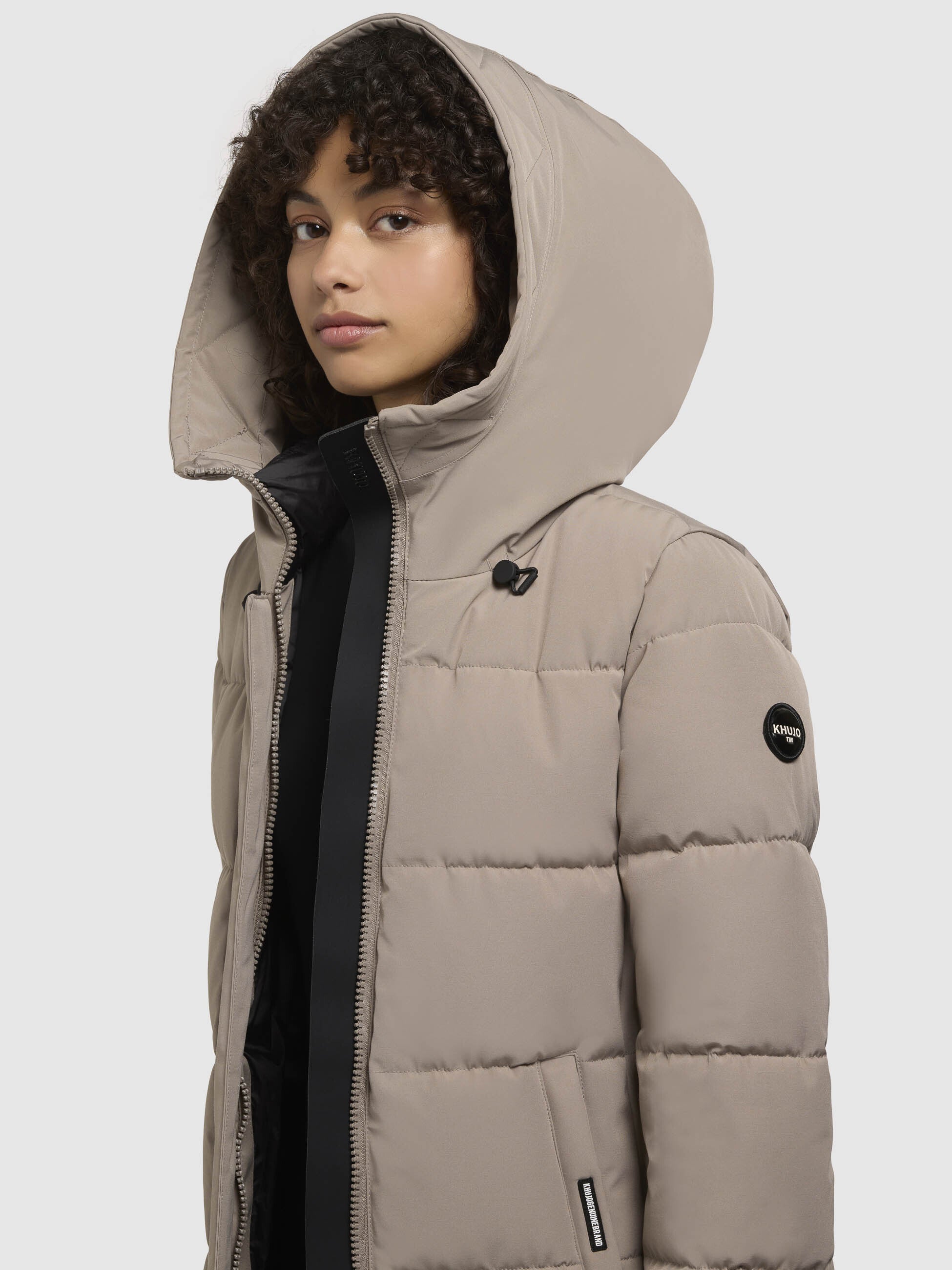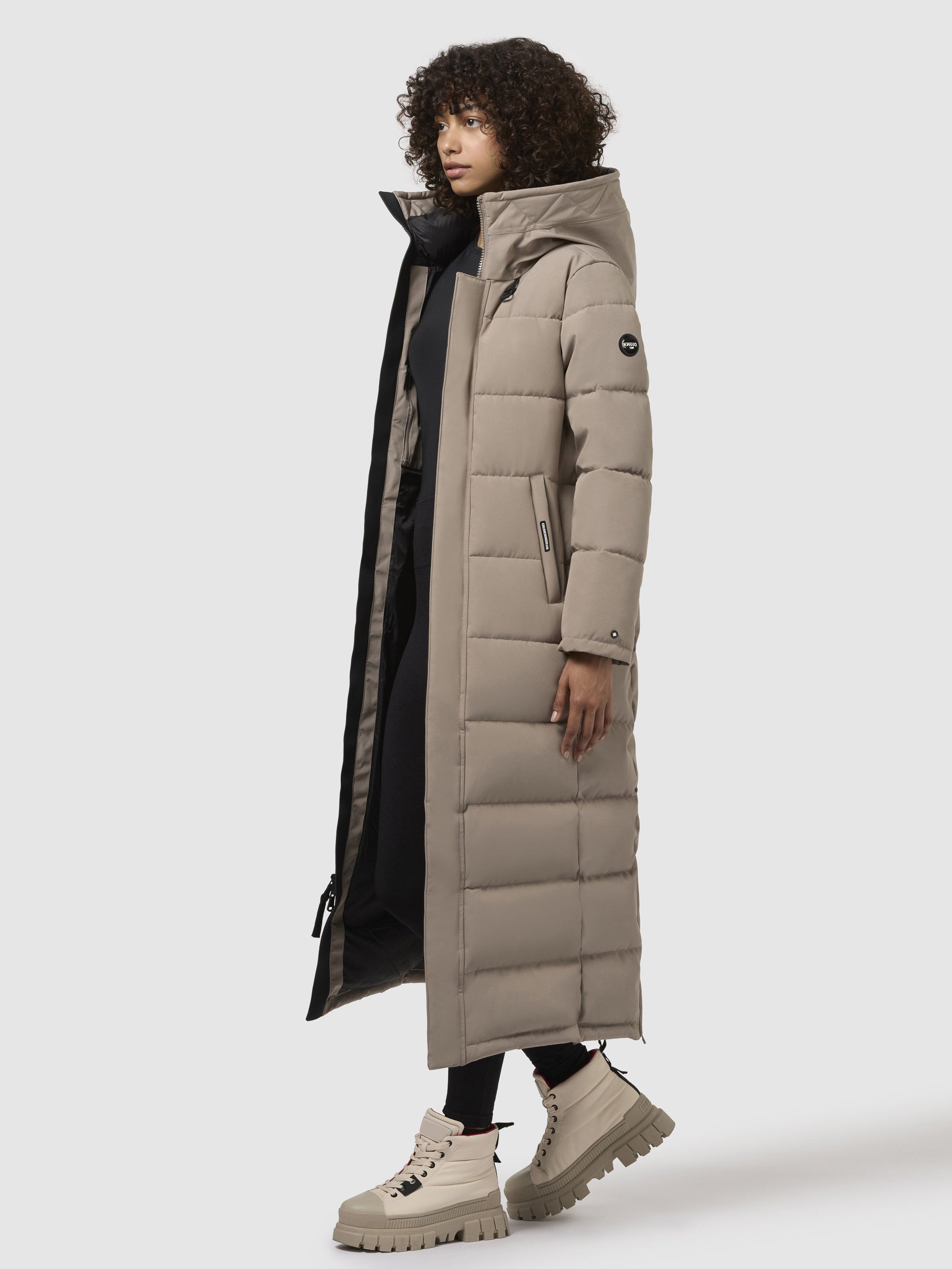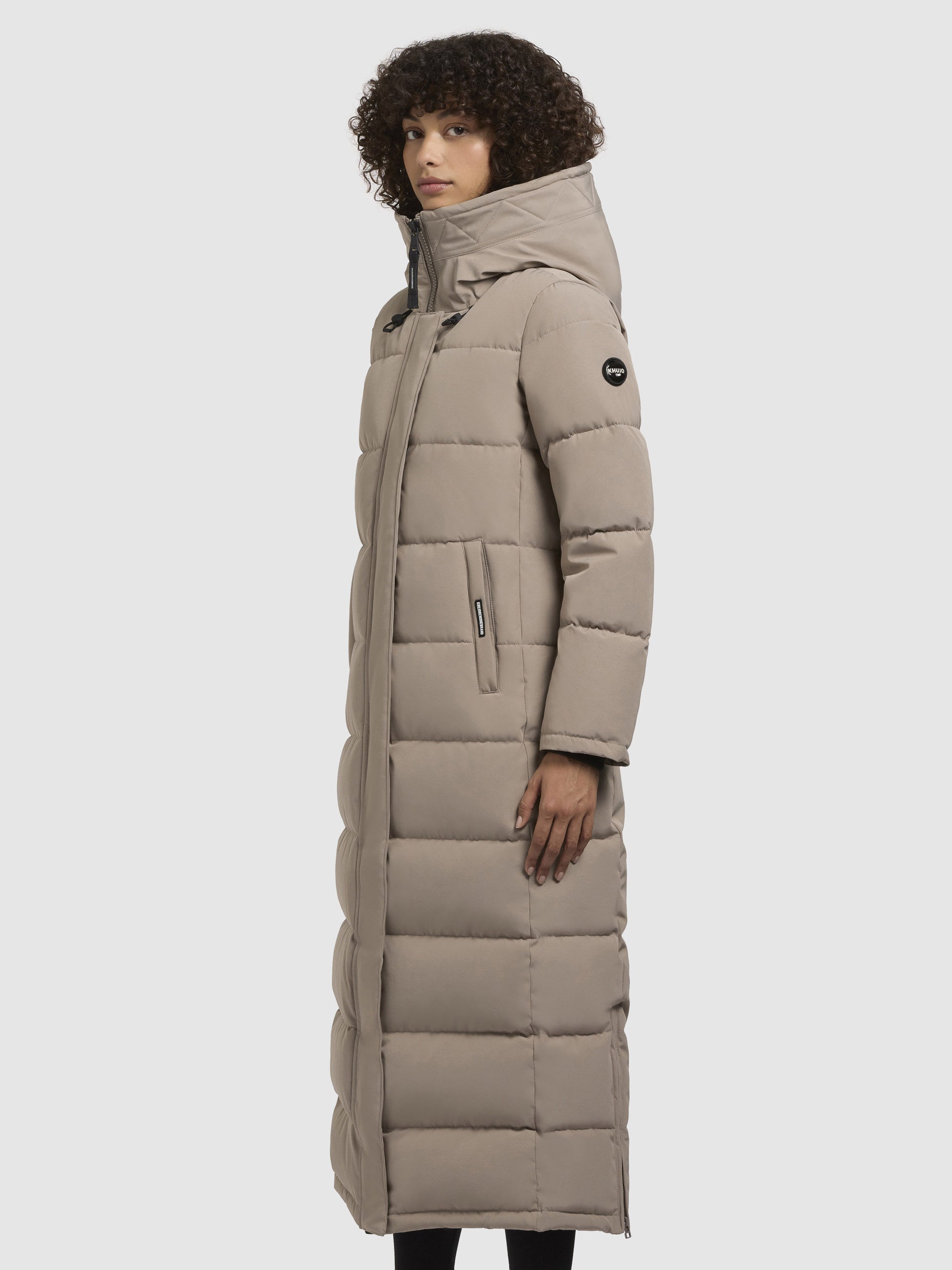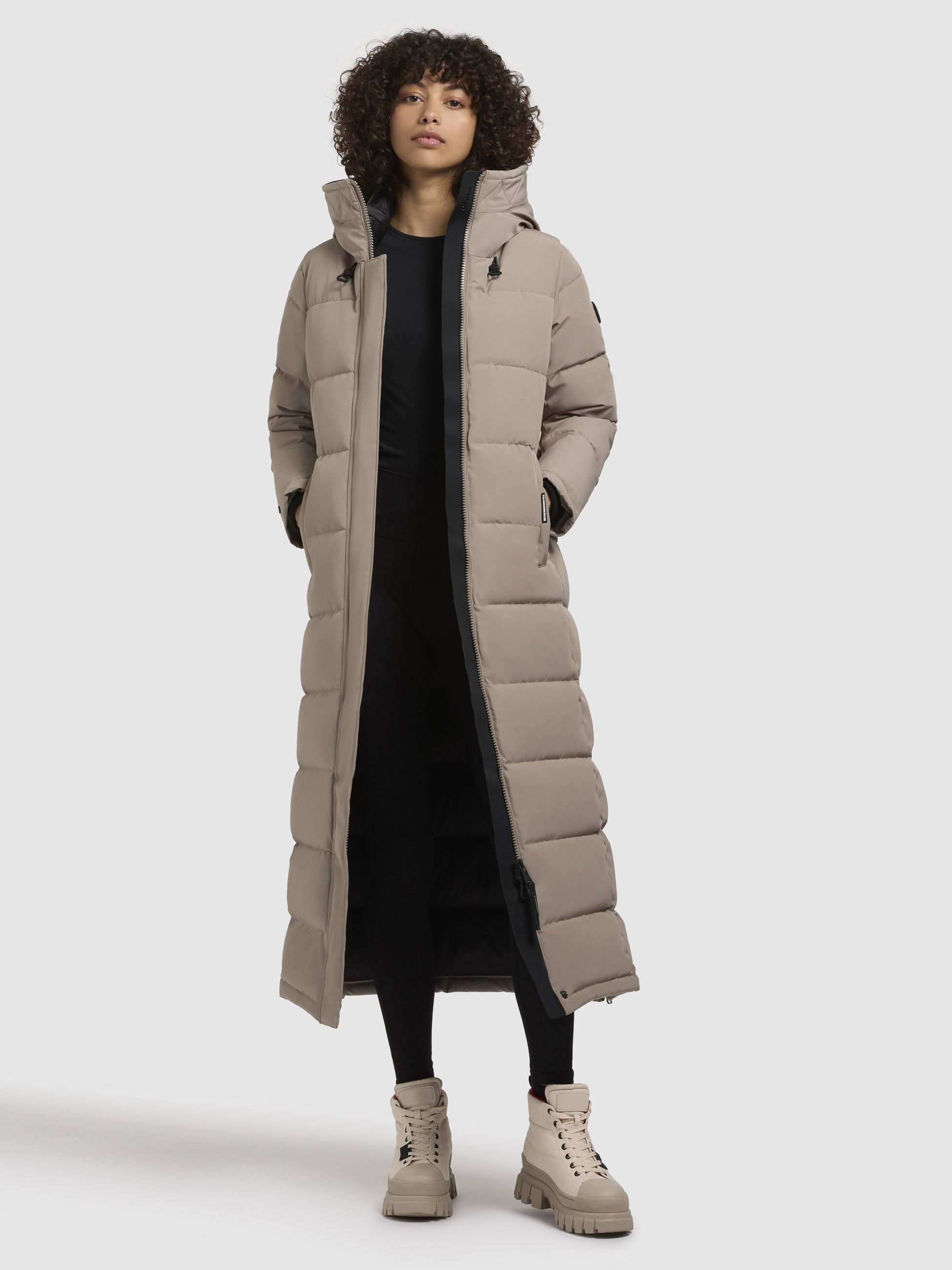 Der warm wattierte und wadenlang geschnittene khujo Mantel CLARESSE schützt zuverlässig vor frostigen Temperaturen und hält Dich dank einer hoch schließenden Kapuze mit elastischem Kordelzug und innenliegendem Stehkragen, sowie den Rippbündchen am Ärmelfutter schön warm. Abnehmbare Rucksackträger, Seitenschlitze mit Reißverschluss, ein Zwei-Wege-Reißverschluss mit Magnetknopfleiste und Taschenbeutel aus Fleece bezeugen bei diesem Steppmantel einmal mehr die Leidenschaft für Details von khujo.