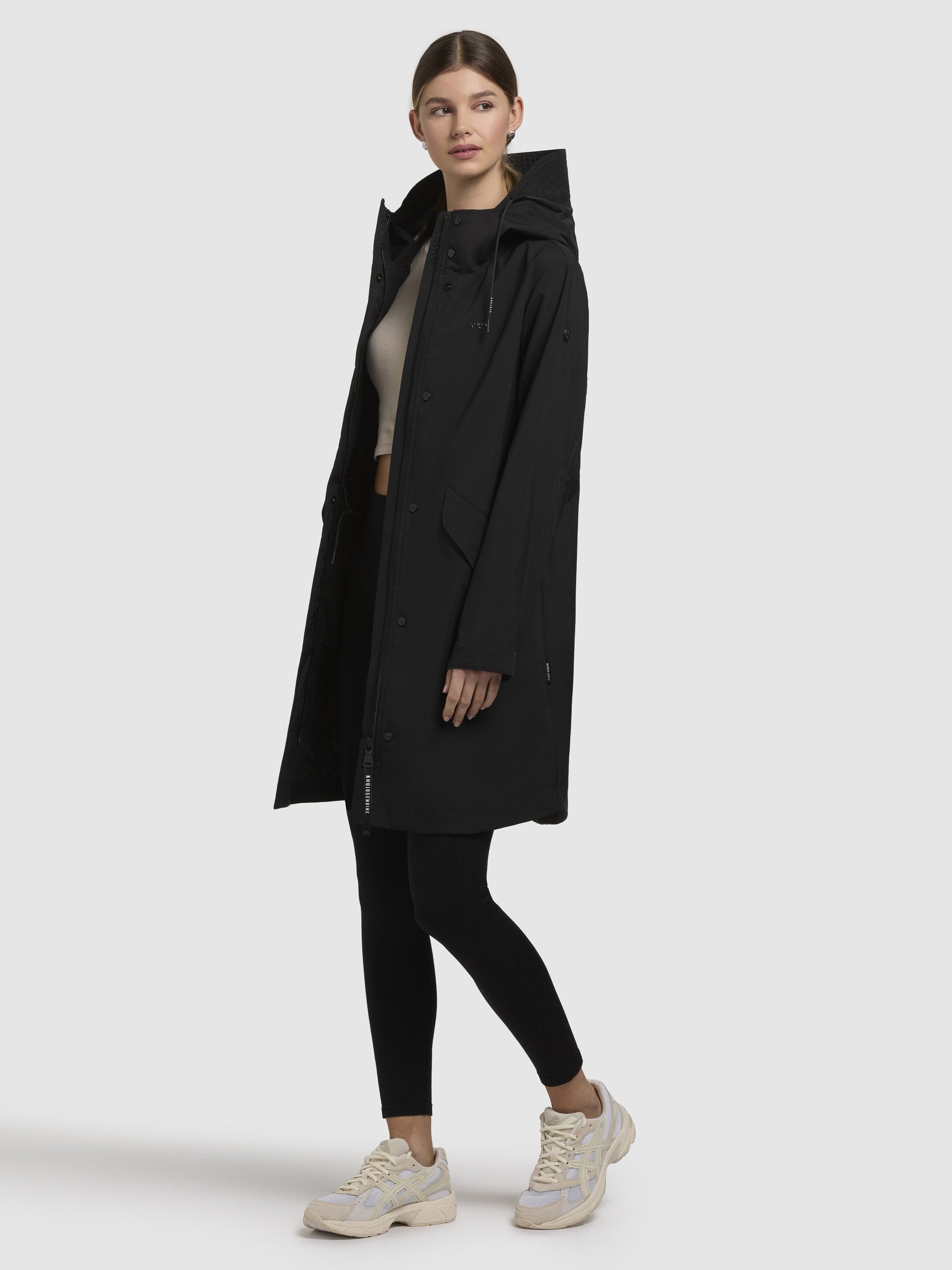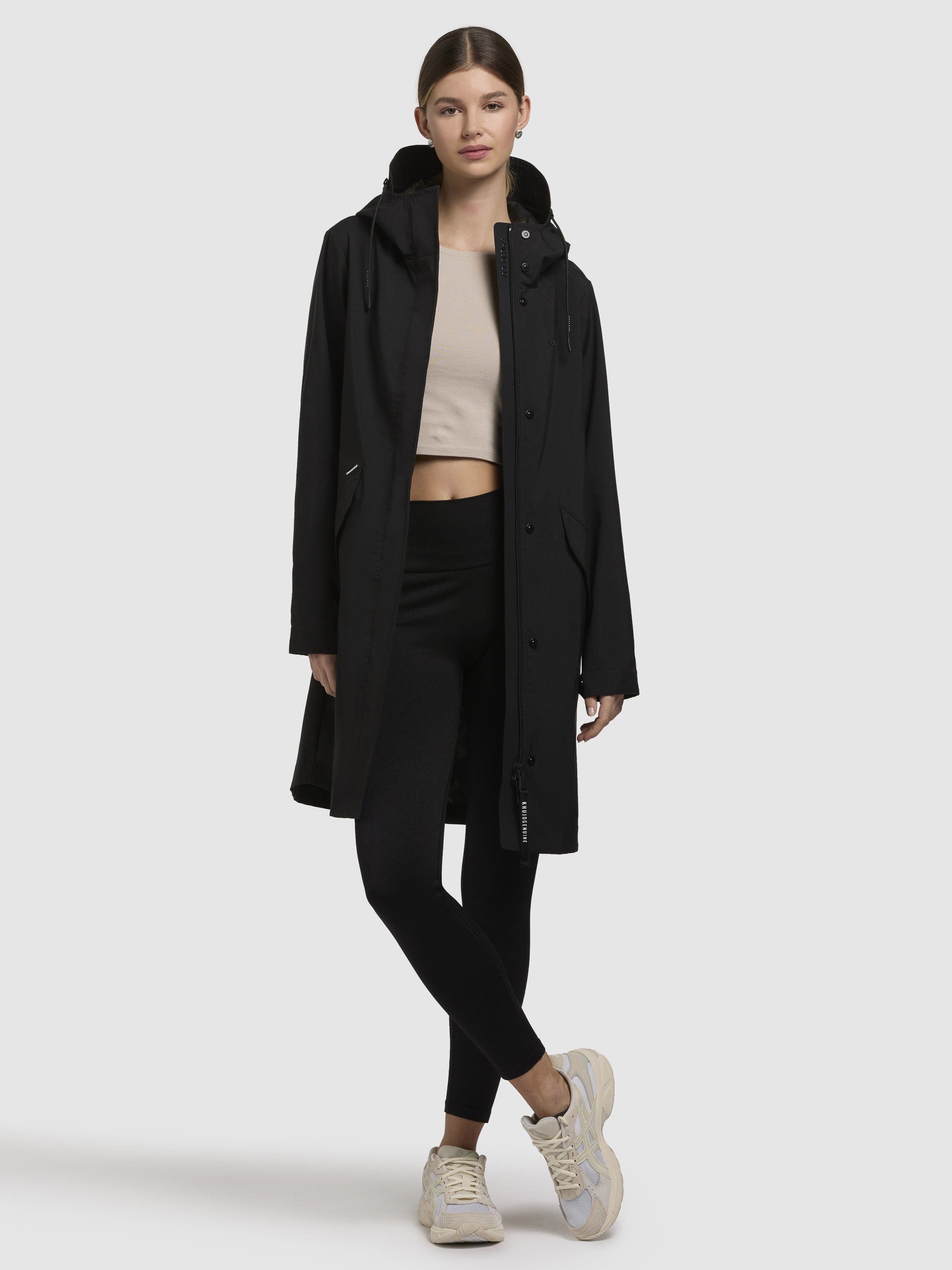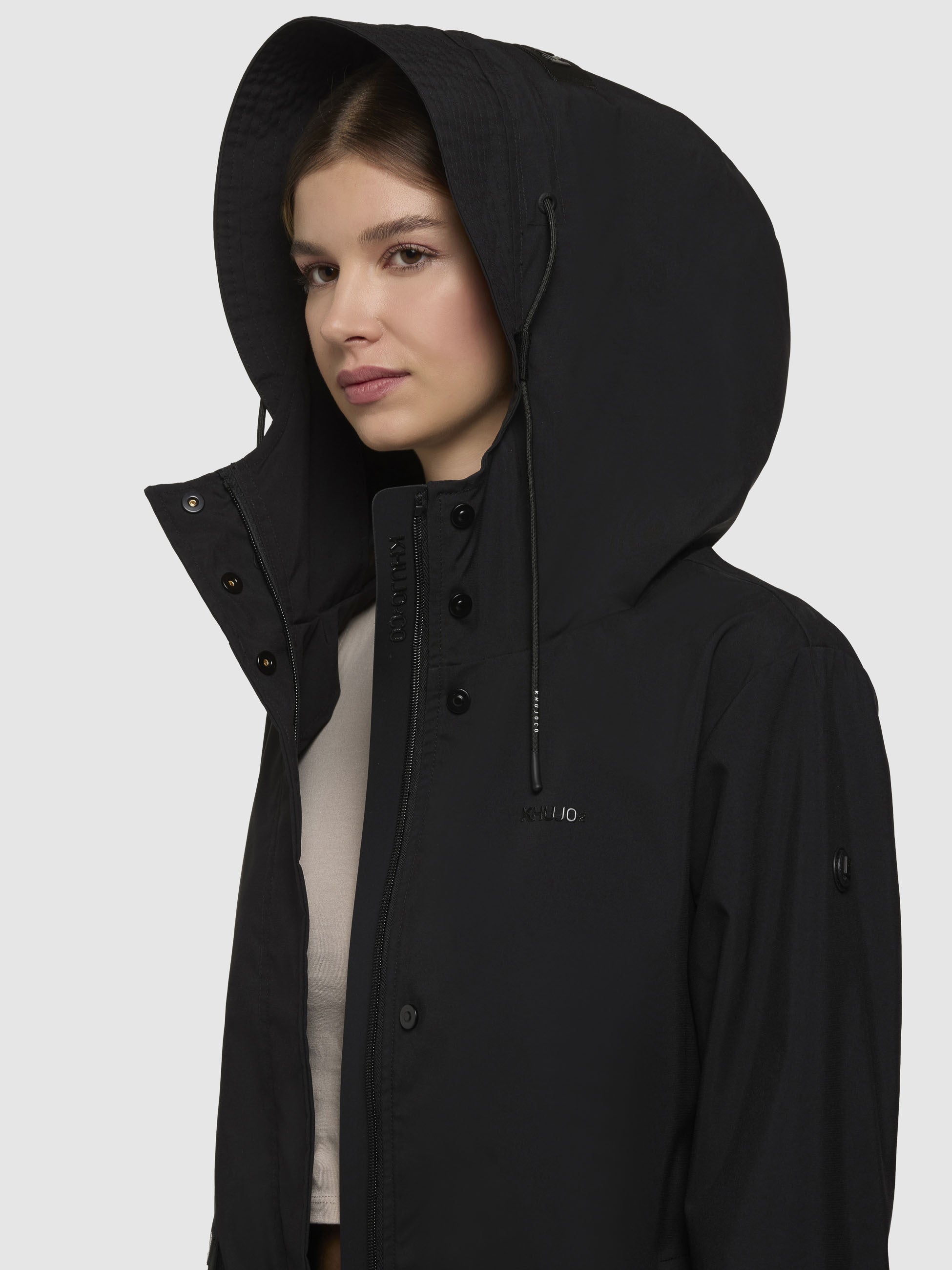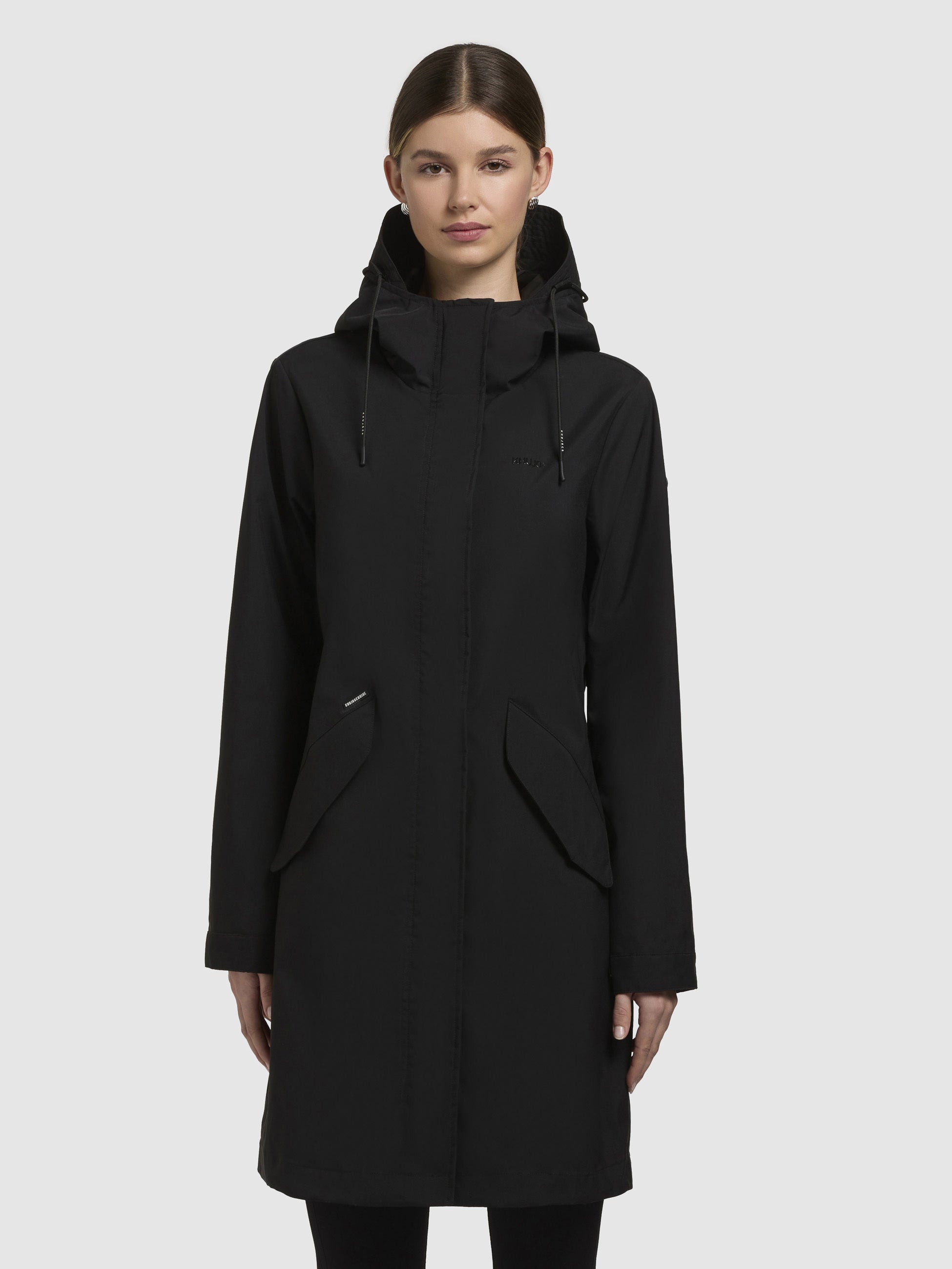 Entdecke den leichten khujo Mantel ELEA im Regular Fit - Dein Schutzschild gegen Regen. Mit der laminierten Innenseite, die mit geklebten Nähten versehen ist, hält er Dich zuverlässig trocken. Die hoch schließende Kapuze, Belüftungsösen un der Zwei-Wege-Reißverschluss mit Magnetknopfleiste sorgen für zusätzlichen Komfort. Kordelzüge an Kapuze und Taille sowie Druckknöpfe an den Ärmelsäumen garantieren eine perfekte Passform. Deine Essentials kannst Du sicher in den Pattentaschen verstauen.