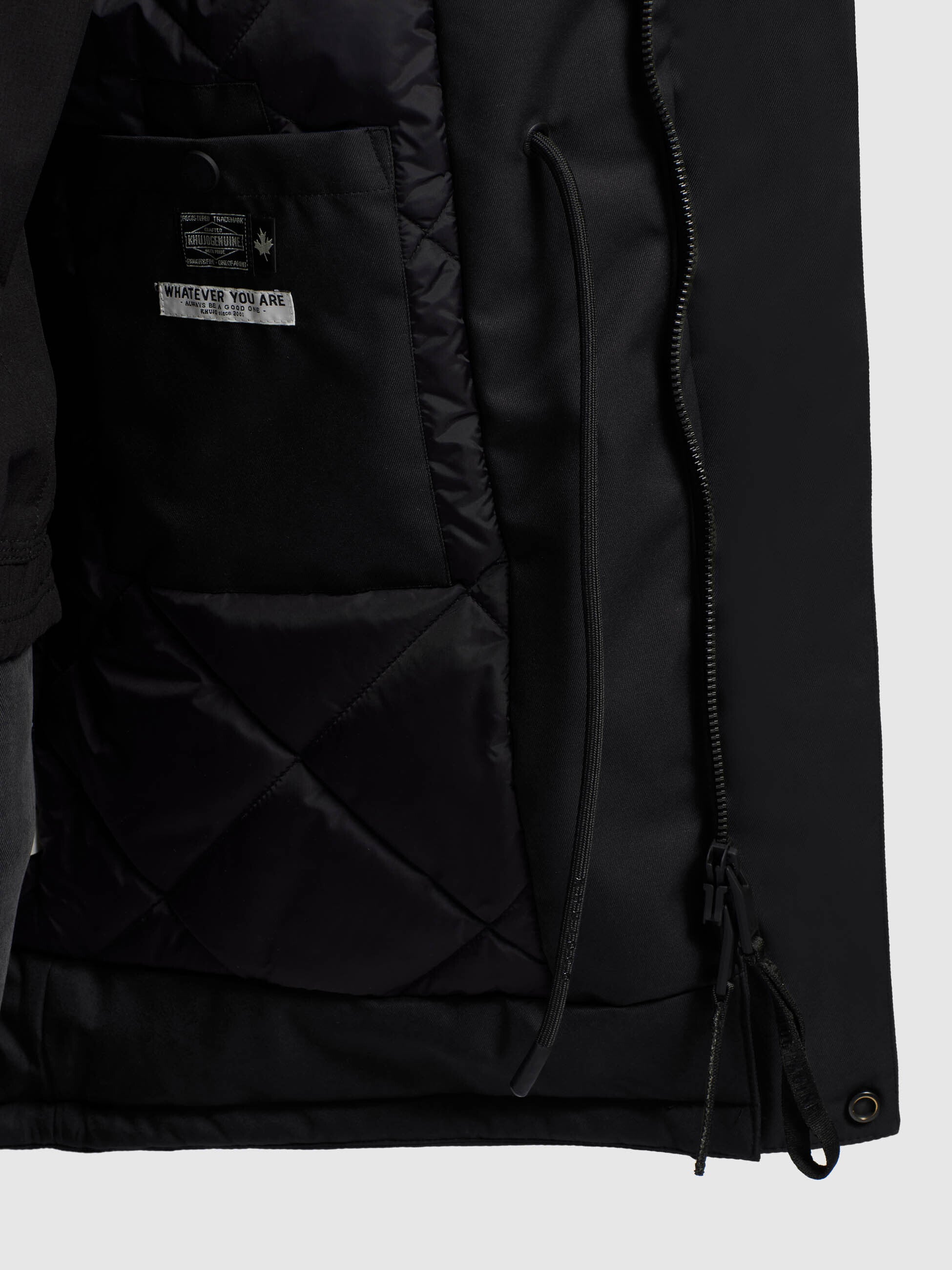 Monochromes Design prägt den urbanen Look vom khujo Mantel HANT. Dieser leicht wattierte Kurzmantel begeistert mit einer großen, verstellbaren und hoch schließenden Kapuze, einer Kombination aus Zwei-Wege-Reißverschluss und Magnetknopfleiste sowie Kordelzügen an der Kapuze und der Taille. Pattentaschen mit Fleecefutter und eine Innentasche bieten zudem Stauraum für unterwegs.