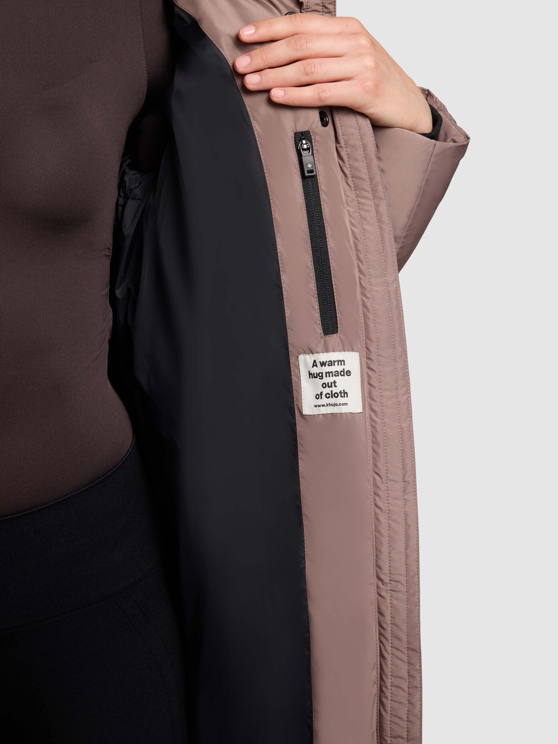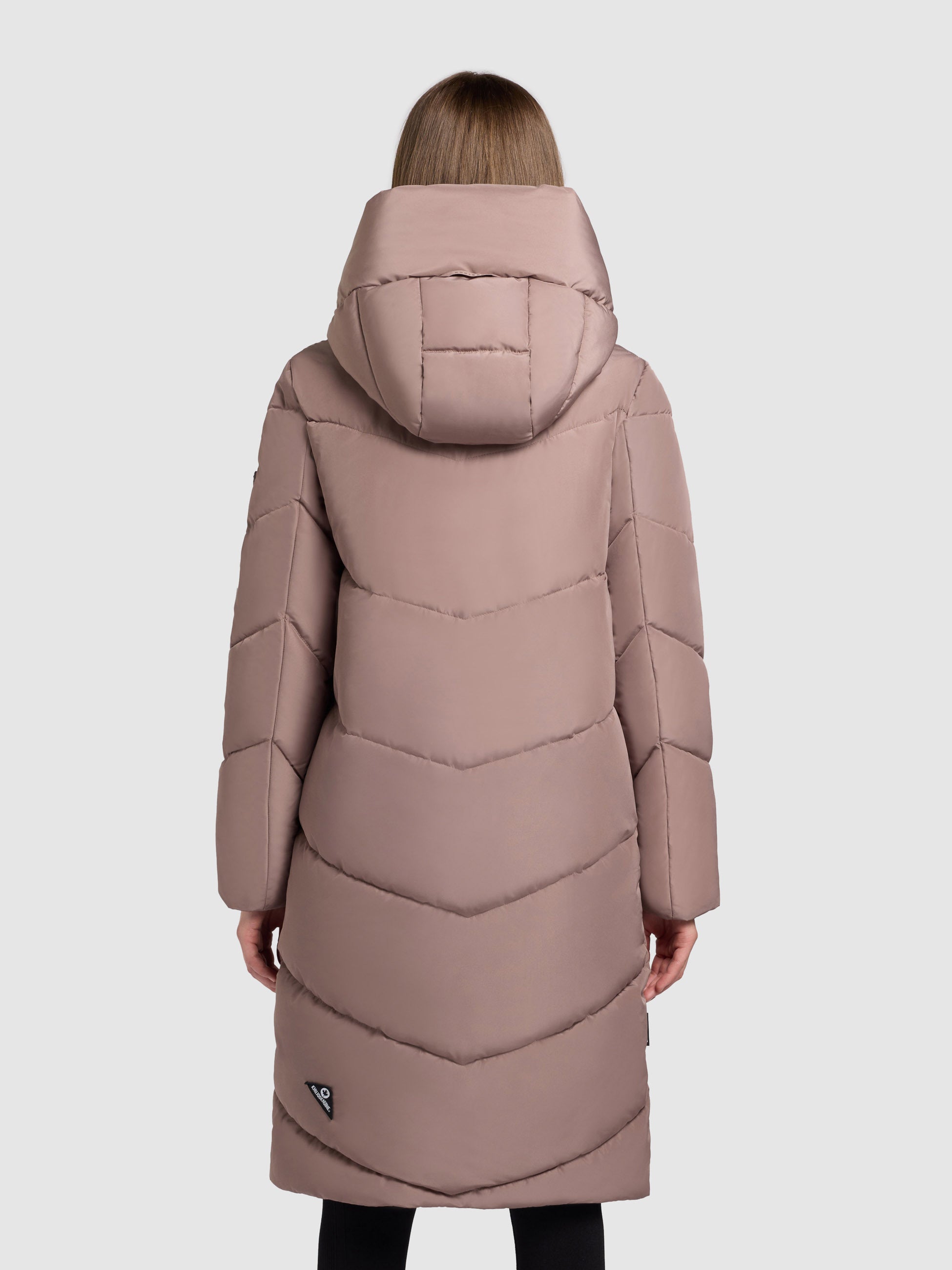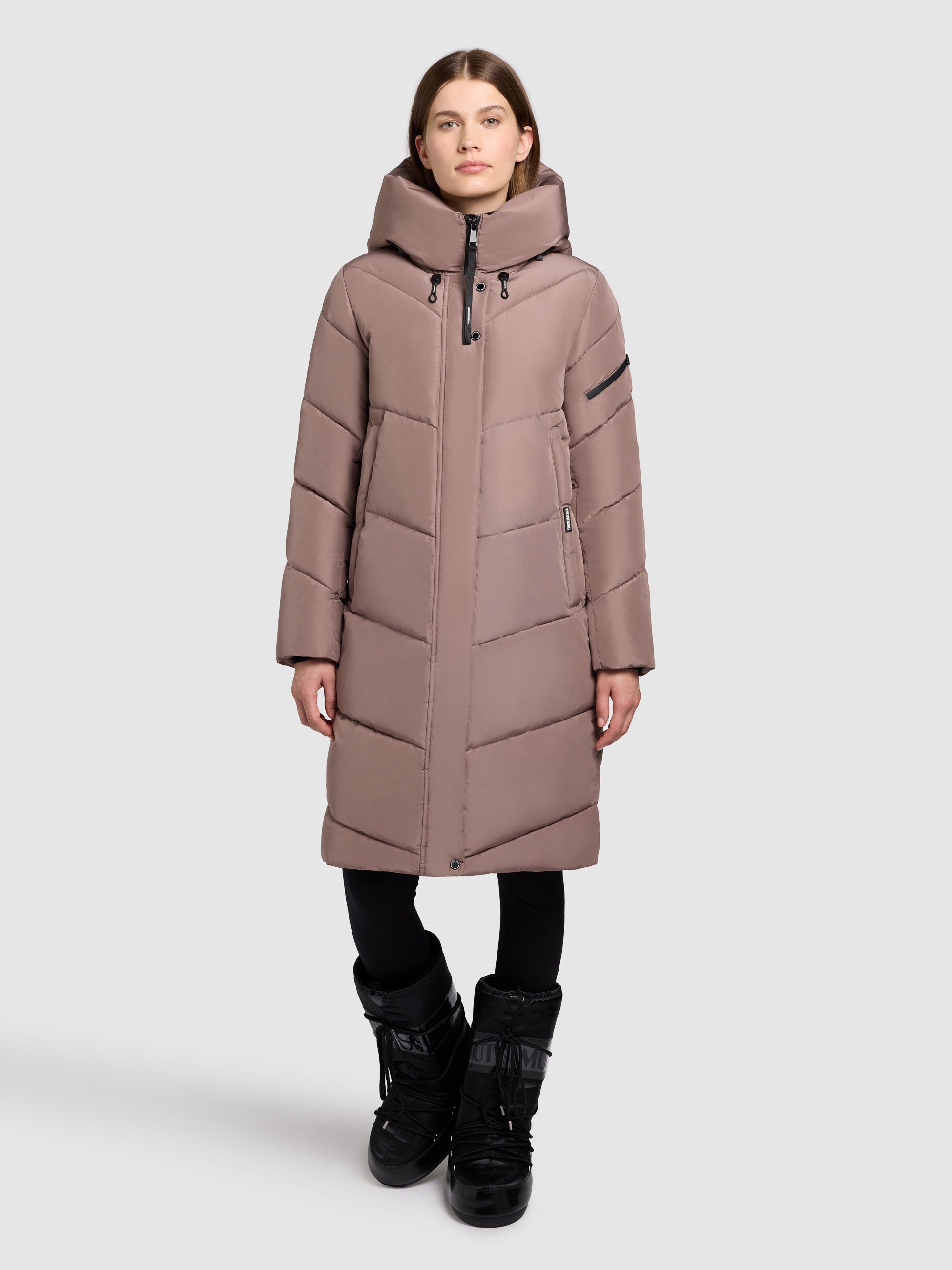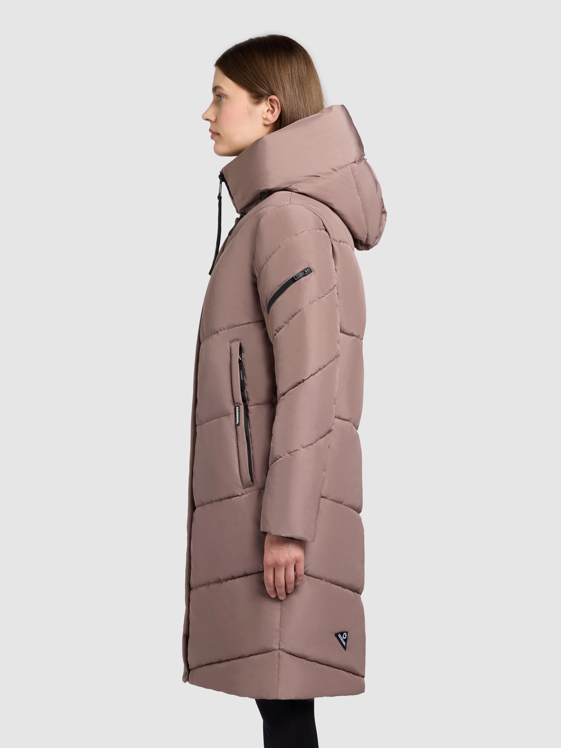 Eine hoch schließende Kapuze mit elastischem Kordelzug, eine warme Wattierung, elastische Bündchen am Ärmelfutter und Taschenbeutel mit Fleece schützen bei dem khujo Mantel JANGE vor kaltem Winterwetter. Dank des verkürzten Zwei-Wege-Reißverschlusses ist bei diesem knielangen Steppmantel Bewegungsfreiheit garantiert. Dein Hab und Gut kann zudem in den seitlichen Reißverschlusstaschen, einer Innentasche, oder einer wasserabweisenden Tasche am Ärmel dieser Winterjacke verstaut werden.