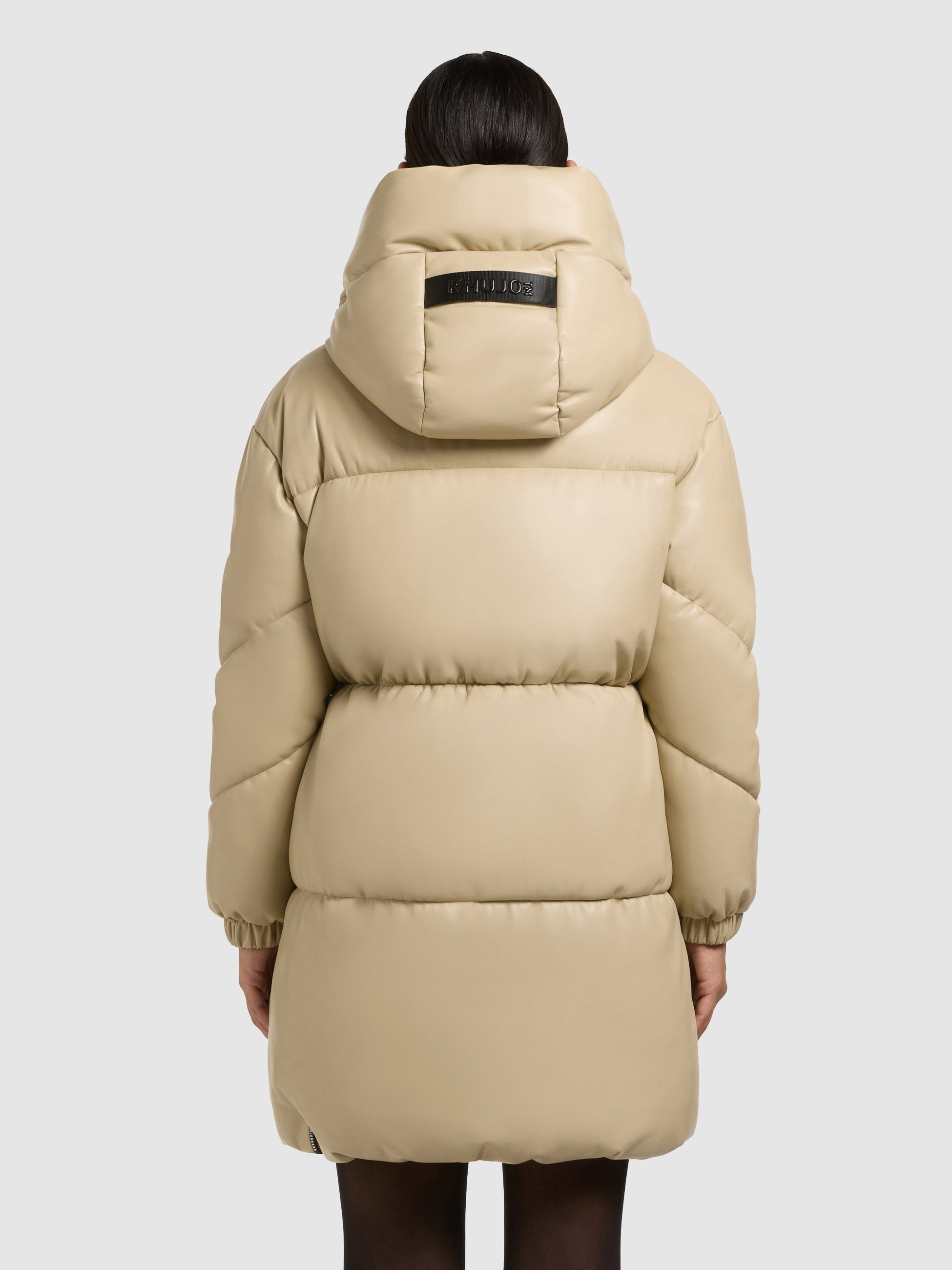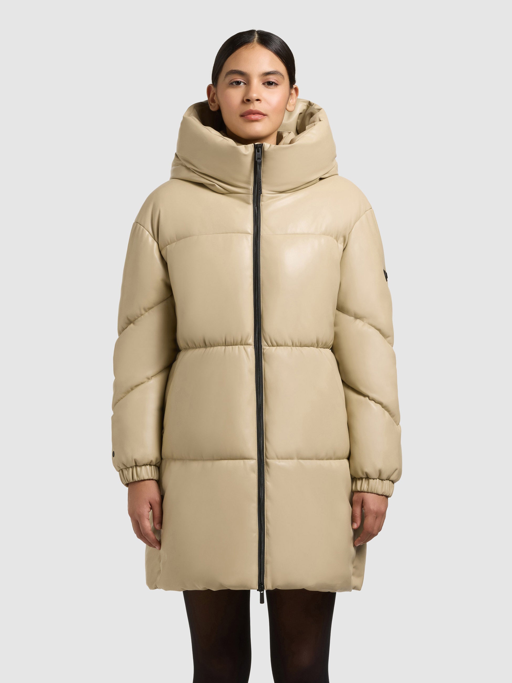 Mit einer großen, hoch schließenden Kapuze mit breiter, abgesteppter Krempe und aus einem wasserabweisenden Obermaterial in Lederoptik gefertigt setzt der khujo Mantel LORSA ein modisches Statement. Zudem begeistert der gesteppte Wintermantel im Loose Fit mit Features, wie elastischen Bündchen am Ärmel, einem Zwei-Wege-Reißverschluss und elastischen, an Taille und Saum eingesetzten Gummizügen. Mit Fleece gefütterte Nahttaschen sowie eine verschließbare Innentasche runden das Design gelungen ab.