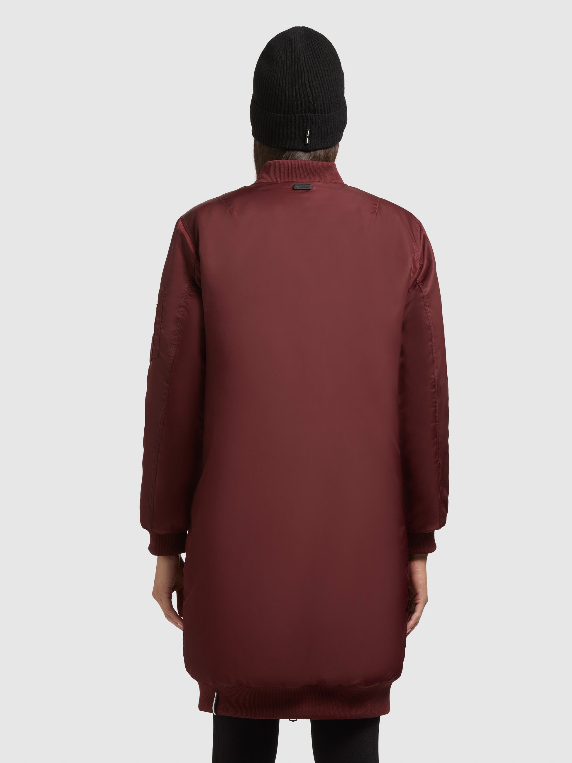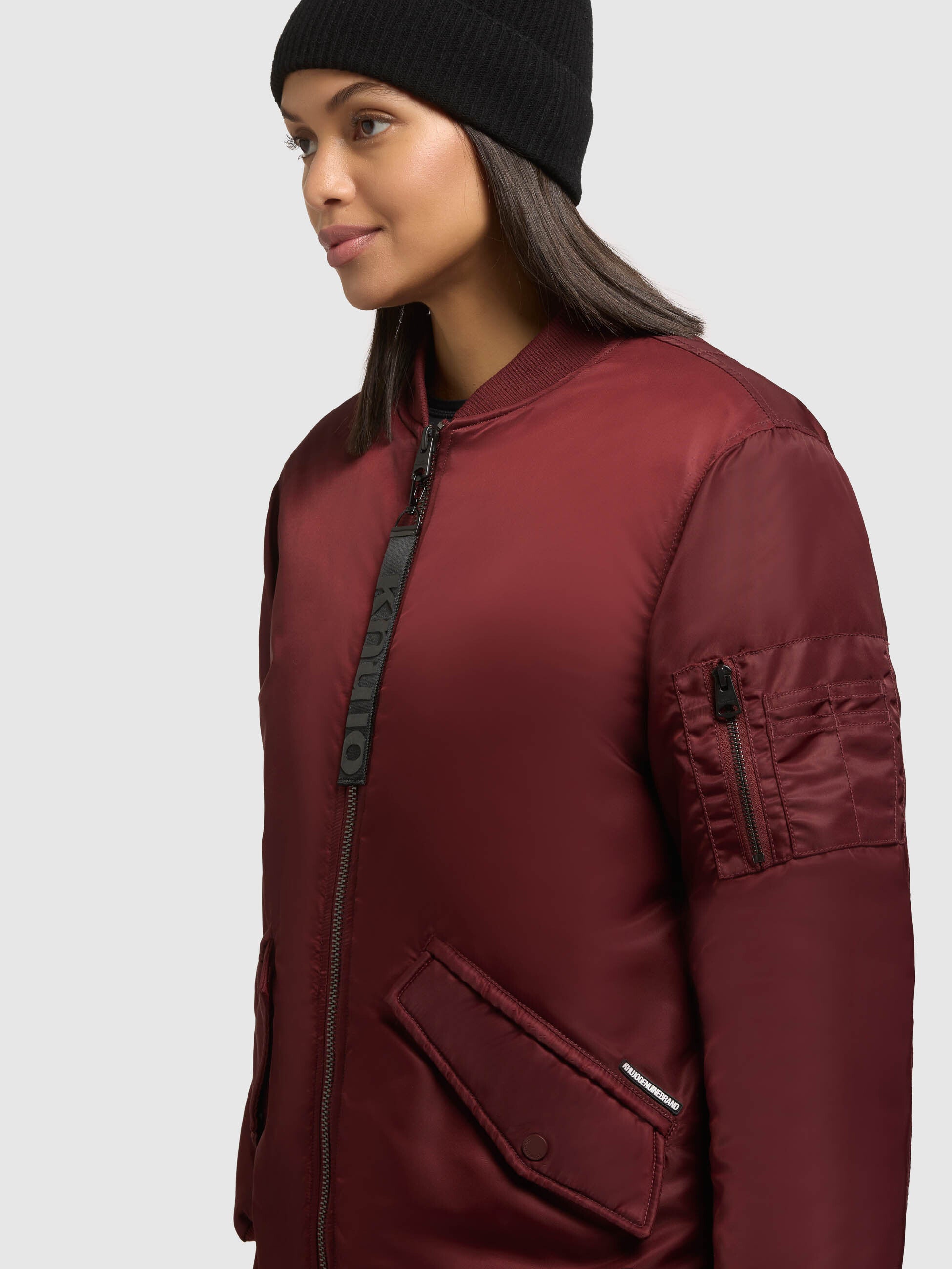 Aus einem glänzenden Obermaterial gefertigt und mit gerippten Bündchen an Kragen, Saum und Ärmeln zelebriert der khujo Mantel LULU den Stil einer Bomberjacke im Oversize-Look. Der Wintermantel mit gestepptem Innenfutter ist im Loose Fit geschnitten und schließt mit einem robusten Zwei-Wege-Reißverschluss. Mit Fleece gefütterte Pattentaschen mit Magnetverschluss und Druckknopf, sowie je eine Innen- und Ärmeltasche mit Reißverschluss bieten ausreichend Stauraum für deine Essentials.