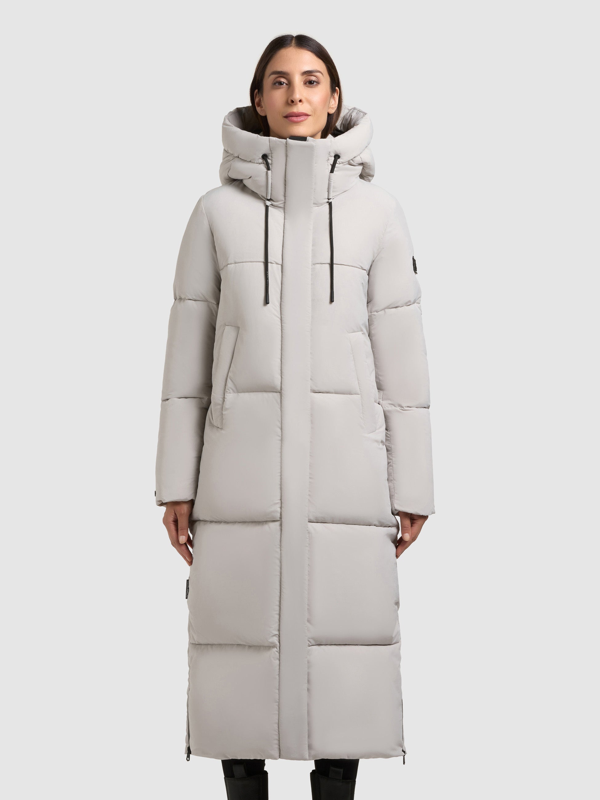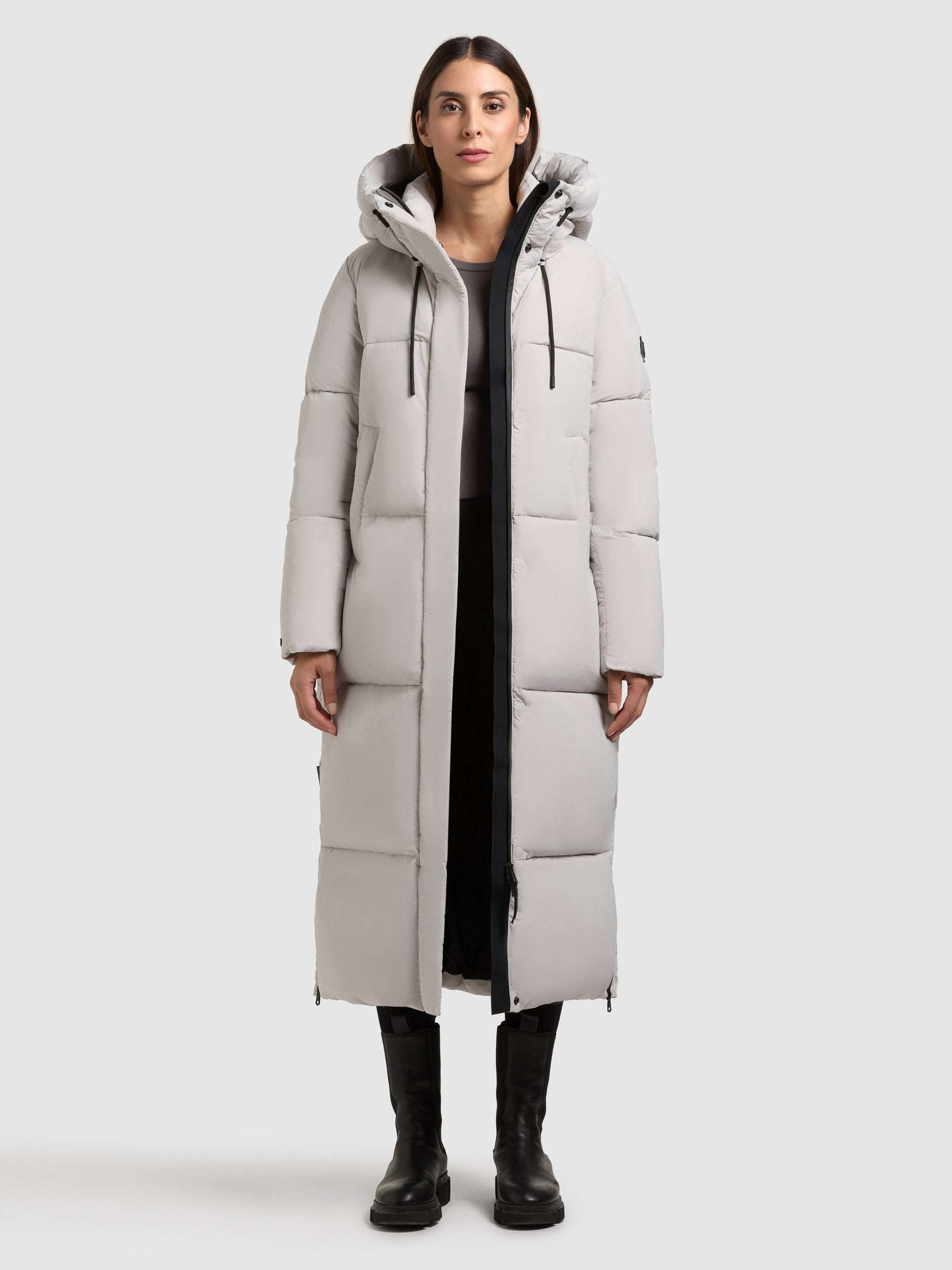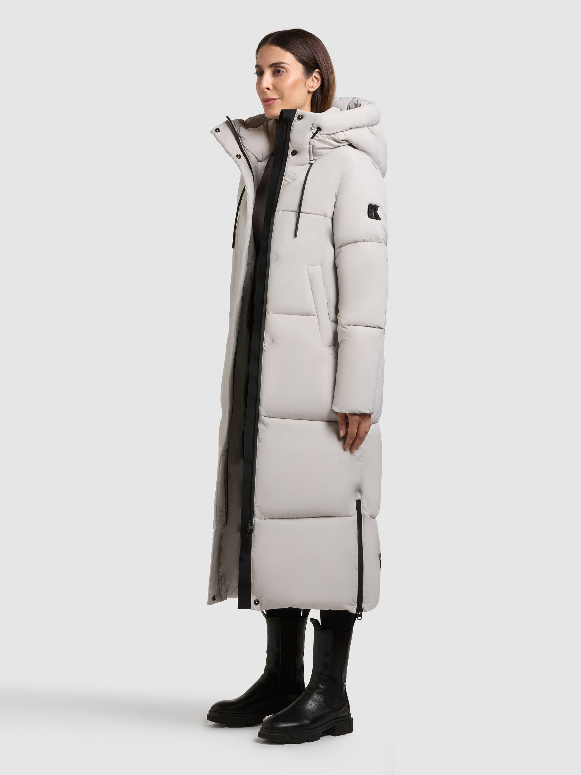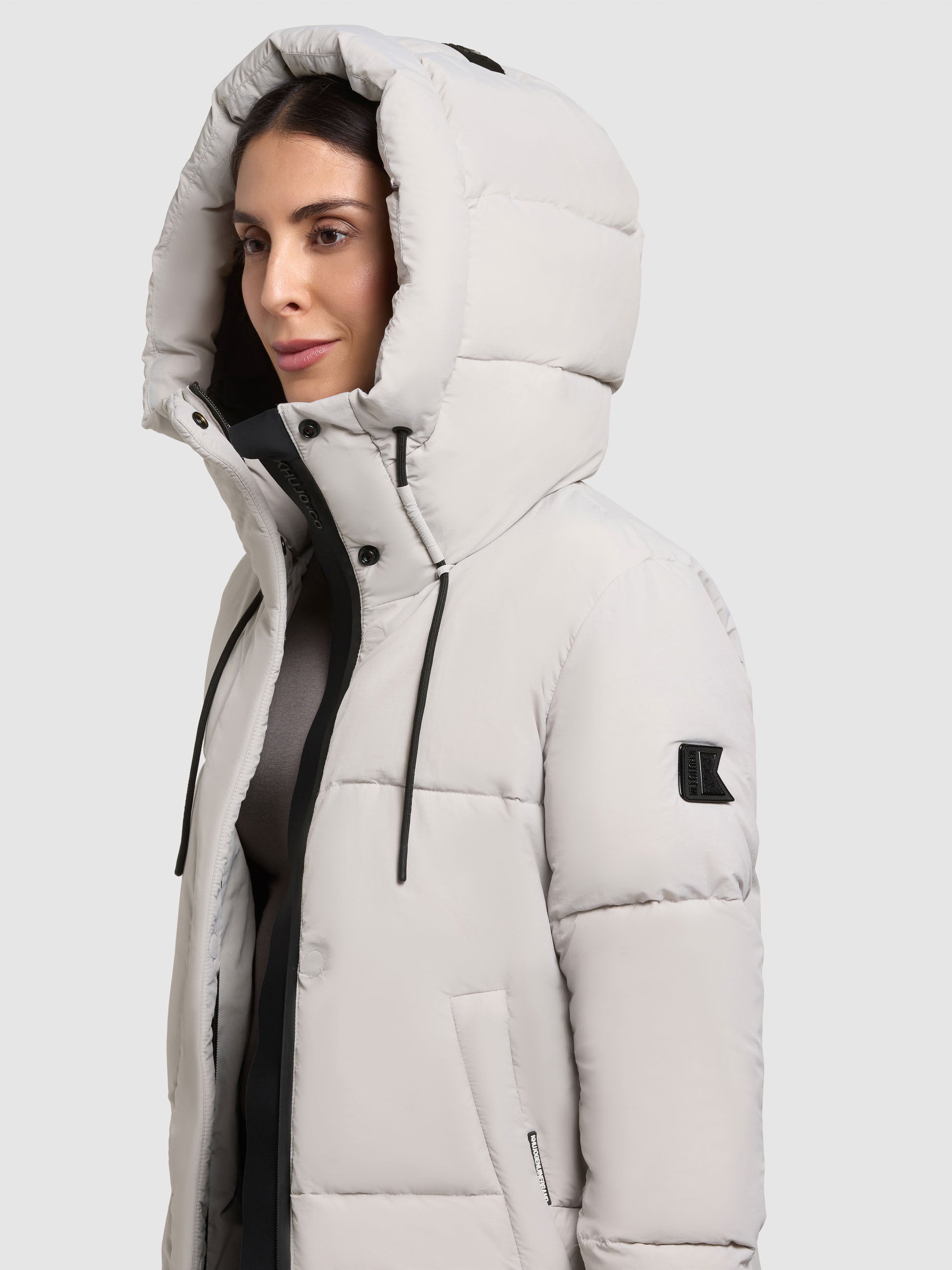 - hoch schließende Kapuze mit Kordelzug