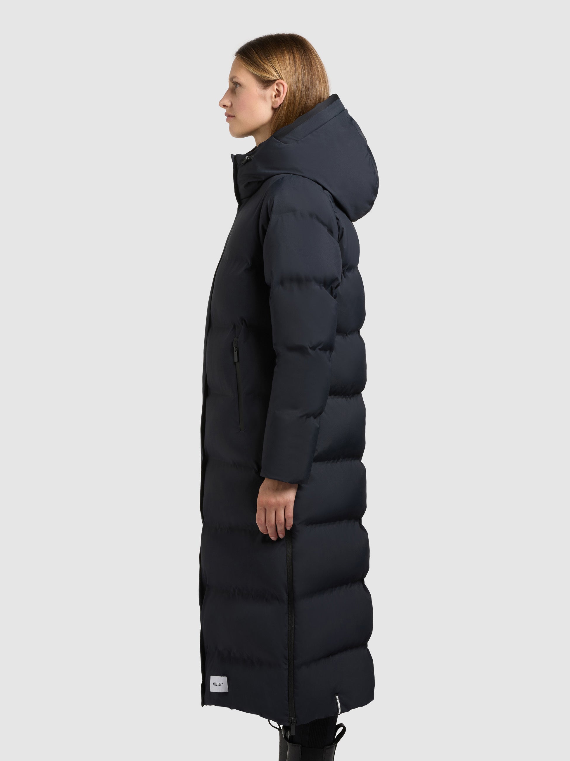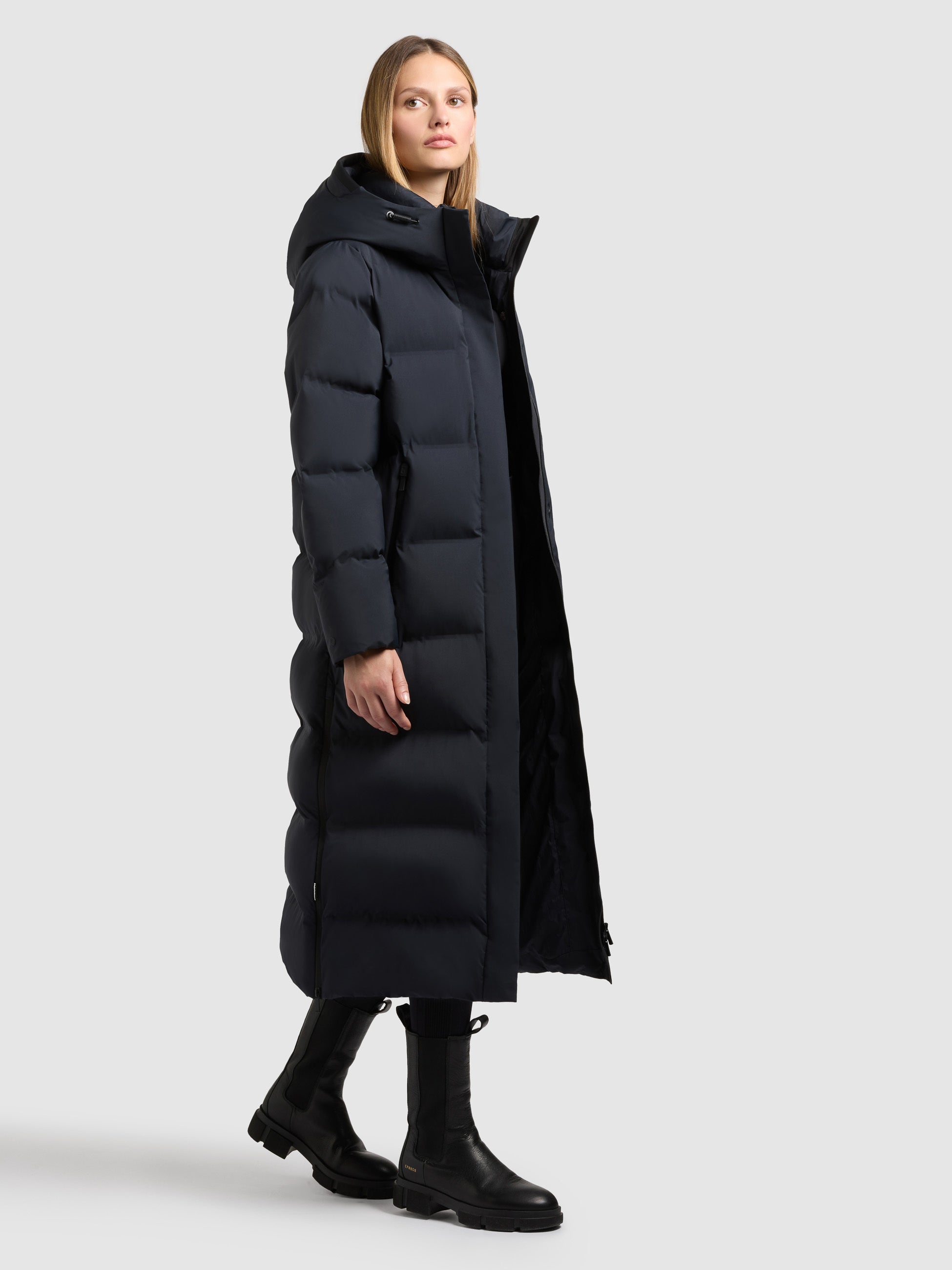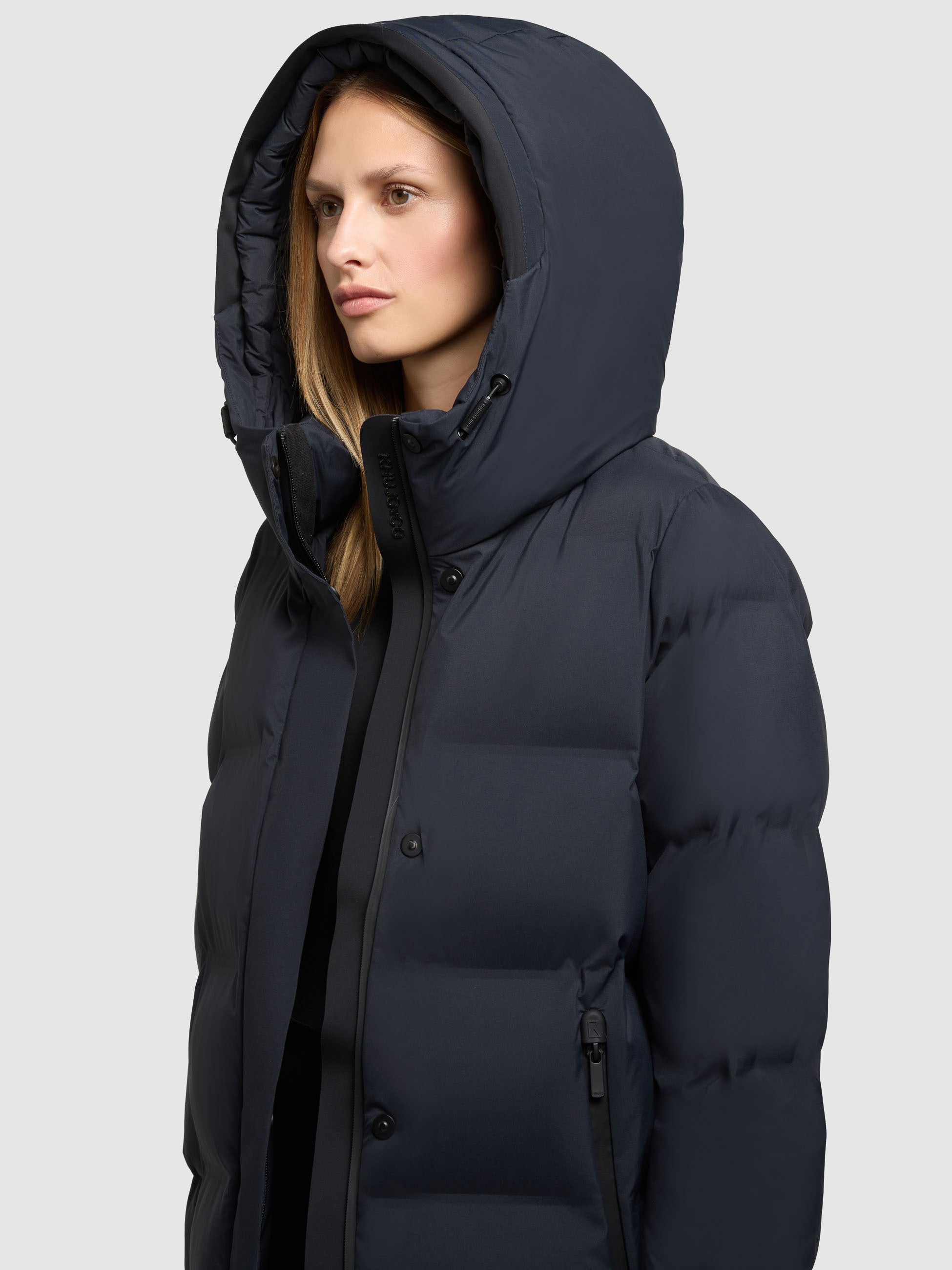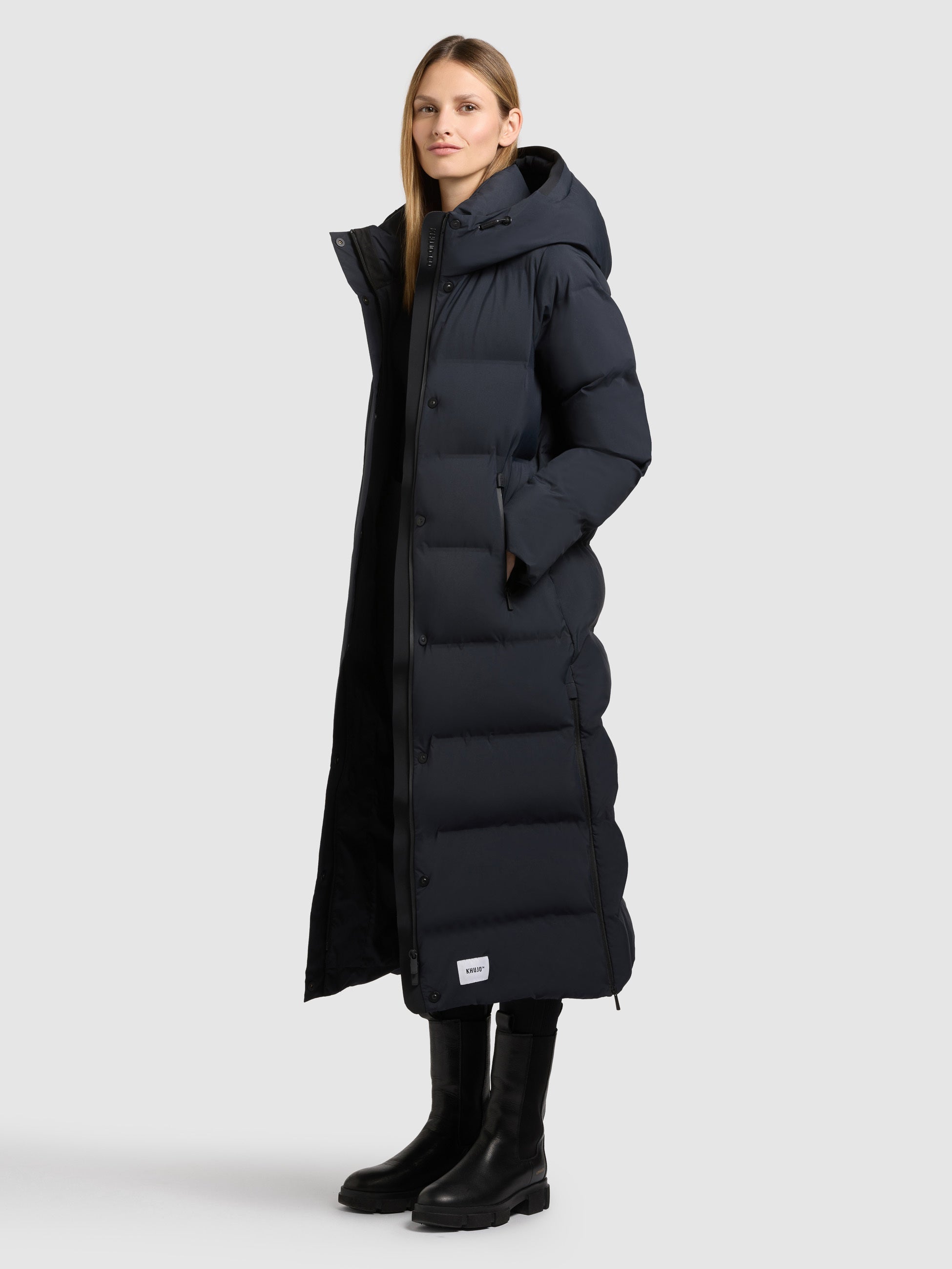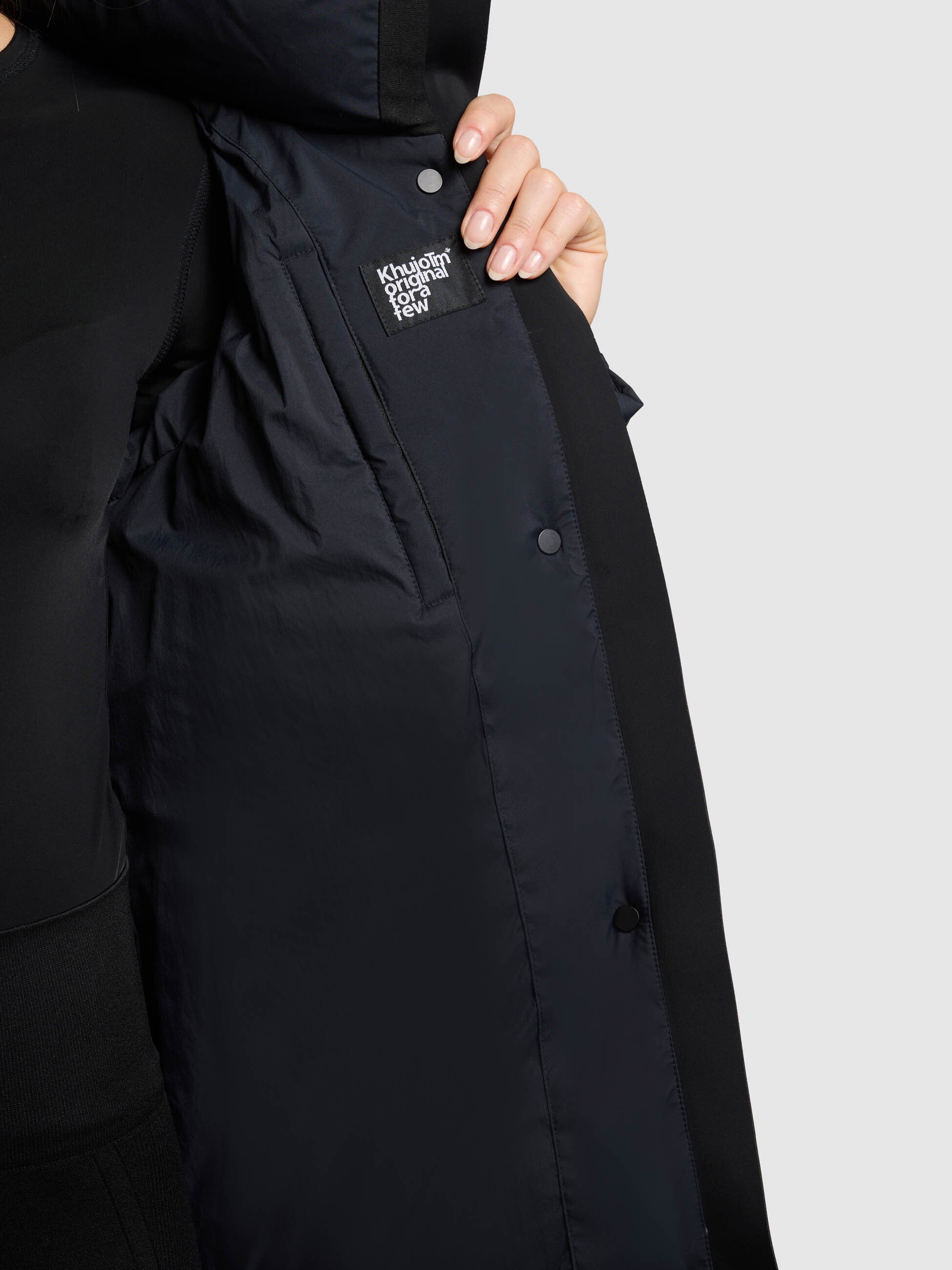 Die hoch schließende Kapuze mit Kordelzug und der wasserabweisende Zwei-Wege-Reißverschluss mit Windschutzblende und Magnetverschluss machen den khujo Mantel MAYLA3 zu einem praktischen Begleiter. Der wadenlange Steppmantel sorgt dank seitlicher Schlitze für optimale Bewegungsfreiheit. Mit Fleece gefütterte Reißverschlusstaschen, sowie eine Innen- und Ärmeltasche bieten genügend Stauraum für deine Essentials und elastische Bündchen am Ärmelfutter komplettieren das Design dieser Winterjacke.
