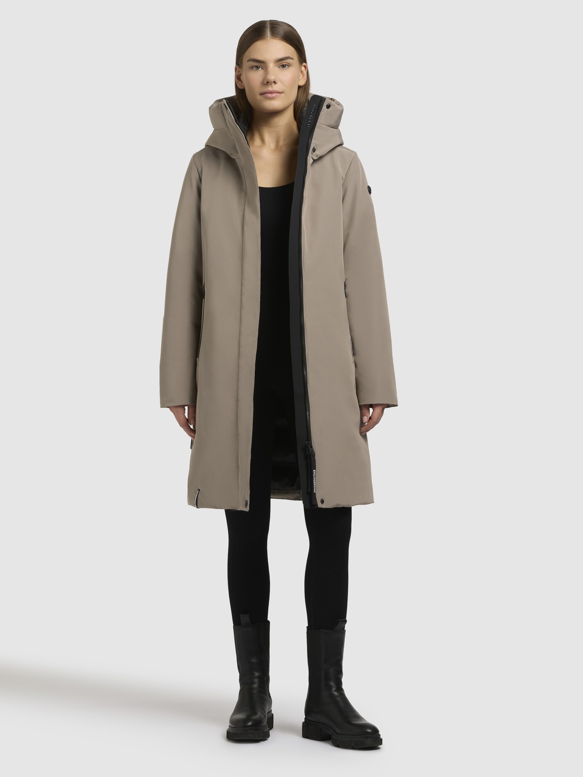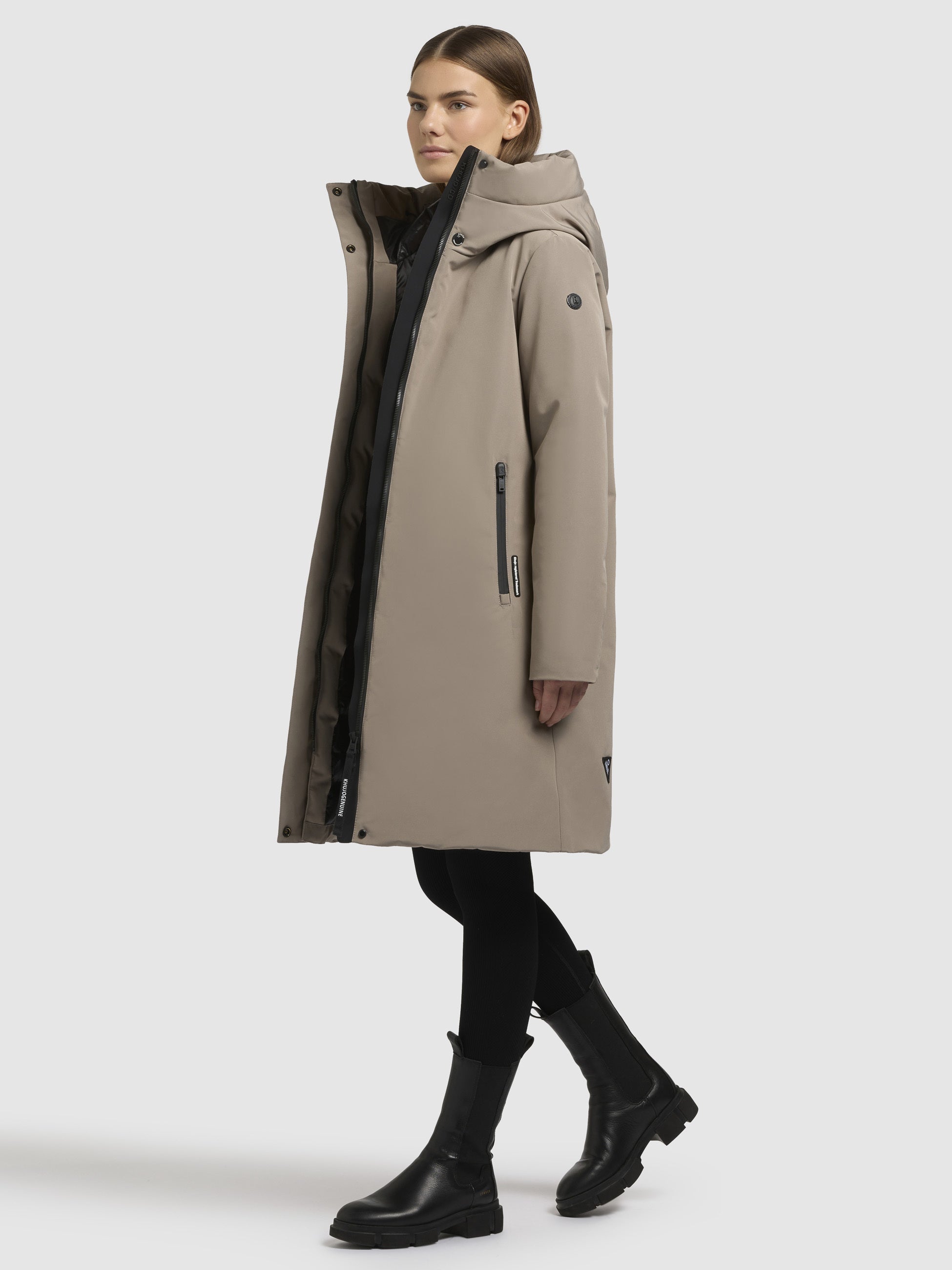 - hoch schließende Kapuze mit Kordelzug