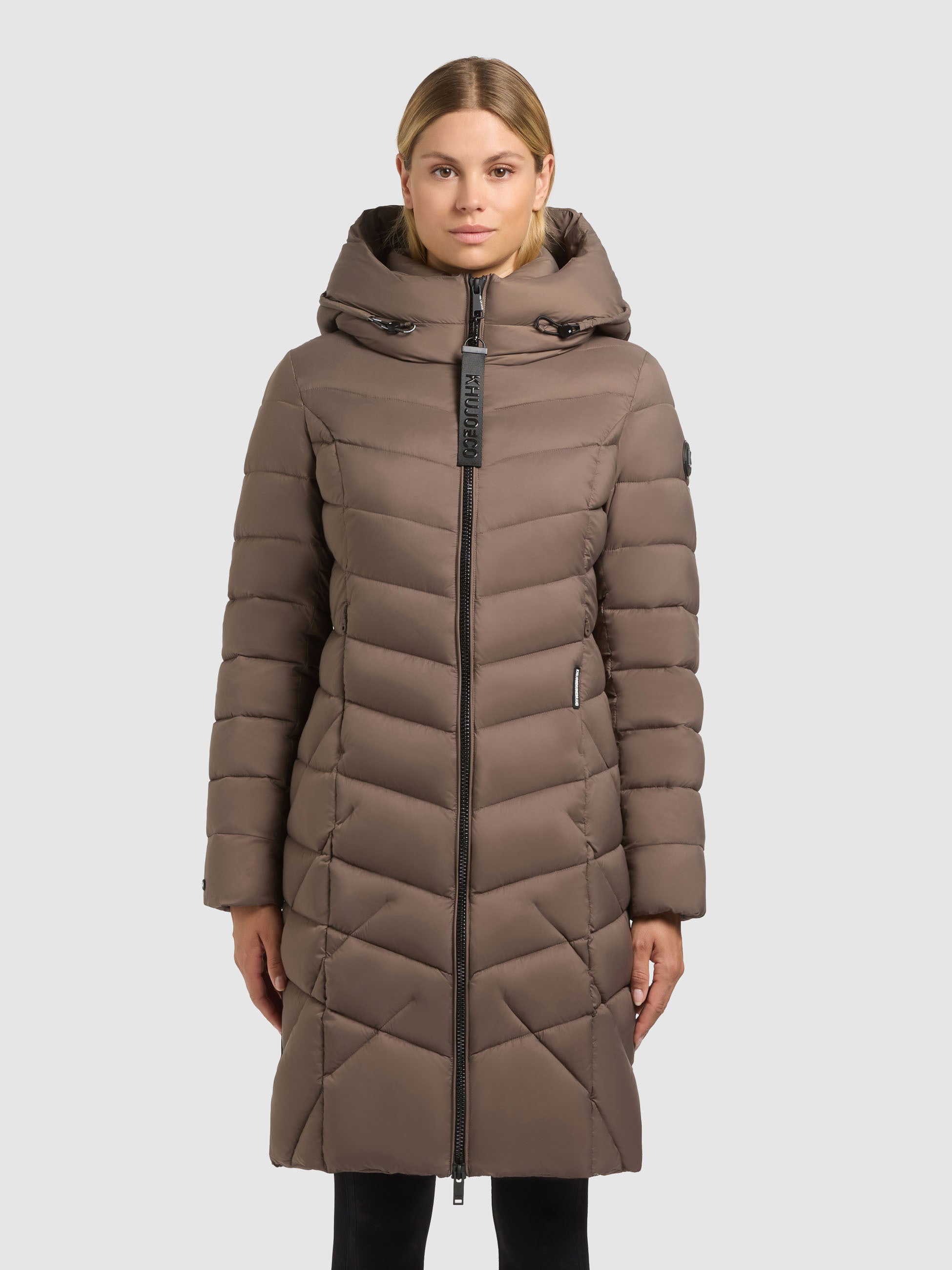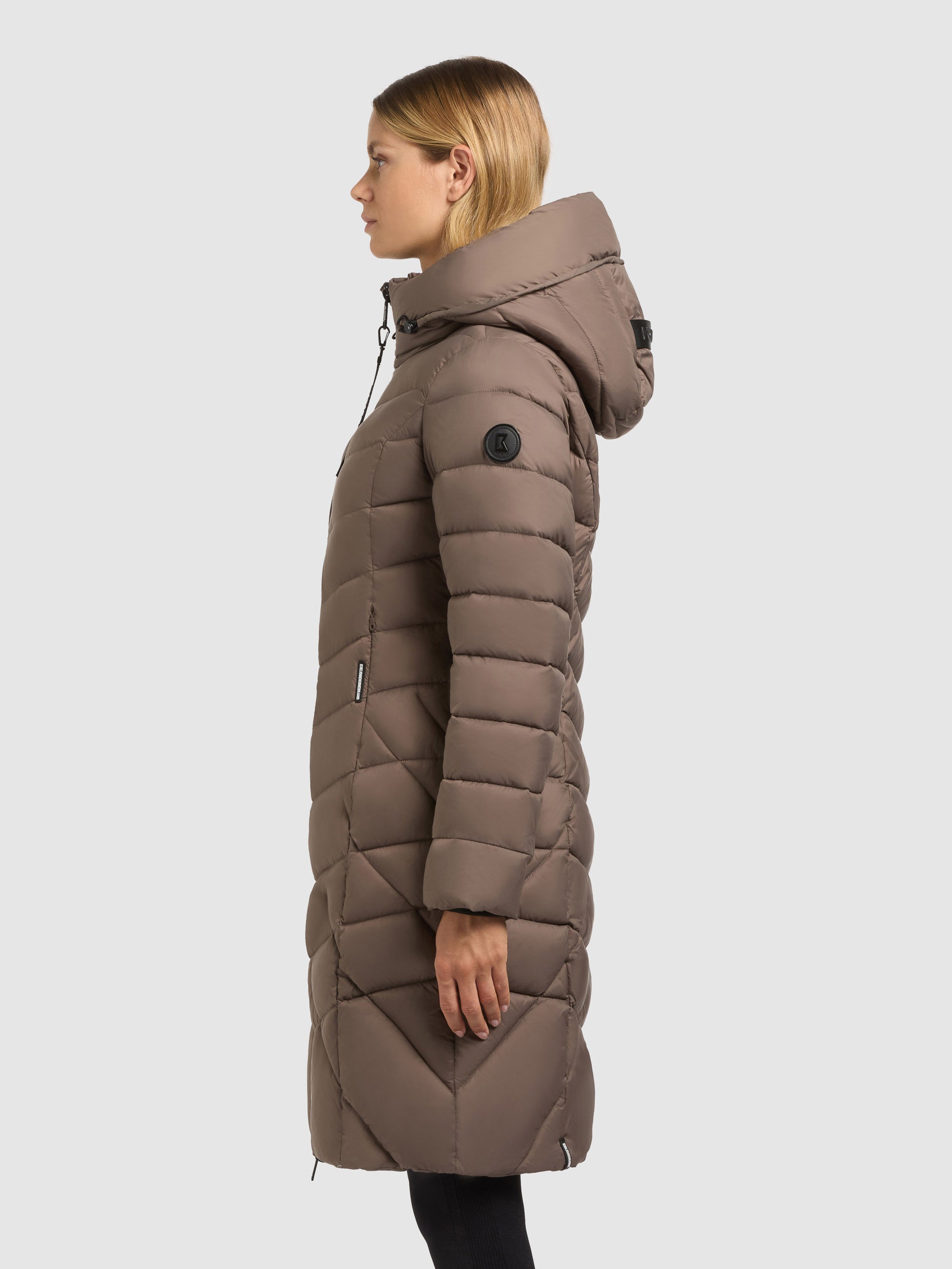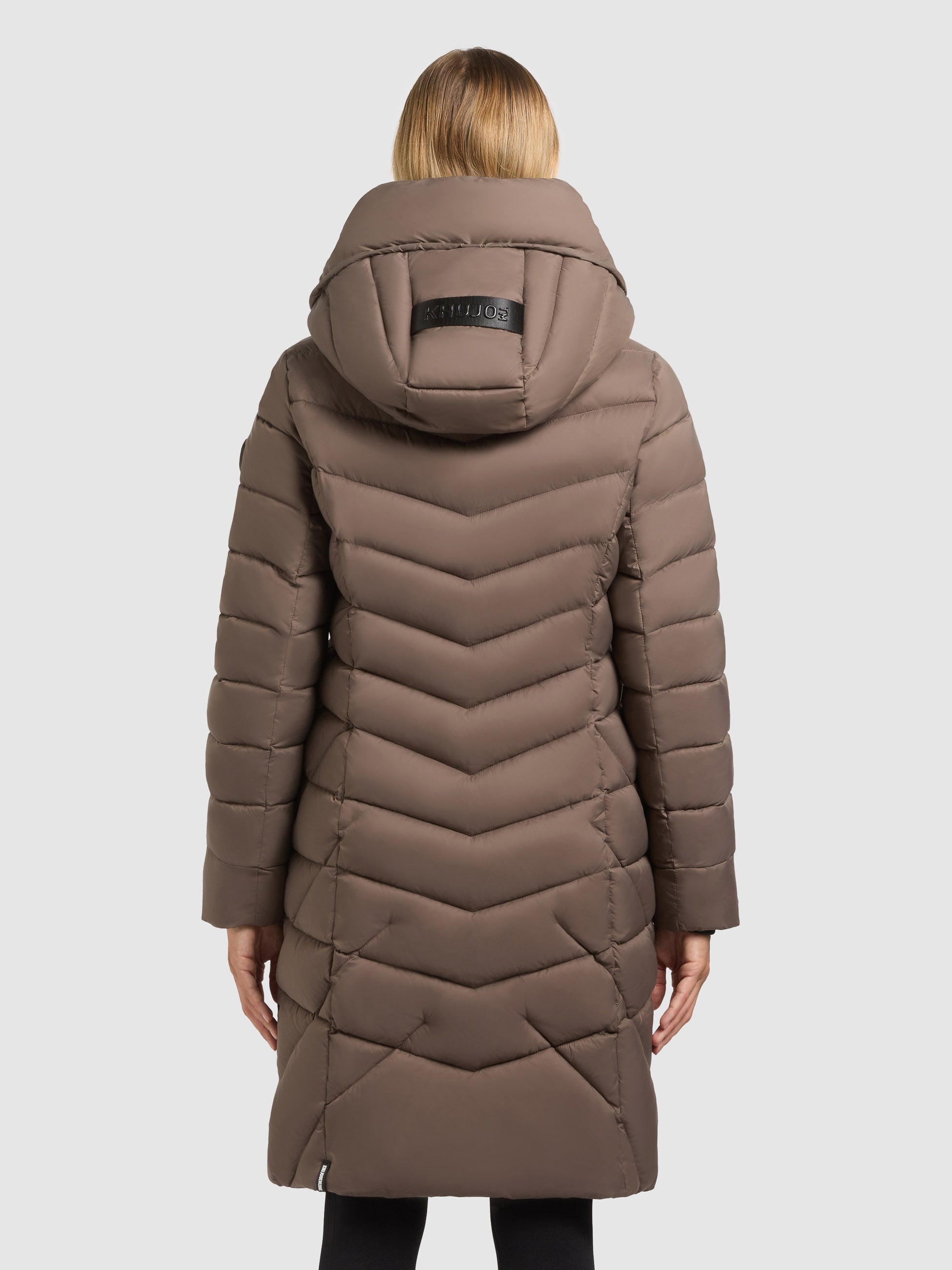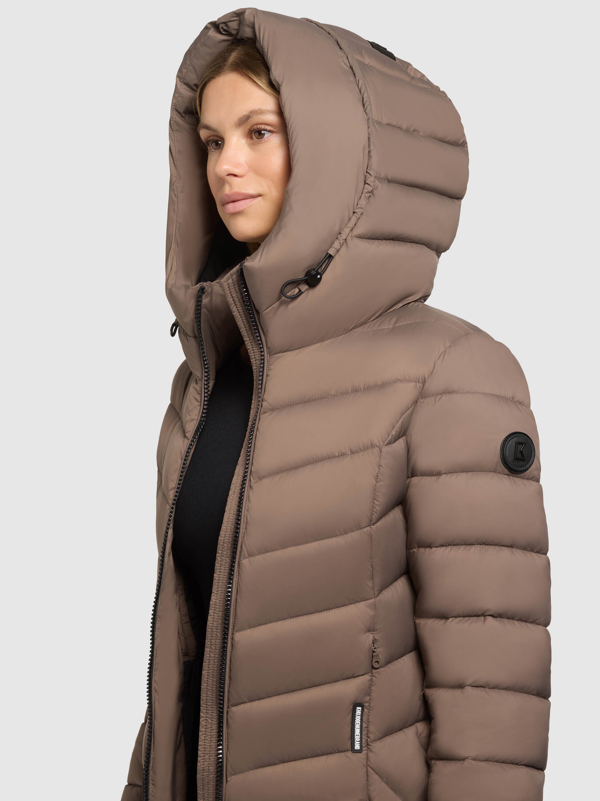 Der knielange Schnitt und das Steppmuster machen den warm wattierten khujo Mantel ODANA3 zum absoluten Eyecatcher. Eine gefütterte und hoch schließende Kapuze, ein wattierter Stehkragen, elastische Bündchen am Ärmelfutter und Taschenbeutel mit Fleece bezeugen bei diesem Steppmantel einmal mehr die Leidenschaft für Details von khujo. Kleinigkeiten lassen sich bei dieser Winterjacke in den Nahttaschen mit Reißverschluss und zwei verschließbaren Innentaschen sicher verstauen.