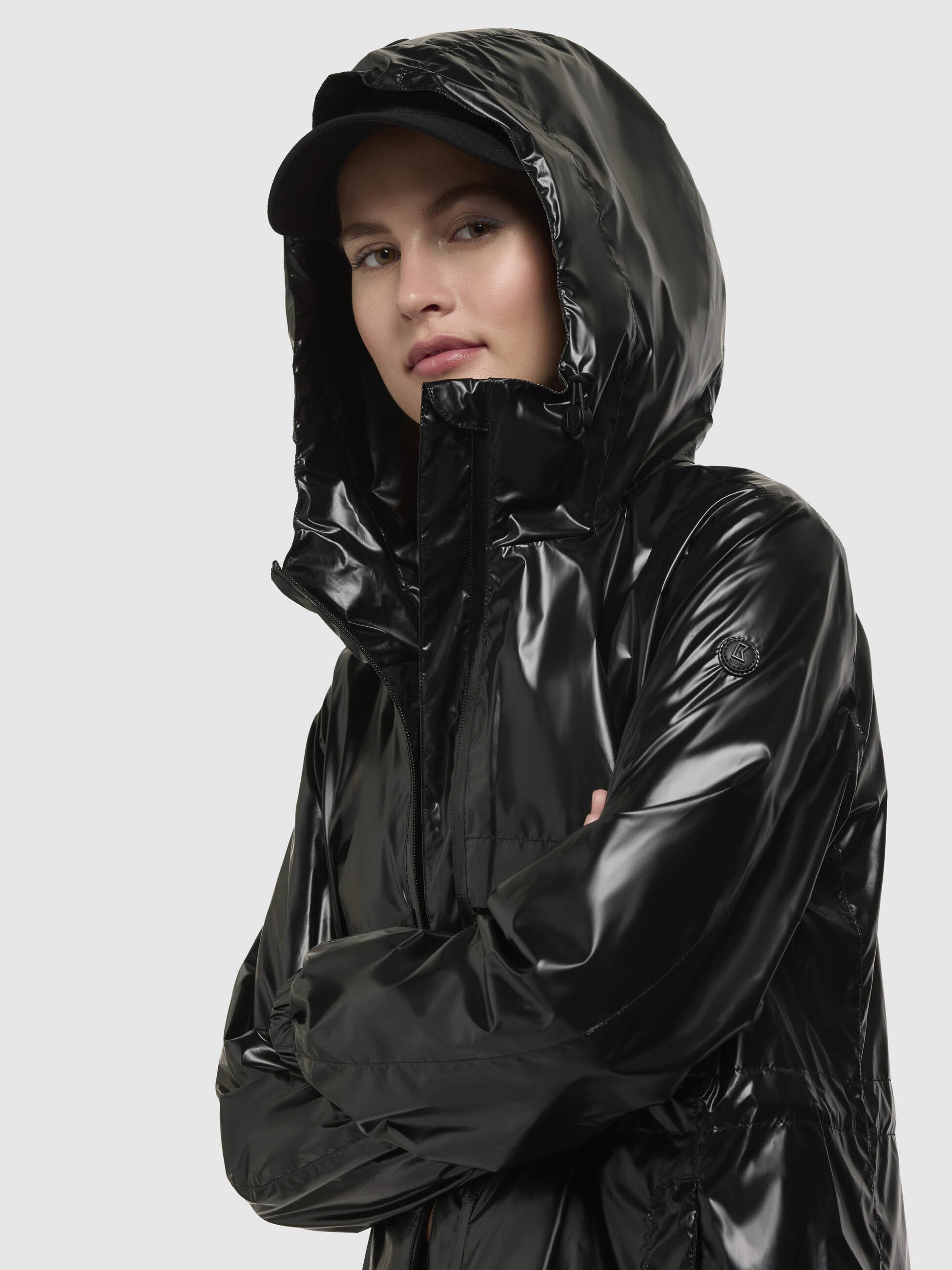 Der knielange khujo Mantel PHOEBE im Regular Fit mit elastischem Kordelzug an der hoch schließenden Kapuze sorgt für einen glänzenden Auftritt im Alltag. Das Obermaterial mit dezentem Knittereffekt, eine Logo-Applikation und ein Reißverschluss mit einer wasserabweisenden Beschichtung setzen bei diesem Kurzmantel modische Akzente. Elastische Bündchen und ein Kordelzug an Taille und Saum bieten optimalen Tragekomfort. Platz für deine Essentials findet sich in den seitlichen Reißverschlusstaschen.