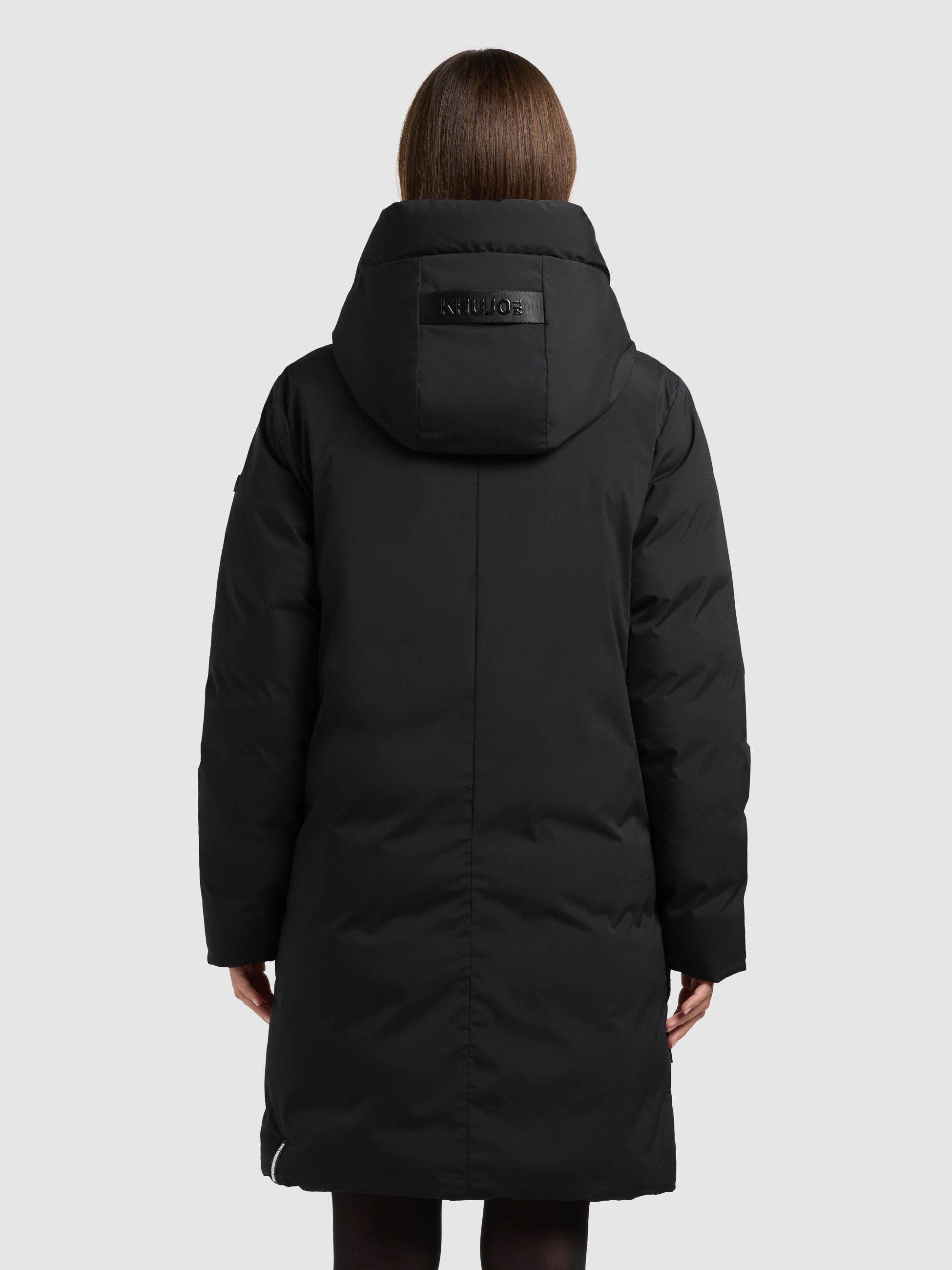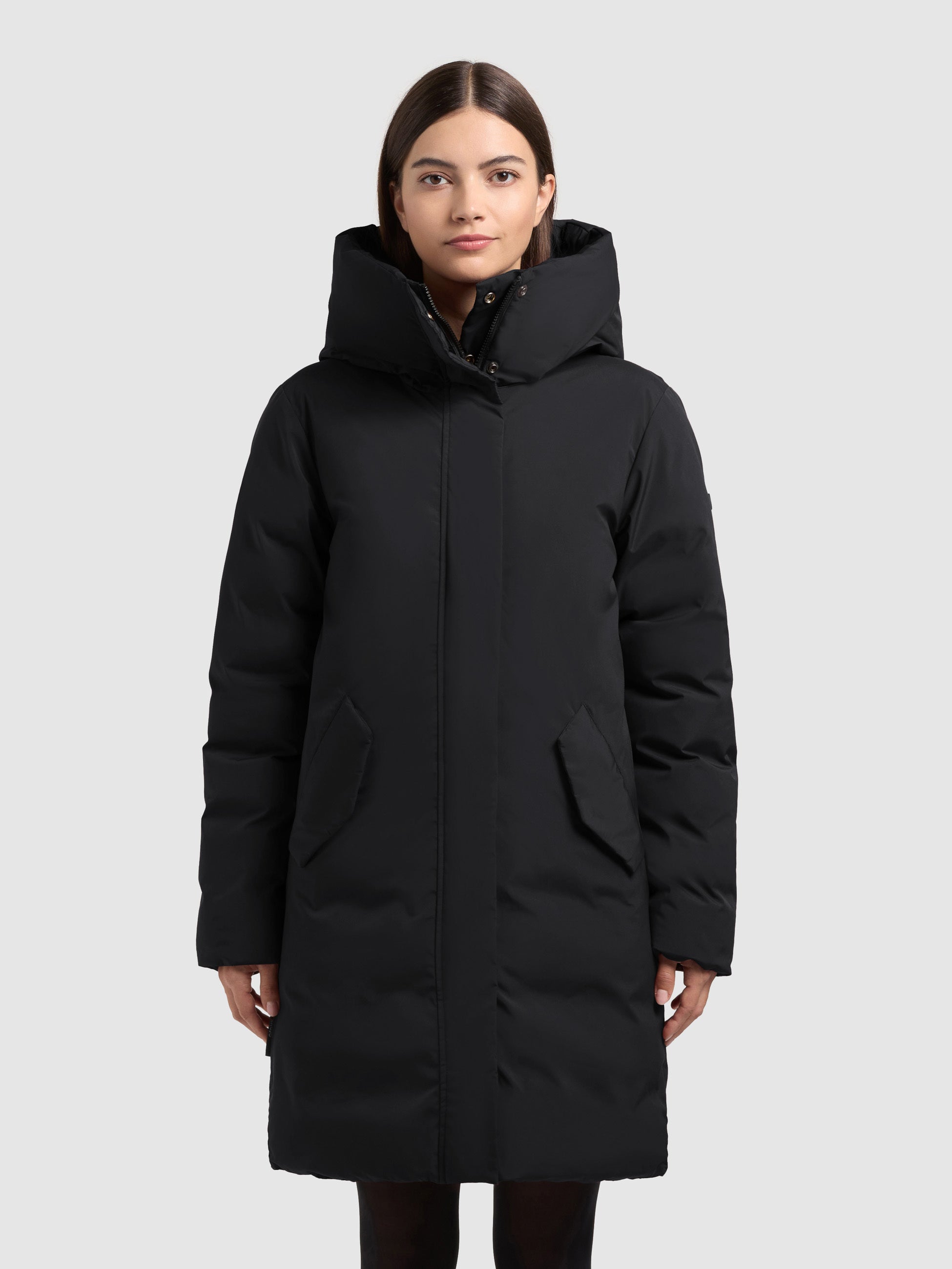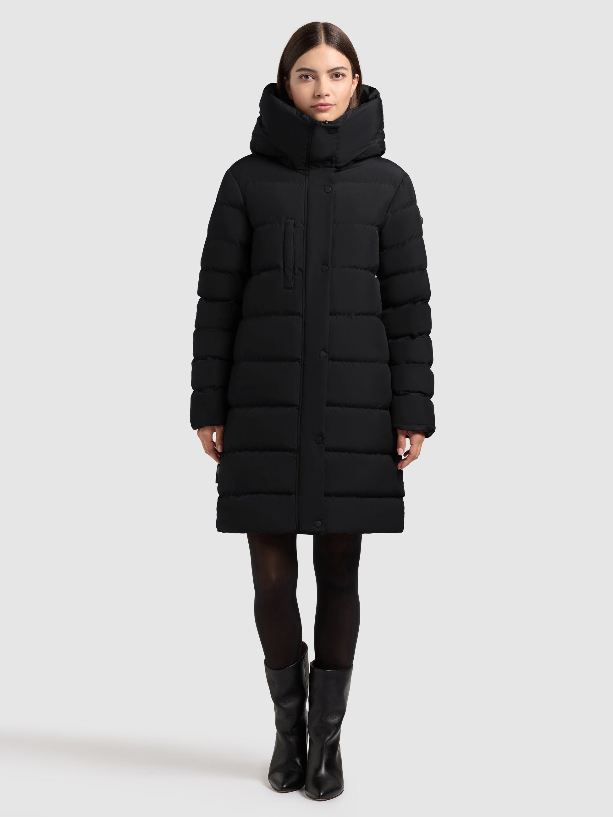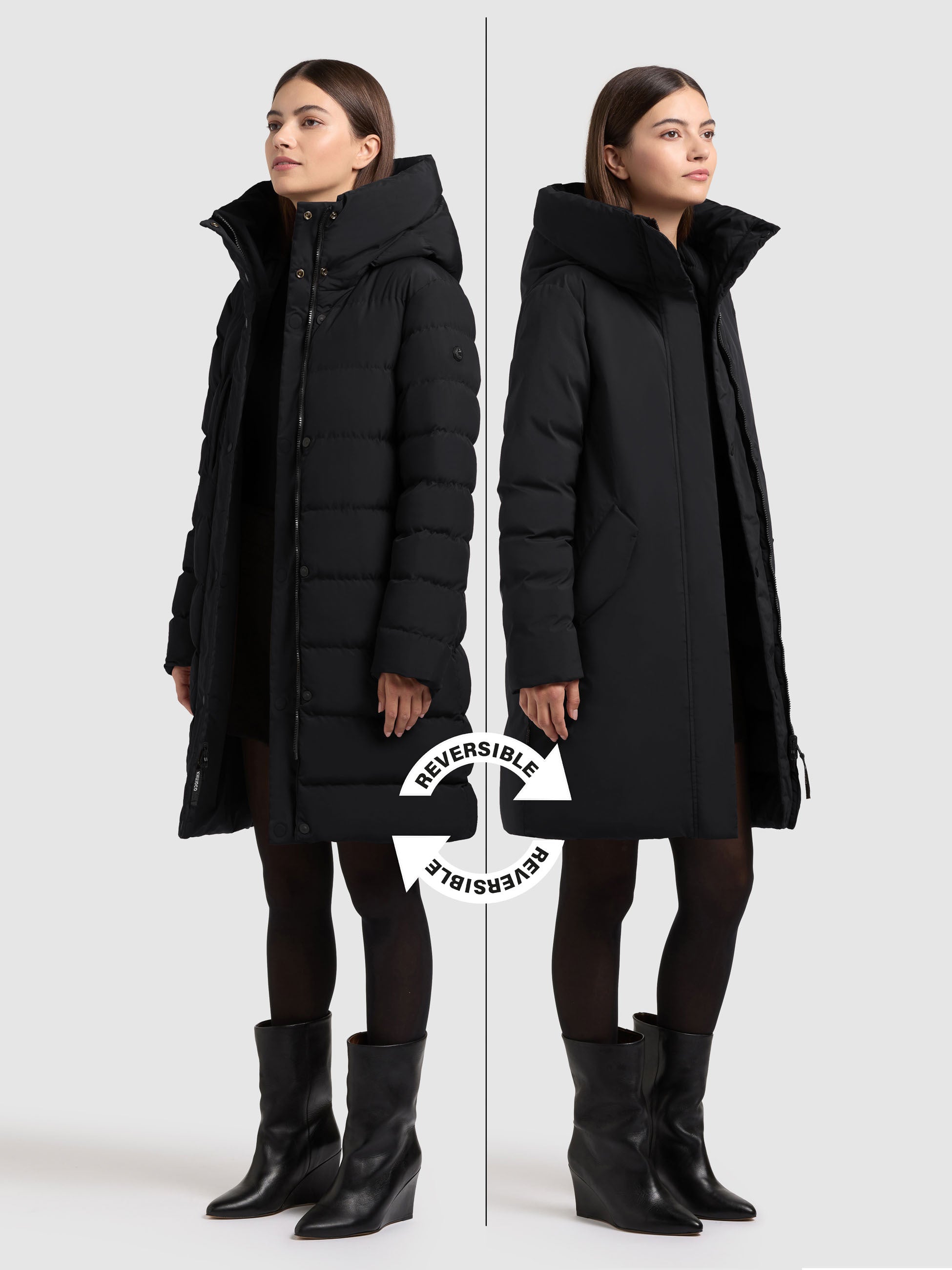 Mit dem warm wattierten khujo Mantel PROTEA zum Wenden, kannst du das äußere Erscheinungsbild je nach Bedarf deinem Outfit anpassen - ob als Steppmantel mit dezenten Reißverschlusstaschen in der Seitennaht, oder als glatter Wintermantel mit Pattentaschen und Magnetverschluss. Der Wende-Parka überzeugt zudem mit einer großen, hoch schließenden Kapuze, einem Zwei-Wege-Reißverschluss mit Windschutzblende und Magnetverschluss, sowie mit Fleece gefütterten Taschen für deine Essentials.