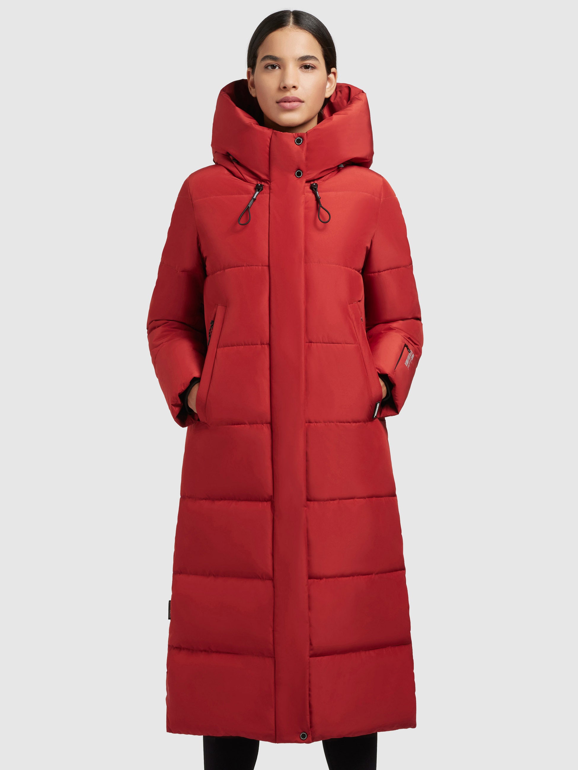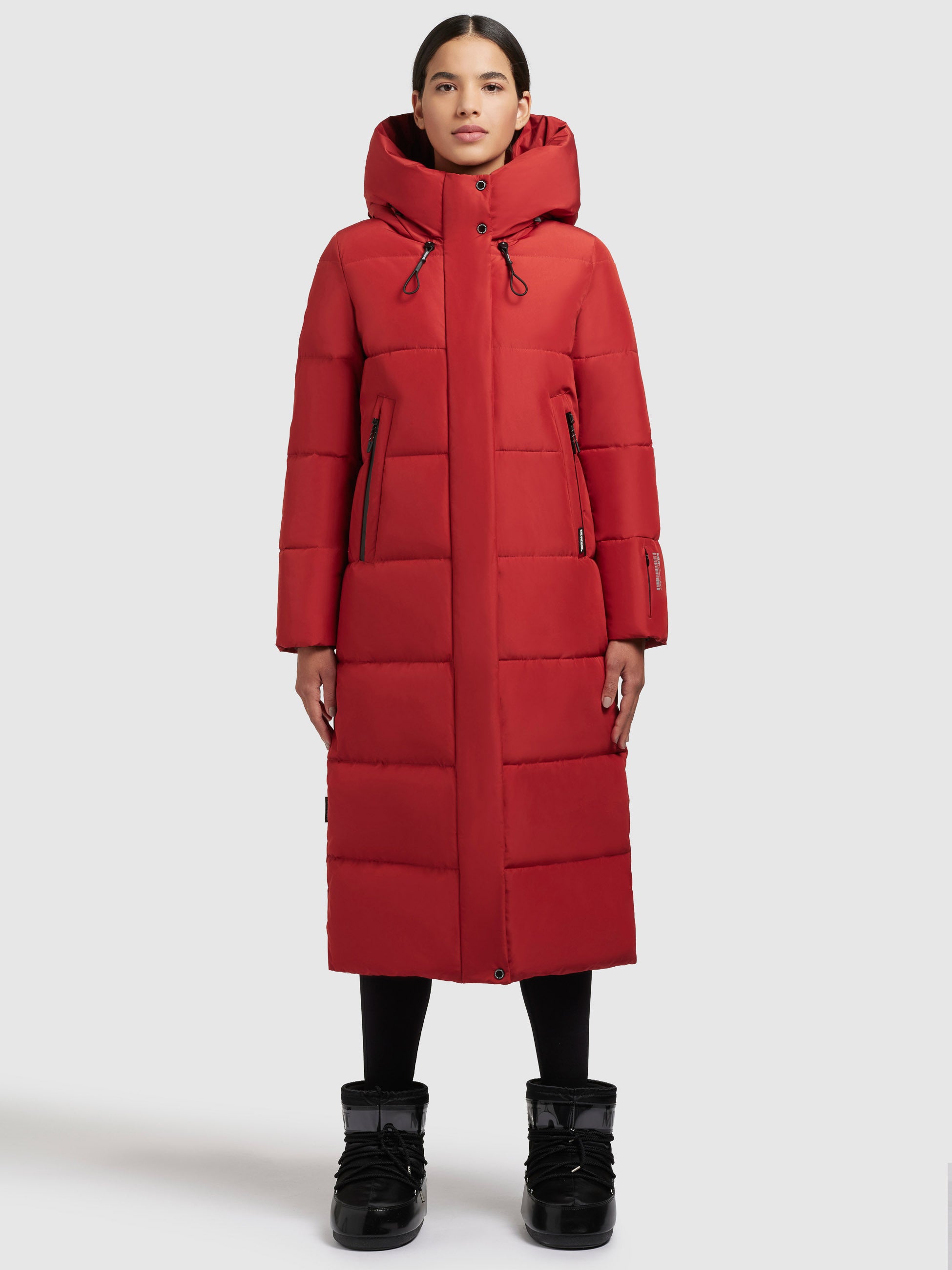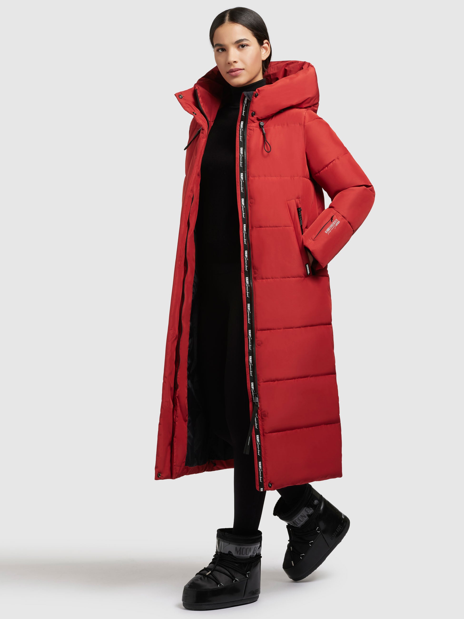- hoch schließende Kapuze mit Kordelzug